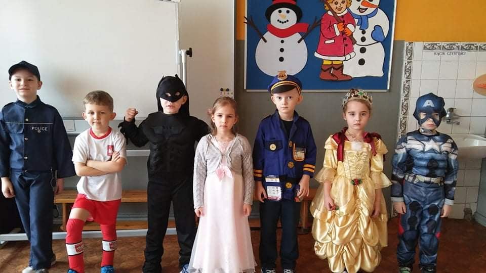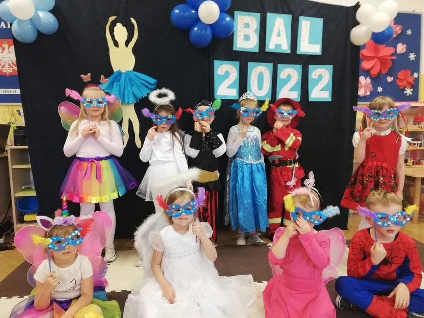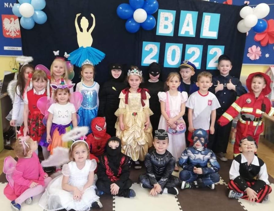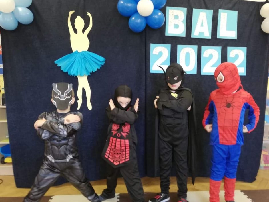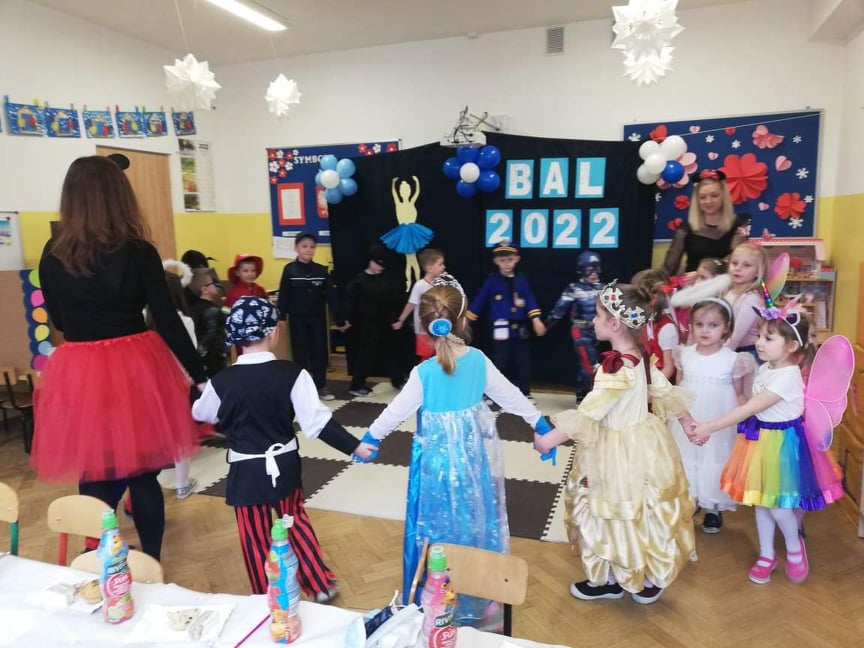 Bal karnawałowy to dla przedszkolaków niezwykły dzień, często wyczekiwany przez wiele tygodni. Dostarcza im licznych przeżyć i radości. Tak też było 10 lutego u przedszkolaków z grupy 6-latków i 3-5-latków. Tego dnia już od rana w przedszkolu pojawiały się kolorowe postacie. Dzieci przebrane były za bohaterów znanych bajek, można było spotkać wróżki, królewny, księżniczki, motylki, rycerzy, piratów, pajacyków, policjantów, Spider-Mana, Batmana, ... nie sposób zliczyć i wymienić tych wszystkich postaci. Sala 3-5-latków zamieniła się na ten dzień w salę balową. Wystrój sali wprowadził w radosny nastrój oraz zachęcał wszystkich do wesołej zabawy. Pojawiła się balonowa fotobudka, gdzie chętne dzieci robily sobie pamiątkowe zdjęcia. Wszyscy świetnie się bawili uczestnicząc we wspólnych zabawach. Na sali podczas tańców robiło się kolorowo, wszyscy bawili się wesoło, uśmiech nie znikał z twarzy mimo chwilowego zmęczenia. Rodzice przygotowali dla nas słodki poczęstunek, który umilił świętowanie. Szkoda, że następny bal dopiero za rok.