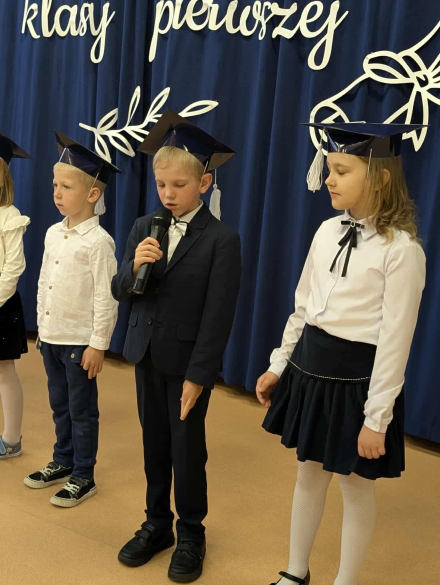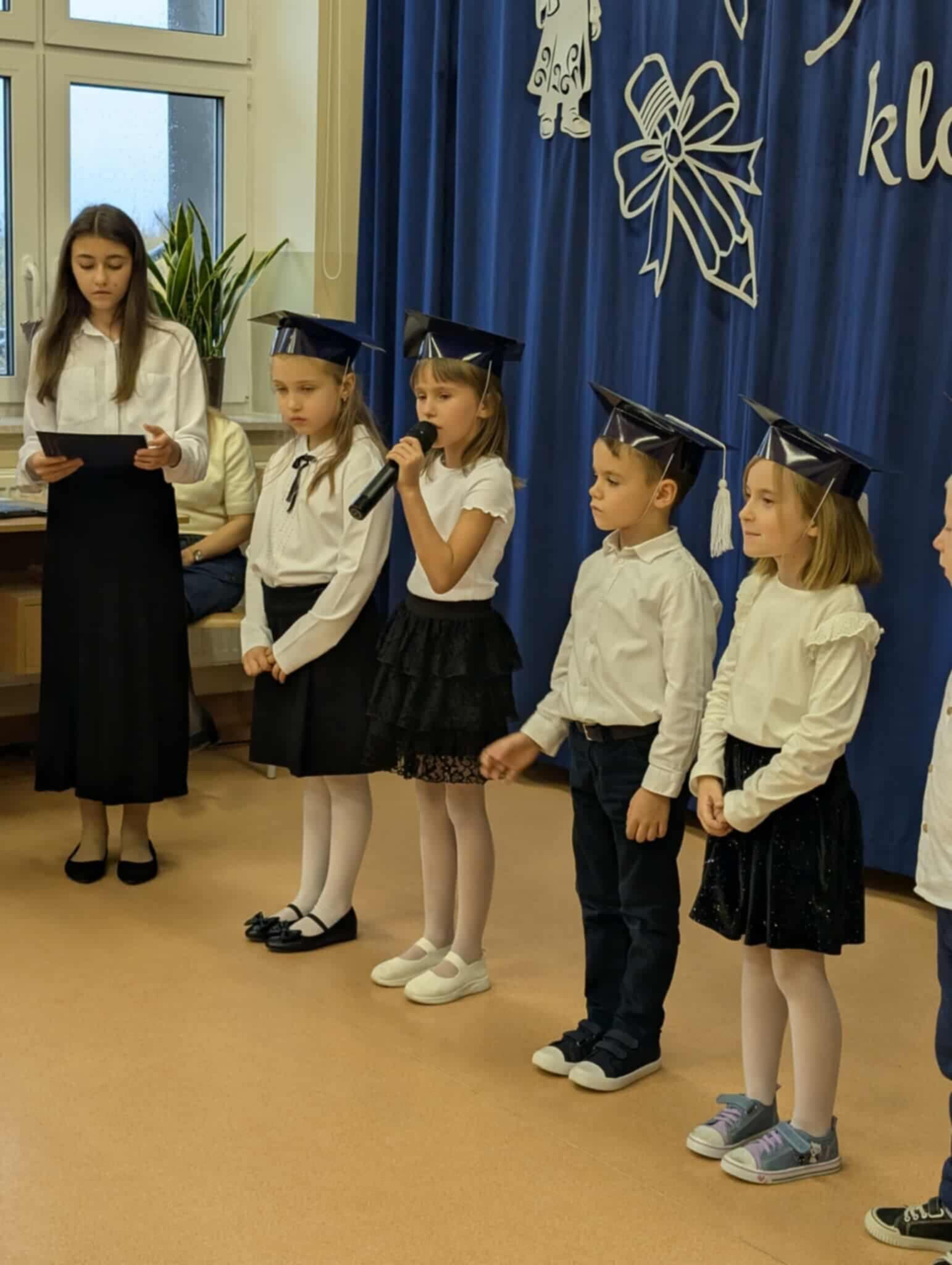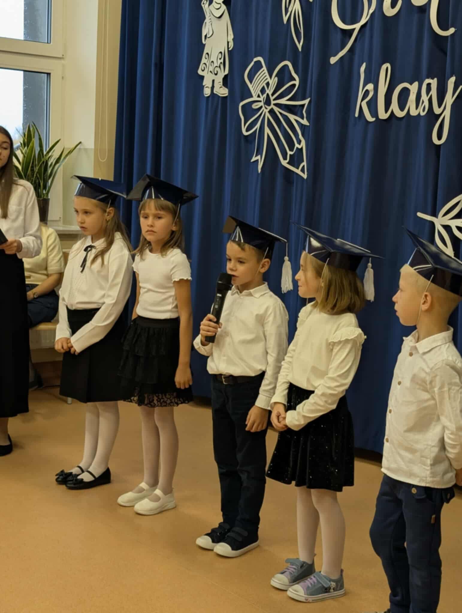 Uroczystość rozpoczęła się od przygotowanej przez pierwszoklasistów części artystycznej. Wiersze, piosenki i tańce w ich wykonaniu wprowadziły wszystkich w wyjątkowy, uroczysty nastrój. Dzieci z ogromnym zaangażowaniem i odwagą udowodniły, że są gotowe, by stać się pełnoprawnymi uczniami naszej szkoły.