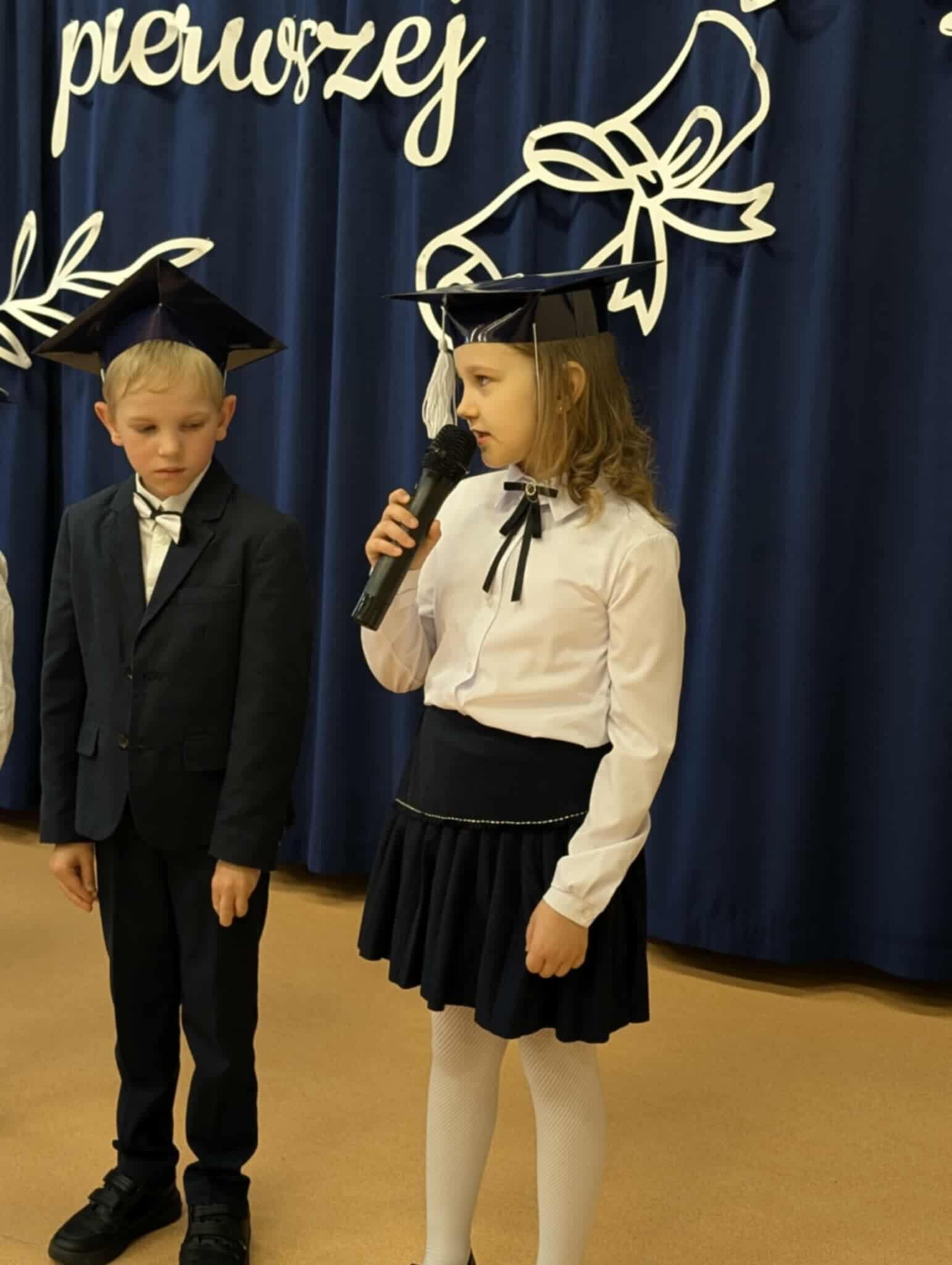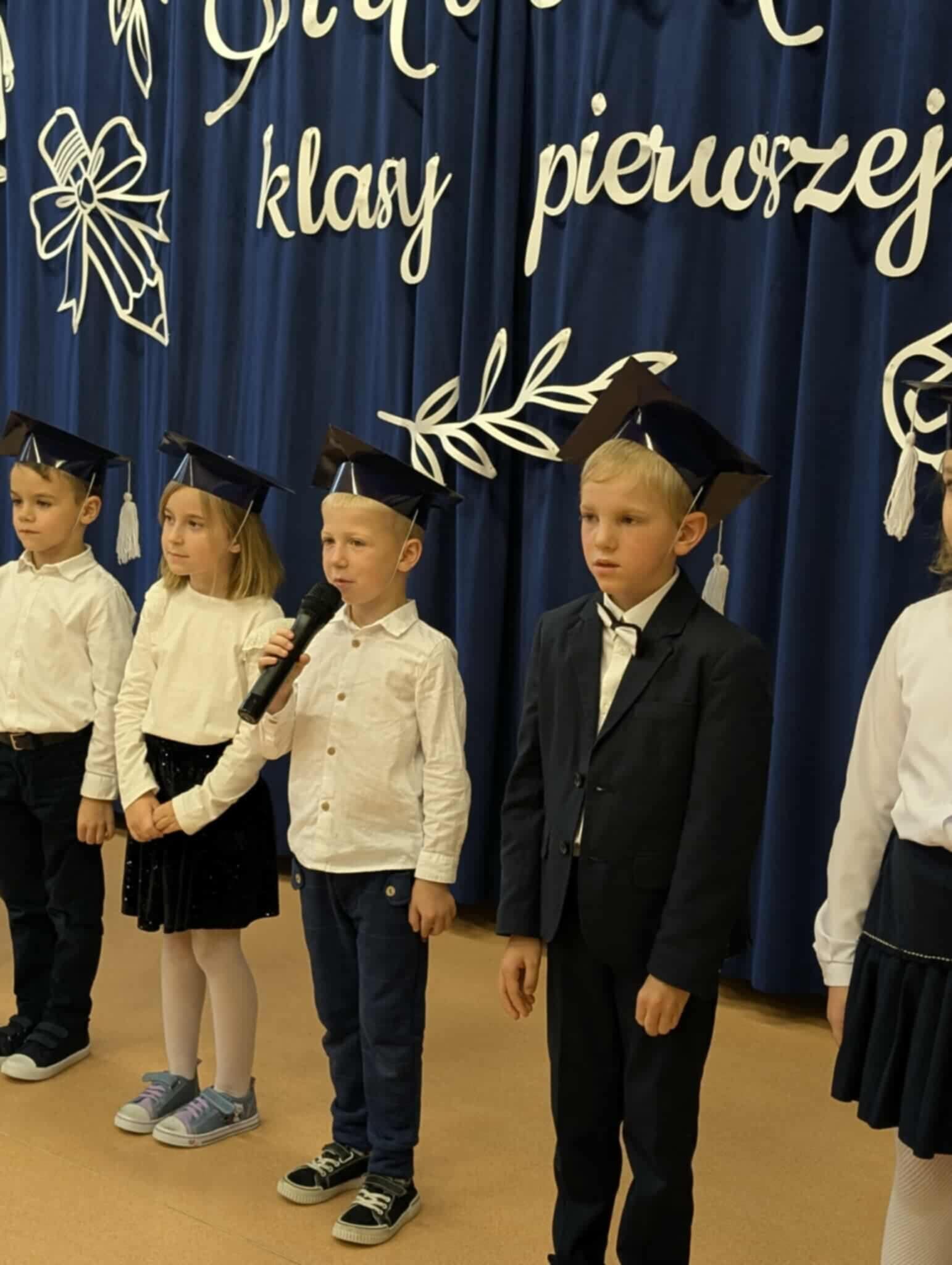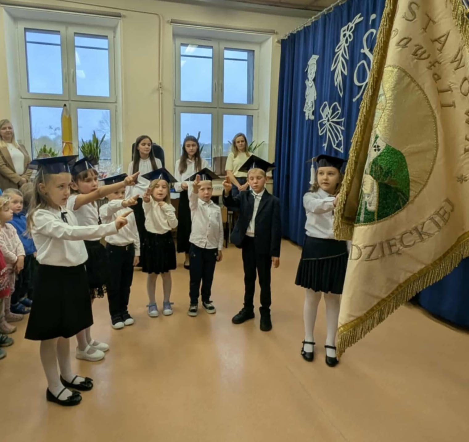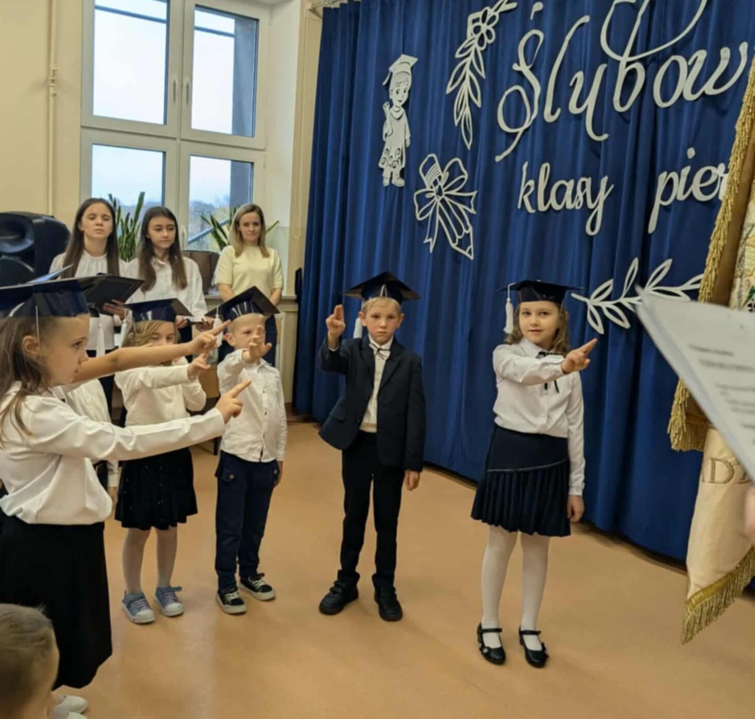 Uroczystość rozpoczęła się od przygotowanej przez pierwszoklasistów części artystycznej. Wiersze, piosenki i tańce w ich wykonaniu wprowadziły wszystkich w wyjątkowy, uroczysty nastrój. Dzieci z ogromnym zaangażowaniem i odwagą udowodniły, że są gotowe, by stać się pełnoprawnymi uczniami naszej szkoły.