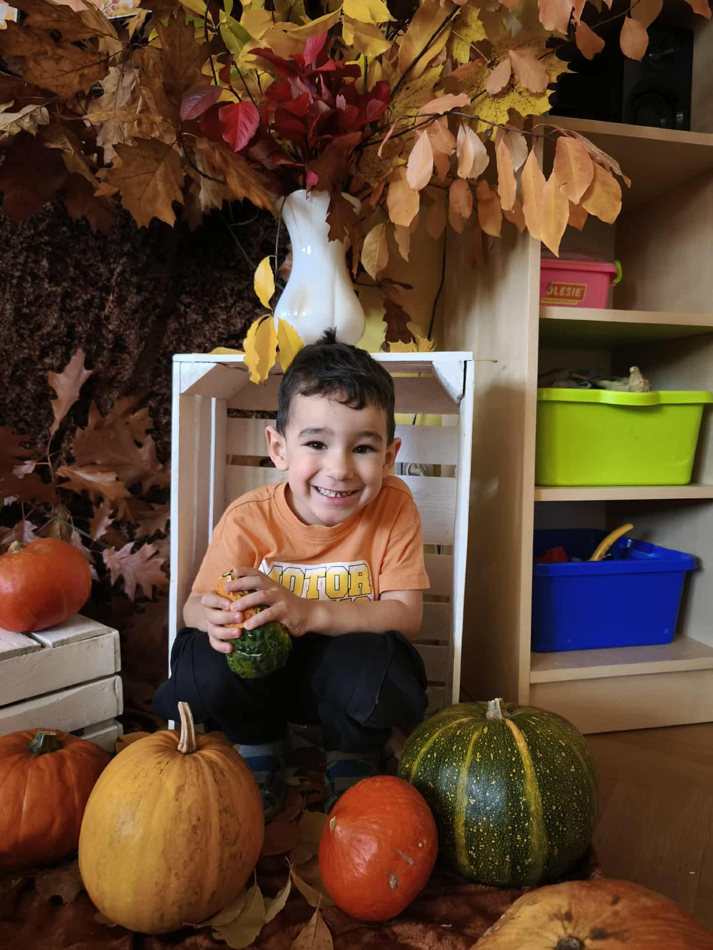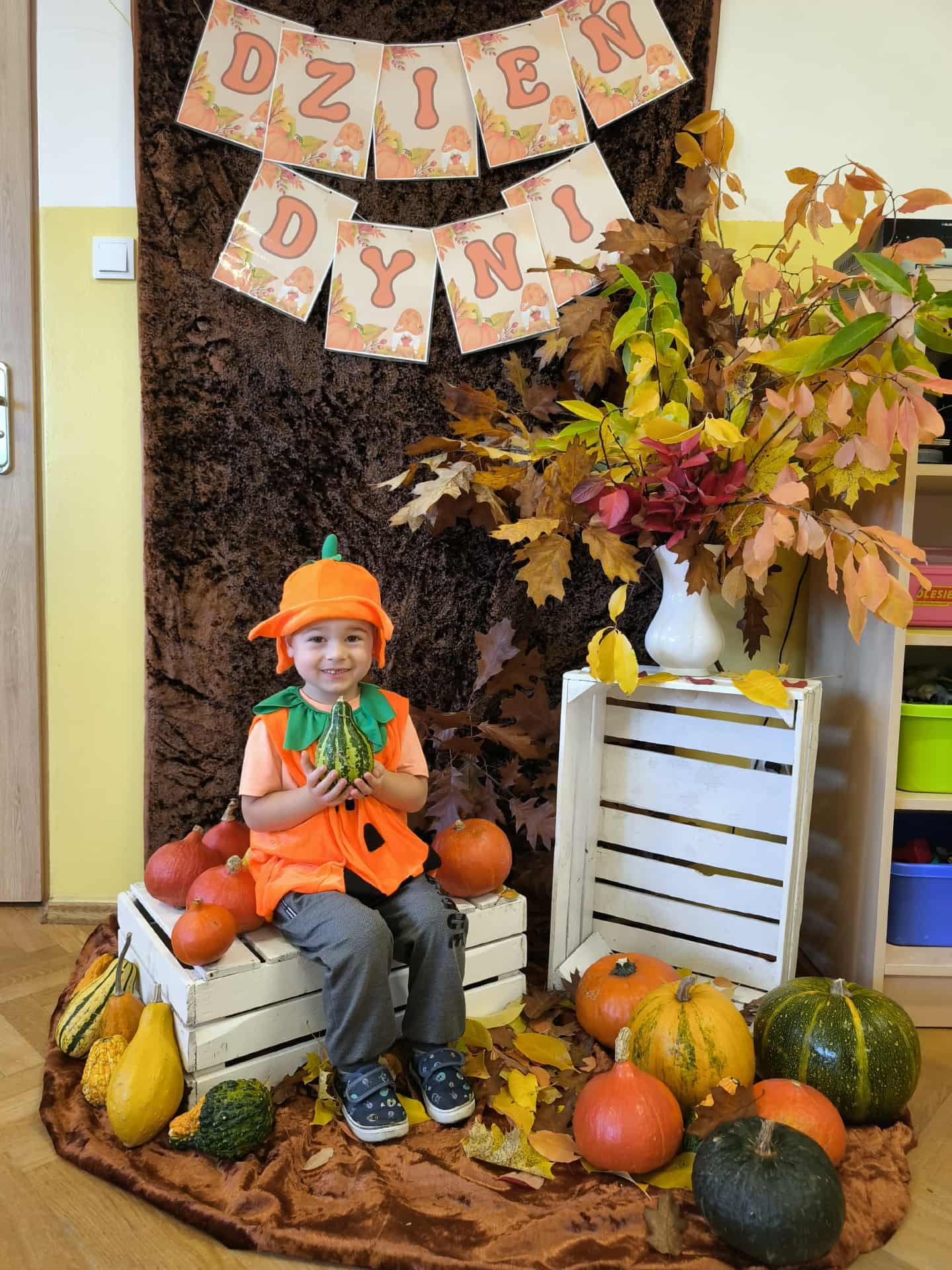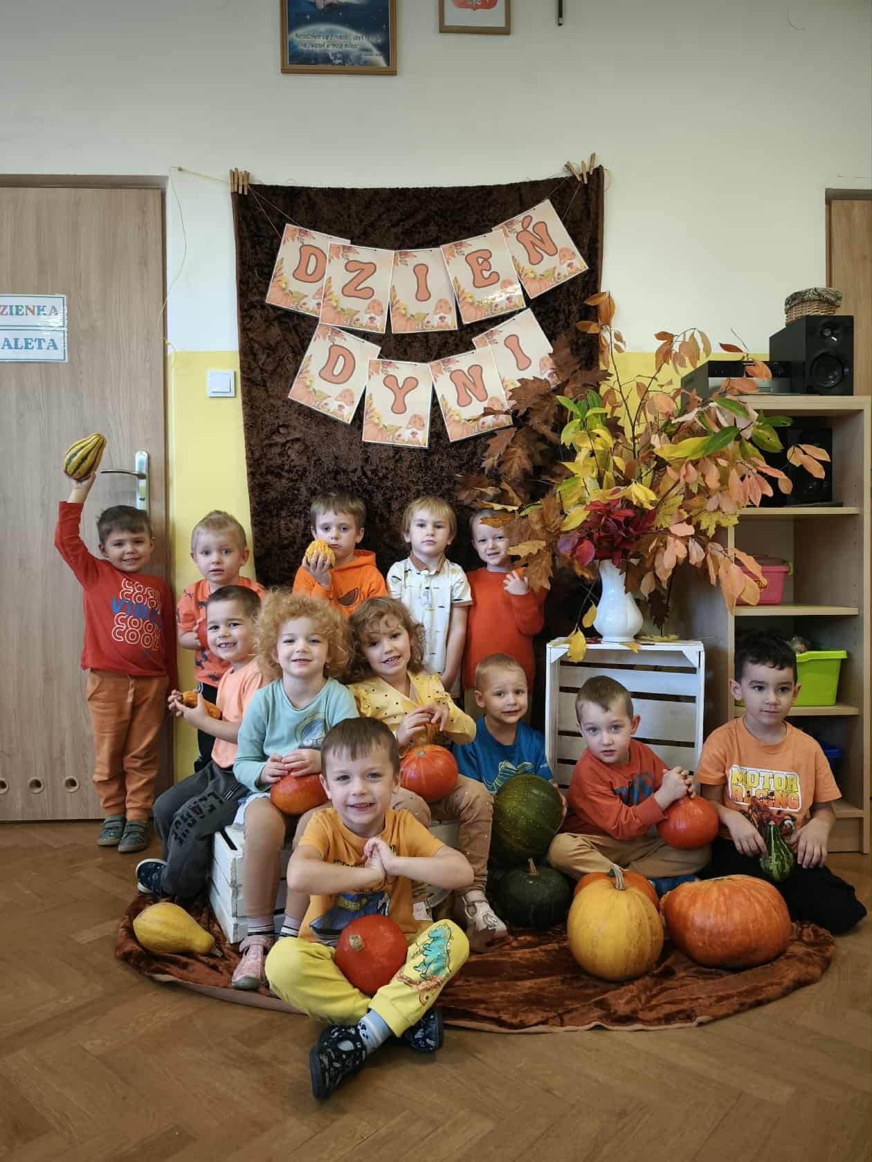 31 października w grupie 3-4-latków obchodziliśmy Dzień Dyni. Tego dnia królowała dyniowa kolorystyka – cała sala wypełniła się odcieniami pomarańczu i żółci.