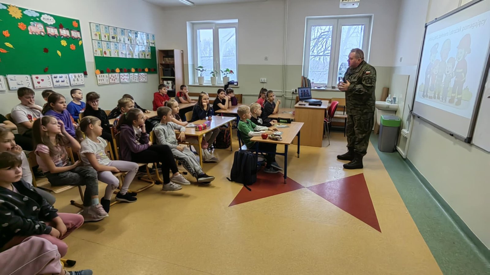 25 listopada 2025 r. odbył się wykład dla uczniów klas I–IV, który poprowadził ppor. dr Sławomir Franc, żołnierz Wojsk Obrony Terytorialnej. Spotkanie zostało zorganizowane w ramach programu „Edukacja z wojskiem”, mającego na celu wzmacnianie świadomości i bezpieczeństwa wśród najmłodszych.