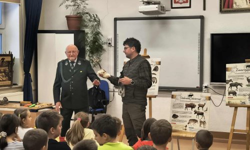 2025-11-24 Spotkanie z lasem… bez wychodzenia ze szkoły W miniony piątek las na chwilę przeniósł się w mury naszej szkoły! Wszystko za sprawą niezwykłego spotkania z łowczymi okręgowymi PZŁ w Zamościu - panem Janem Szulcem oraz panem Jarosławem Kuchtą, którzy zabrali uczniów w fascynującą podróż do świata przyrody. Panowie opowiedzieli, co powinno znaleźć się w plecaku każdego młodego odkrywcy wyruszającego na leśną wyprawę. Uczniowie dowiedzieli się, że oprócz dobrego humoru warto mieć ze sobą wodę, coś na ząb, ciepłą bluzę, apteczkę, latarkę i mapę — czyli wszystko to, co pozwoli bezpiecznie cieszyć się wędrówką. Jednym z najciekawszych momentów spotkania była lekcja rozpalania ognia. Myśliwi wyjaśnili, jak zrobić to odpowiedzialnie i gdzie można to robić, aby nie naruszać leśnej równowagi. Uczniowie dowiedzieli się także, jak zachować się, gdy na ścieżce pojawi się dzikie zwierzę — spokój, dystans i szacunek do natury to podstawowe zasady każdego wędrowca. Nie zabrakło również leśnych dźwięków! Goście przywieźli specjalną tablicę z odgłosami zwierząt, dzięki czemu wszyscy mogli usłyszeć, jak w rzeczywistości brzmi sarna, dzik, jeleń czy sowa. Las ożył na sali, a uczniowie z zainteresowaniem odgadywali, które zwierzę „przemawia” z głośników. Dziękujemy naszym gościom za przybliżenie naszym uczniom tajemnic lasu i praktyczne wskazówki, które na pewno przydadzą się im podczas leśnych wypraw. Spotkanie było prawdziwą lekcją wiedzy i szacunku do otaczającej nas przyrody. Pełni nowych wiadomości i umiejętności, uczniowie już nie mogą doczekać się kolejnej fascynującej "leśnej przygody"! czytaj dalej »