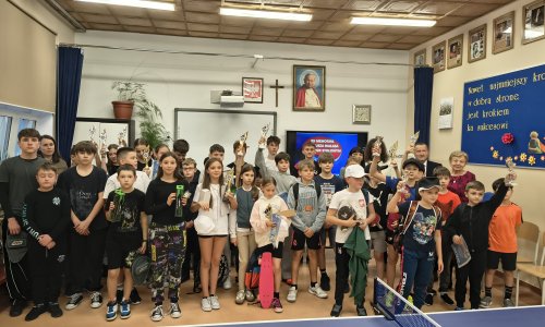 2025-12-02 XX Memoriał Tadeusza Białasa w Tenisie Stołowym W ostatni piątek listopada odbyła się jubileuszowa, XX edycja Memoriału Tadeusza Białasa w tenisie stołowym. W turnieju uczestniczyli uczniowie szkół z terenu gminy Frampol, rywalizując w kilku kategoriach wiekowych. W tym roku po raz pierwszy rozegrano także kategorię klas I–III. W uroczystym rozpoczęciu udział wzięła rodzina śp. Tadeusza Białasa, oraz Pani Anna Ruszczak – Sekretarz Gminy Frampol. Dyrektor szkoły, Pan Stanisław Saj, powitał gości oraz zawodników, po czym – po krótkich przemówieniach – rozpoczęły się sportowe zmagania. Rywalizacja przebiegała w przyjaznej atmosferze i zgodnie z zasadami fair play. Po rozegraniu ponad 70 meczów wyłoniono zwycięzców poszczególnych kategorii. Wyniki turnieju: Kategoria: chłopcy, klasy VII–VIII 1. Bryła Dominik – SP im. Jana Pawła II w Woli Radzięckiej 2. Pacyk Sebastian – SP im. Jana Pawła II w Woli Radzięckiej 3. Janowski Kacper – SP im. Jana Pawła II w Woli Radzięckiej 4. Książek Sebastian – SP im. Św. Stanisława Kostki w Teodorówce 5. Łoziński Mateusz – SP im. Jana Pawła II w Woli Radzięckiej Kategoria: dziewczęta, klasy VII–VIII 1. Niedźwiecka Zuzanna – SP im. Św. Stanisława Kostki w Teodorówce 2. Bryła Faustyna – SP im. Jana Pawła II w Woli Radzięckiej 3. Brzozowska Marcelina – SP im. Jana Pawła II w Woli Radzięckiej 4. Kot Martyna – SP im. Św. Stanisława Kostki w Teodorówce 5. Korgul Klara – SP w Radzięcinie Kategoria: chłopcy, klasy IV–VI 1. Dragańczuk Szymon – SP im. Jana Pawła II w Woli Radzięckiej 2. Miksza Miłosz – SP im. Jana Pawła II w Woli Radzięckiej 3. Janowski Wojciech – SP im. Jana Pawła II w Woli Radzięckiej 4. Omiotek Kacper – SP im. Św. Stanisława Kostki w Teodorówce 5. Liwak Aleksander – SP im. Jana Pawła II w Woli Radzięckiej 6. Niedźwiecki Fabian – SP im. Św. Stanisława Kostki w Teodorówce 7. Brzozowski Jakub – SP im. Św. Stanisława Kostki w Teodorówce 8. Małek Michał - SP im. Józefa Piłsudskiego we Frampolu Kategoria: dziewczęta, klasy IV–VI 1. Radomska Gabriela – SP w Radzięcinie 2. Marzec Katarzyna – SP im. Jana Pawła II w Woli Radzięckiej 3. Dubaj Karolina – SP im. Jana Pawła II w Woli Radzięckiej 4. Kozak Maja – SP w Radzięcinie 5. Grzegolec Zuzanna – SP im. Św. Stanisława Kostki w Teodorówce Kategoria: klasy I–III 1. Oleszek Wiktor – SP im. Jana Pawła II w Woli Radzięckiej 2. Śliwiński Szymon – SP im. Jana Pawła II w Woli Radzięckiej 3. Grabowski Jakub – SP im. Józefa Piłsudskiego we Frampolu 4. Małysz Marcel – SP im. Jana Pawła II w Woli Radzięckiej 5. Niedźwiecki Dawid – SP im. Św. Stanisława Kostki w Teodorówce Podziękowania, okazałe puchary oraz nagrody ufundowała Gmina Frampol oraz Państwo Białasowie. Każdy uczestnik otrzymał upominek i poczęstunek, natomiast zwycięzcy dodatkowo nagrody i puchary. Serdecznie dziękujemy wszystkim zawodniczkom i zawodnikom, ich opiekunom oraz fundatorom nagród za udział, wsparcie i wspólne stworzenie wyjątkowej atmosfery tego wydarzenia. czytaj dalej »