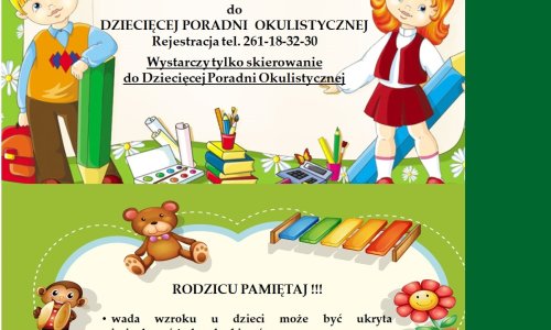 2021-09-18 BEZPŁATNE BADANIA OKULISTYCZNE DLA DZIECI Dziecięca Przychodnia Okulistyczna 1 Wojskowego Szpitala Klinicznego z Polikliniką SPZOZ w Lublinie zaprasza dzieci i młodzież, która nie ukończyła 18 lat na bezpłatne okulistyczne badania przesiewowe. Akcja prowadzona jest pod hasłem “Wszystko z myślą o naszych dzieciach”. Wystarczy jedynie skierowanie do Dziecięcej Poradni Okulistycznej i rejestracja w przychodni w dogodnym dostępnym terminie (tel. 261 183 230). czytaj dalej »