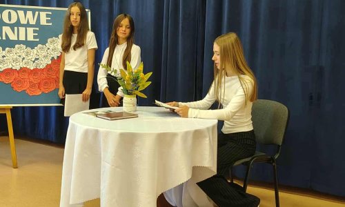 2025-09-07 Narodowe Czytanie w MGOK we Frampolu W dniu 5 września 2025 roku w Miejsko-Gminnym Ośrodku Kultury we Frampolu odbyło się Narodowe Czytanie, w którym wzięli udział także uczniowie naszej szkoły: Weronika Bielak i Joanna Bryła z kl. VI, Lena Leśniewska z kl. VII oraz Piotr Grzywna i Szymon Bryła z kl. VIII. Organizatorem wydarzenia był MGOK i Biblioteka Publiczna we Frampolu.