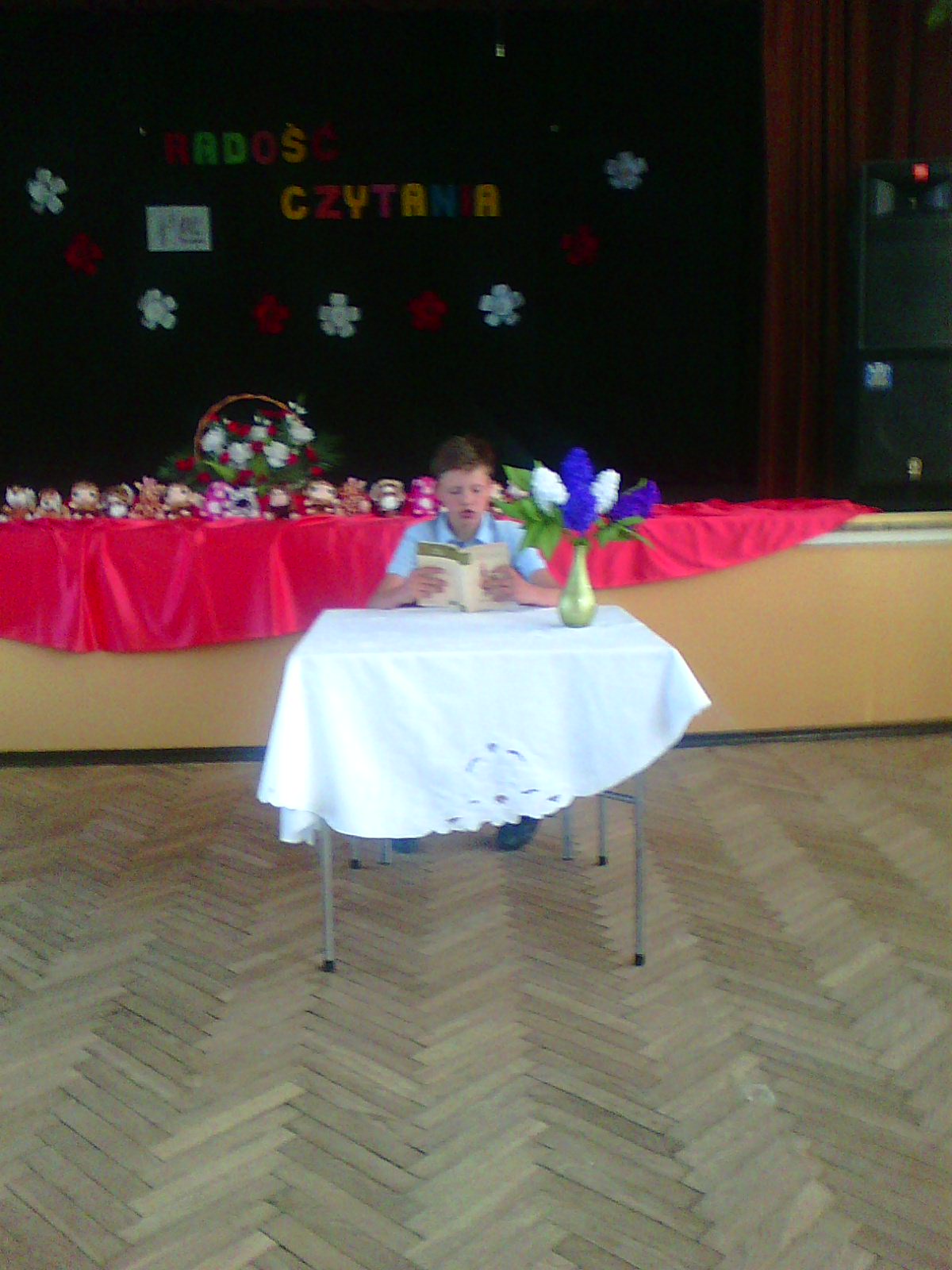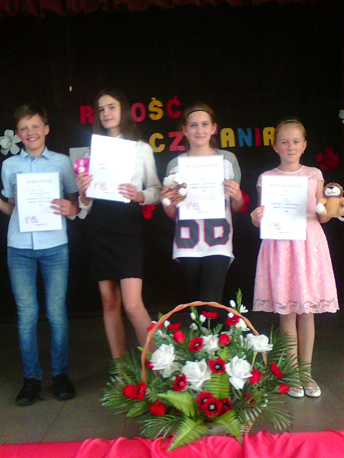 21 maja uczestniczyliśmy w XVII edycji konkursu "Radość czytania",organizowanym przez Bibliotekę Publiczną we Frampolu, który odbył się w MGOK- y. Czworo uczniów reprezentowało naszą szkołę: Natalia Wójcik i Julia Dubiel z kl. IV oraz Rafał Czajka i Amelia Socha z kl. VI, którzy uzyskali wyróżnienia za ciekawą interpretację czytanego tekstu. Wszyscy uczniowie otrzymali pamiątkowe dyplomy i maskotki. Zadowoleni mieliśmy jeszcze czas na spacer po Rynku, nad fontannę i odwiedziny Biblioteki Publicznej.
