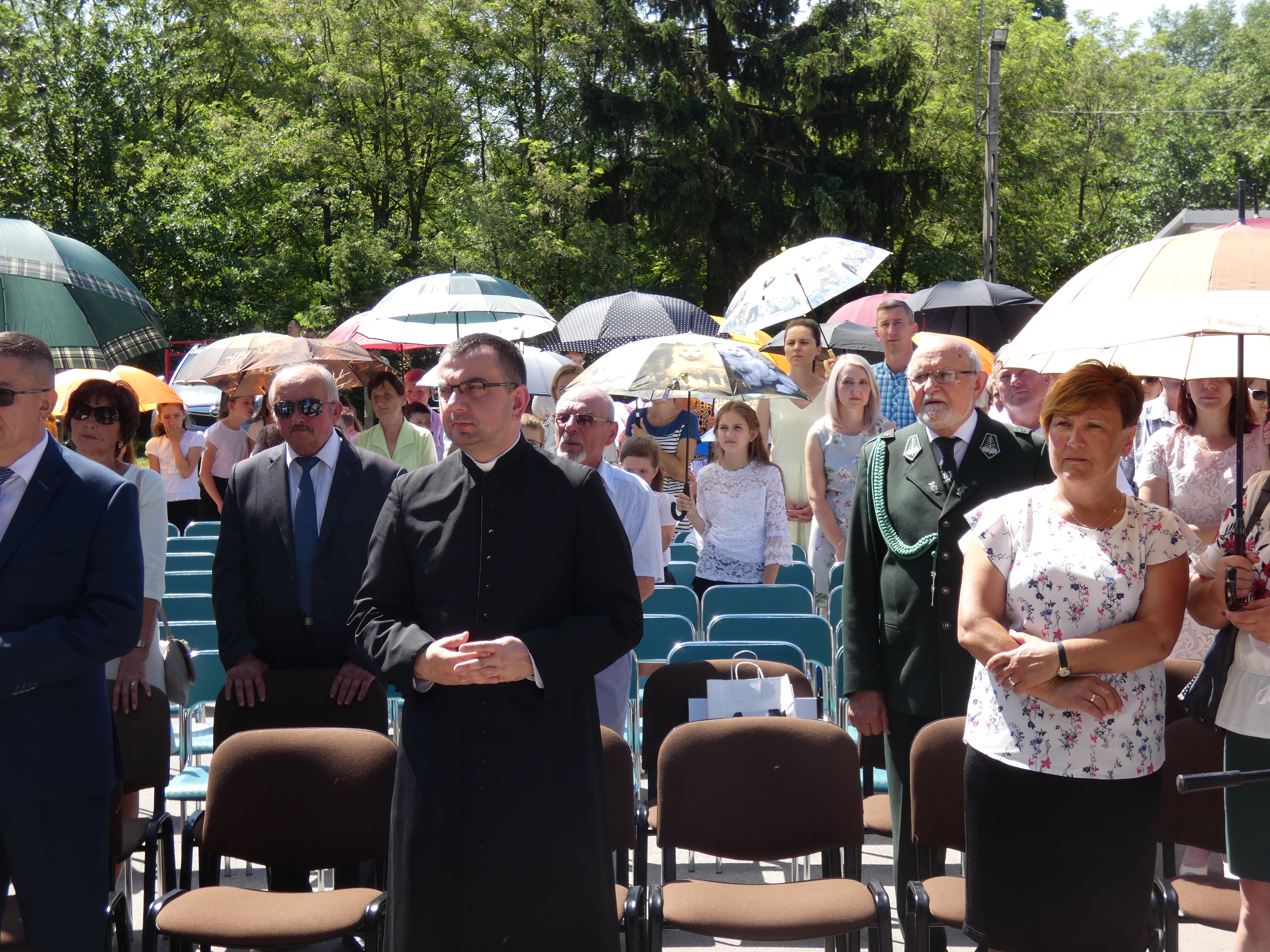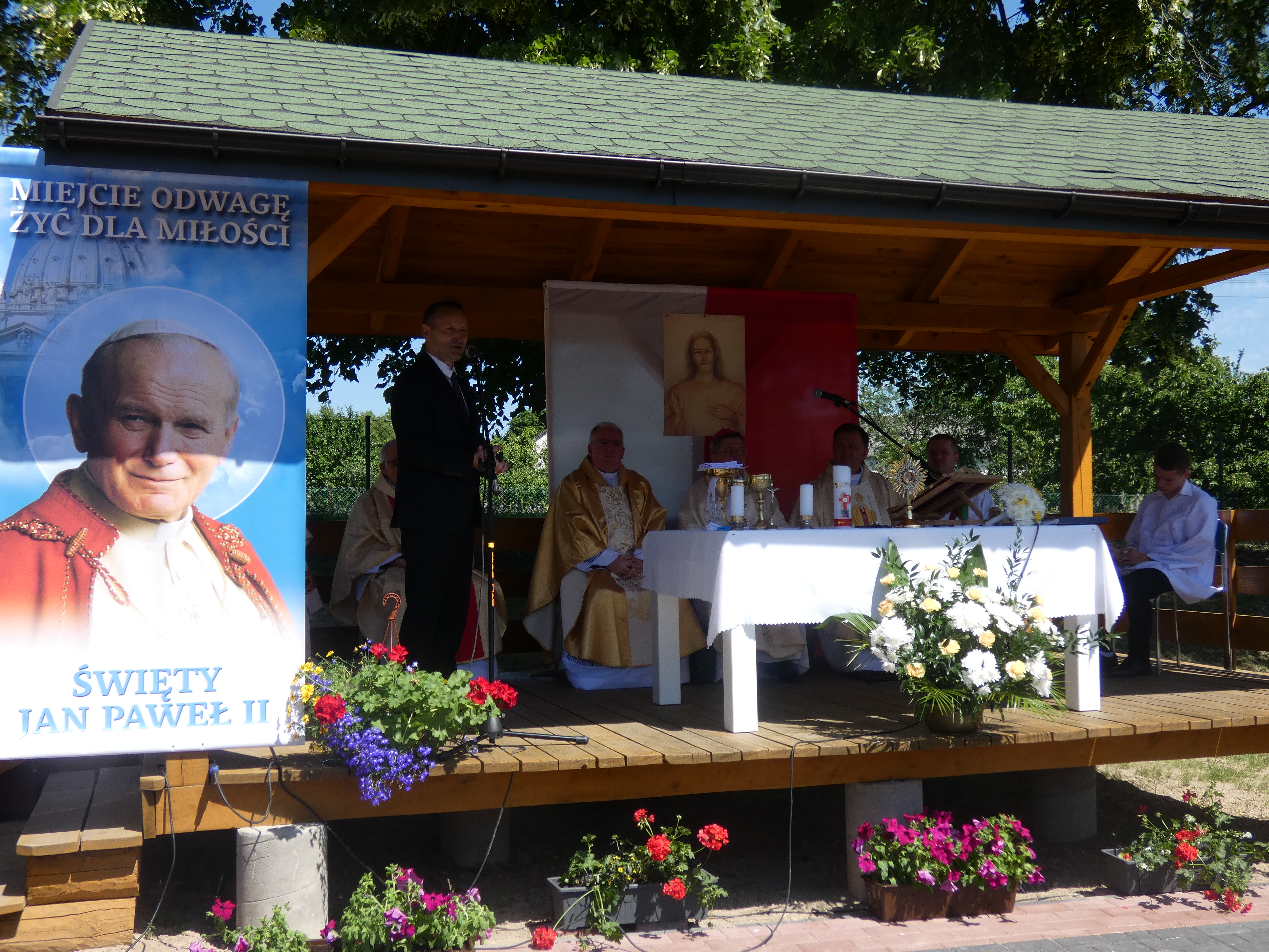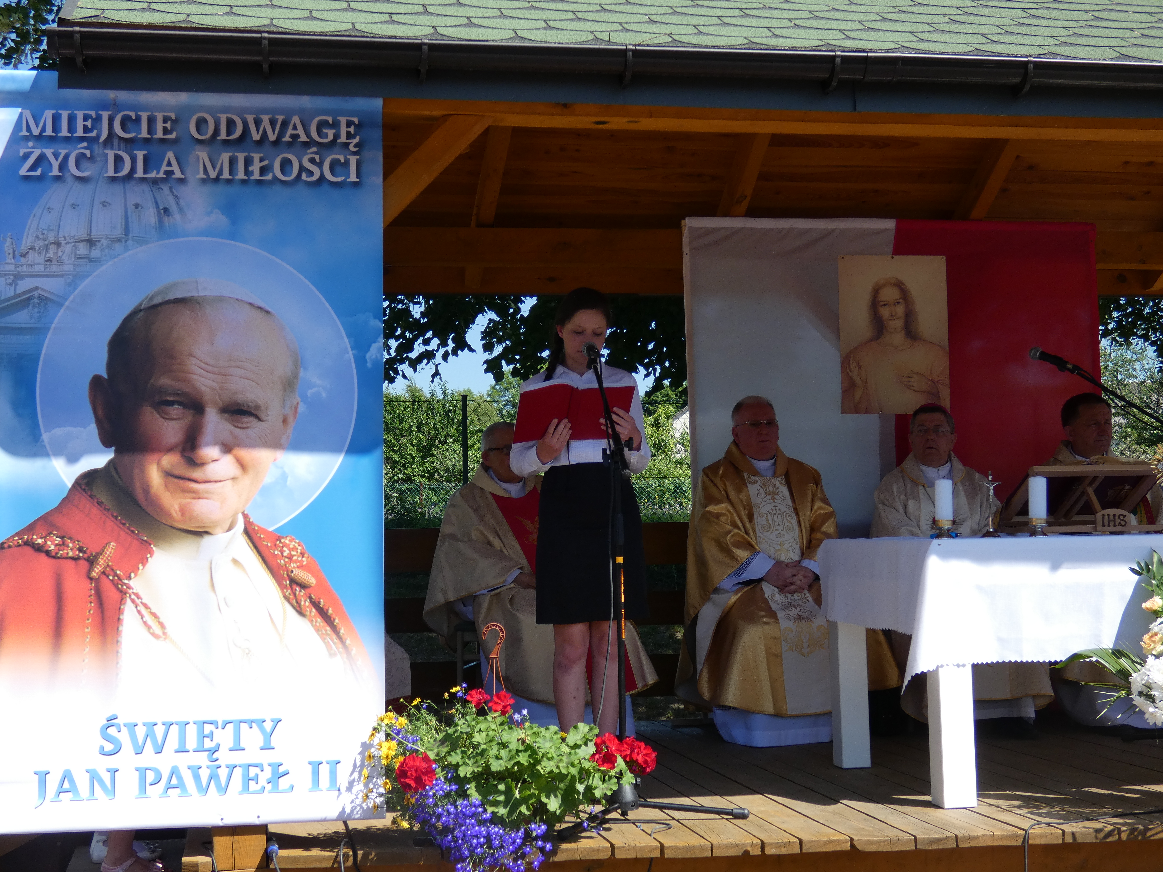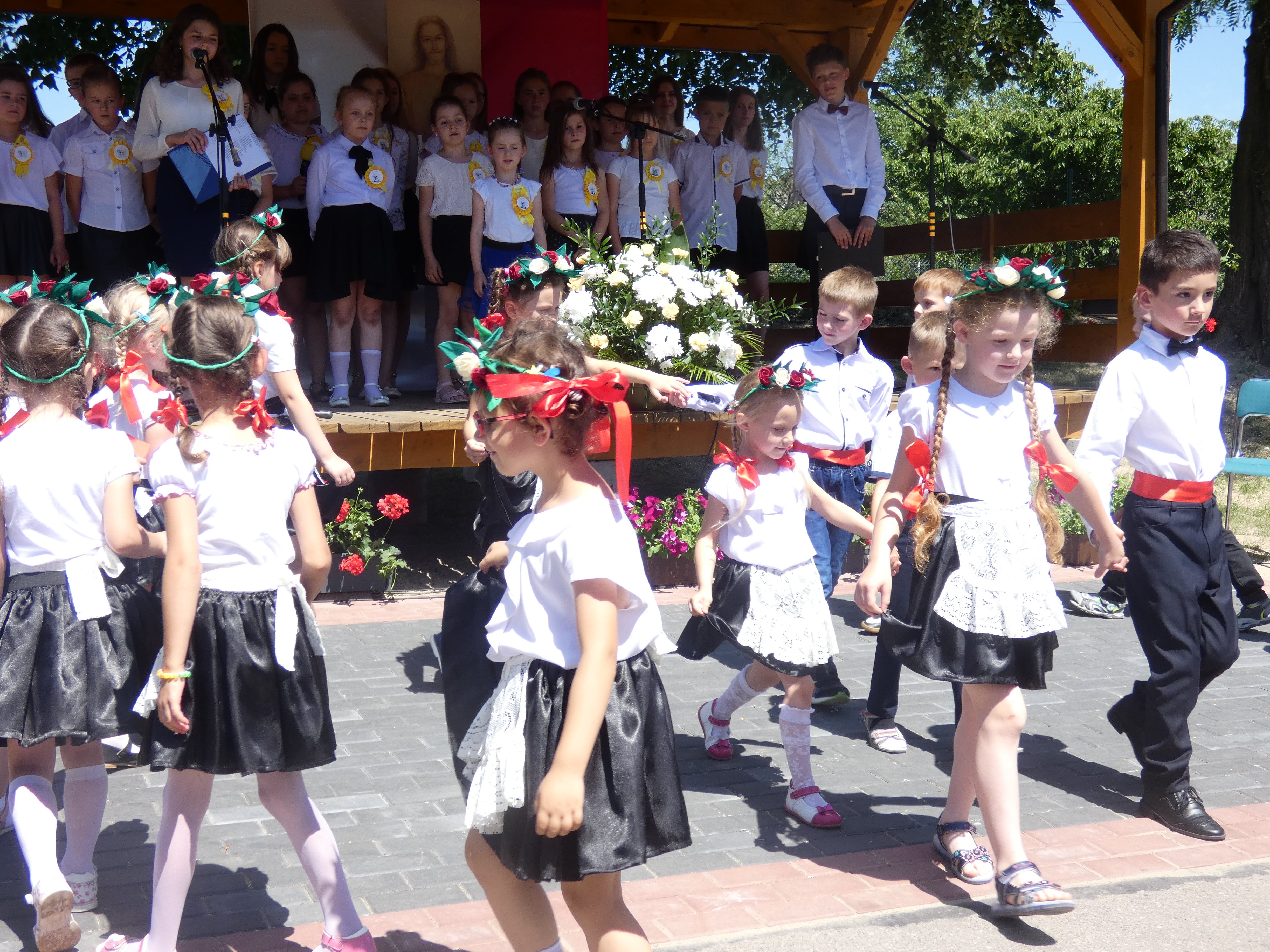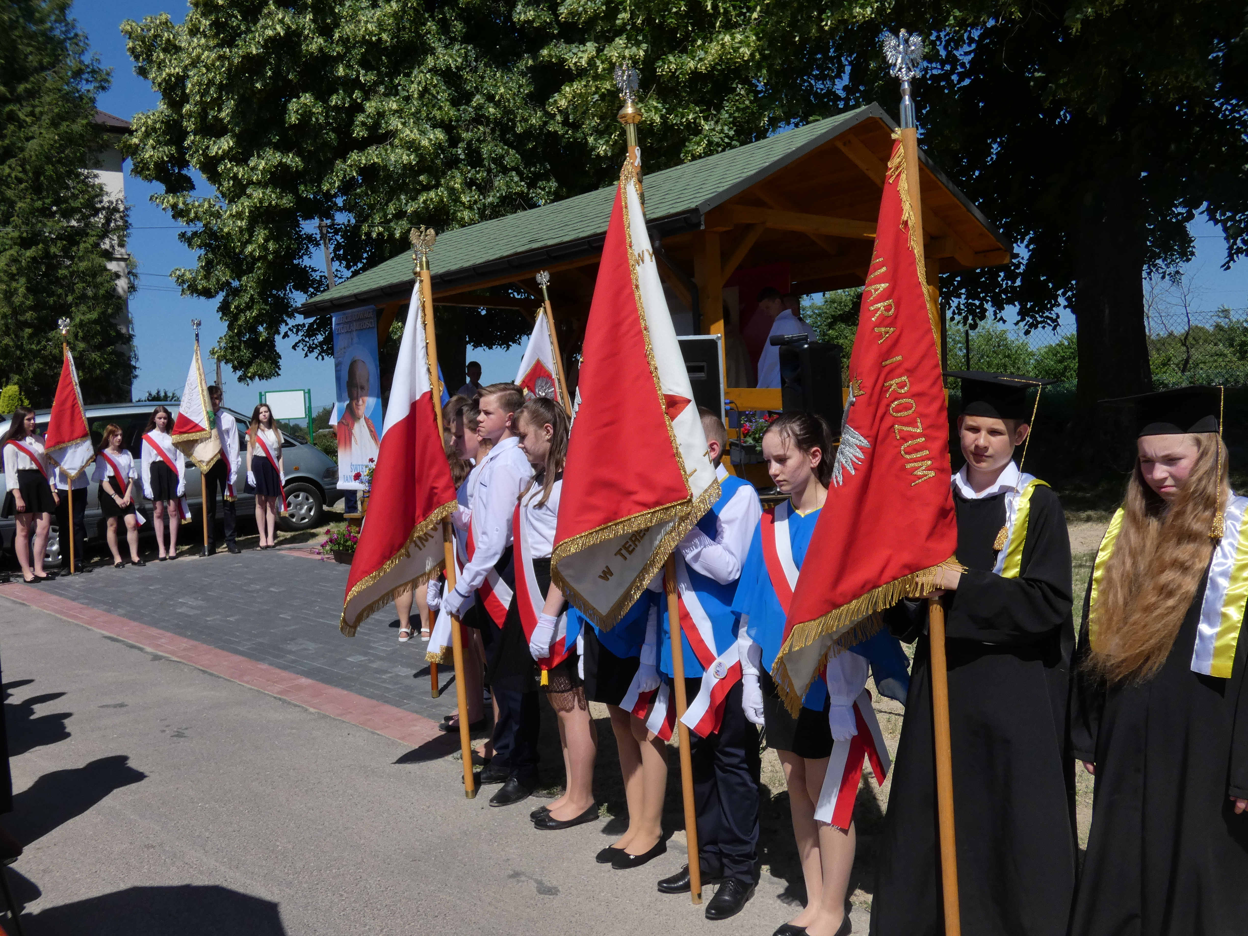 30 maja odbyły się obchody jubileuszowej X rocznicy nadania naszej szkole imienia Jana Pawła II. Uroczystość rozpoczęła się Mszą Świętą, której przewodniczył biskup pomocniczy naszej diecezji, Ksiądz Dr Hab. Mariusz Leszczyński. W homilii zwrócił się do zebranych gości, rodziców, uczniów i nauczycieli przypominając, czym jest służba Bogu, ludziom i Ojczyźnie. Po zakończeniu Mszy Świętej Dyrektor Szkoły Pan Stanisław Saj powitał wszystkich zebranych na uroczystości gości a następnie, w swoim bogatym w treści przemówieniu, wyjaśniał, w jaki sposób nasza szkoła realizuje w swej codziennej działalności przesłanie św. Jana Pawła II. Jego wystąpienie nawiązywało nie tylko do X rocznicy nadania szkole imienia Jana Pawła II, ale także do stulecia odzyskania przez Polskę niepodległości. Pan Dyrektor zwrócił szczególną uwagę na miłość wobec Ojczyzny, tak ważną w życiu każdego człowieka i przytoczył wypowiedź Jana Pawła II, która doskonale ukazuje nam współczesne znaczenie słowa patriotyzm: "Służba Ojczyźnie nie zawsze wymaga ofiary krwi, ale żąda także ofiary wytrwałej pracy, nauki, wychowania młodego pokolenia i pielęgnowania kultury." Na zakończenie swojej przemowy życzył, abyśmy czerpali z bogactwa, jakie zostawił nam Jan Paweł II i patrząc na osobę Papieża Polaka, uczyli się miłości i patriotyzmu. Następnie dzieci z oddziału przedszkolnego, w imieniu całej społeczności uczniowskiej naszej szkoły, przywitały wszystkich przepięknie zatańczonym polonezem, który zachwycił naszych gości. Kolejną wzruszającą częścią jubileuszu był koncert w wykonaniu chórku szkolnego. Po występach artystycznych krótkie przemówienia wygłosiło wielu z licznie przybyłych gości.