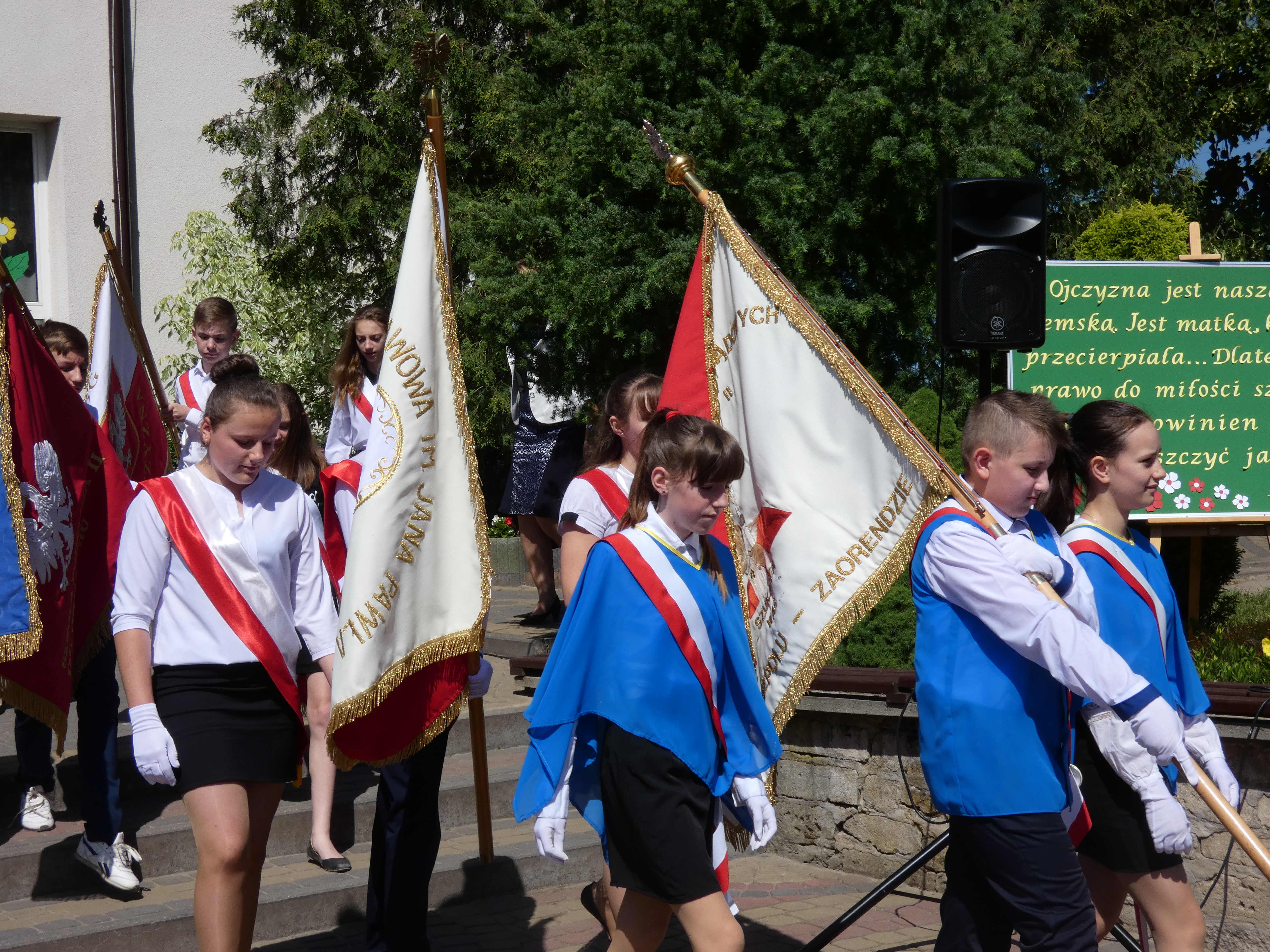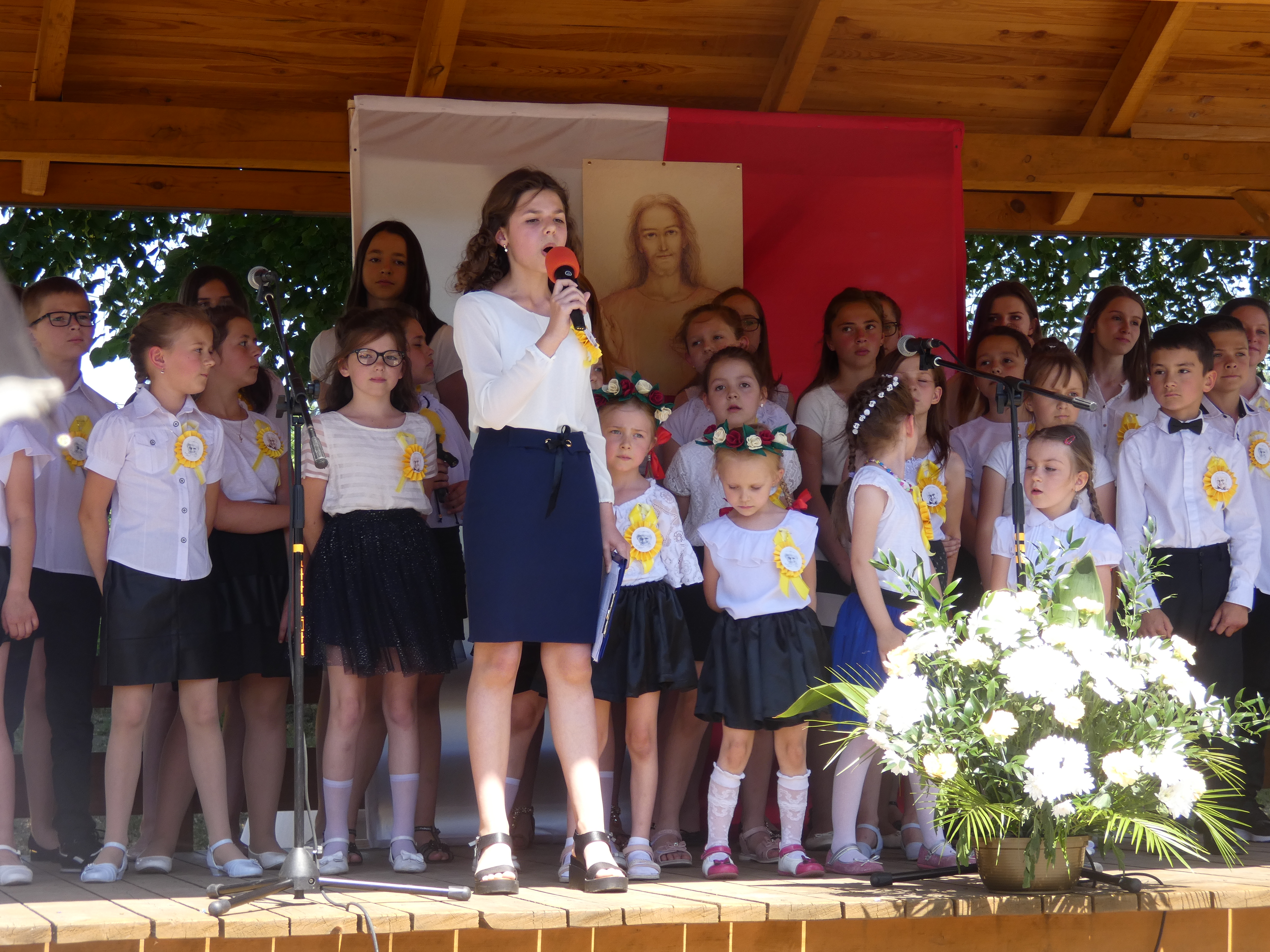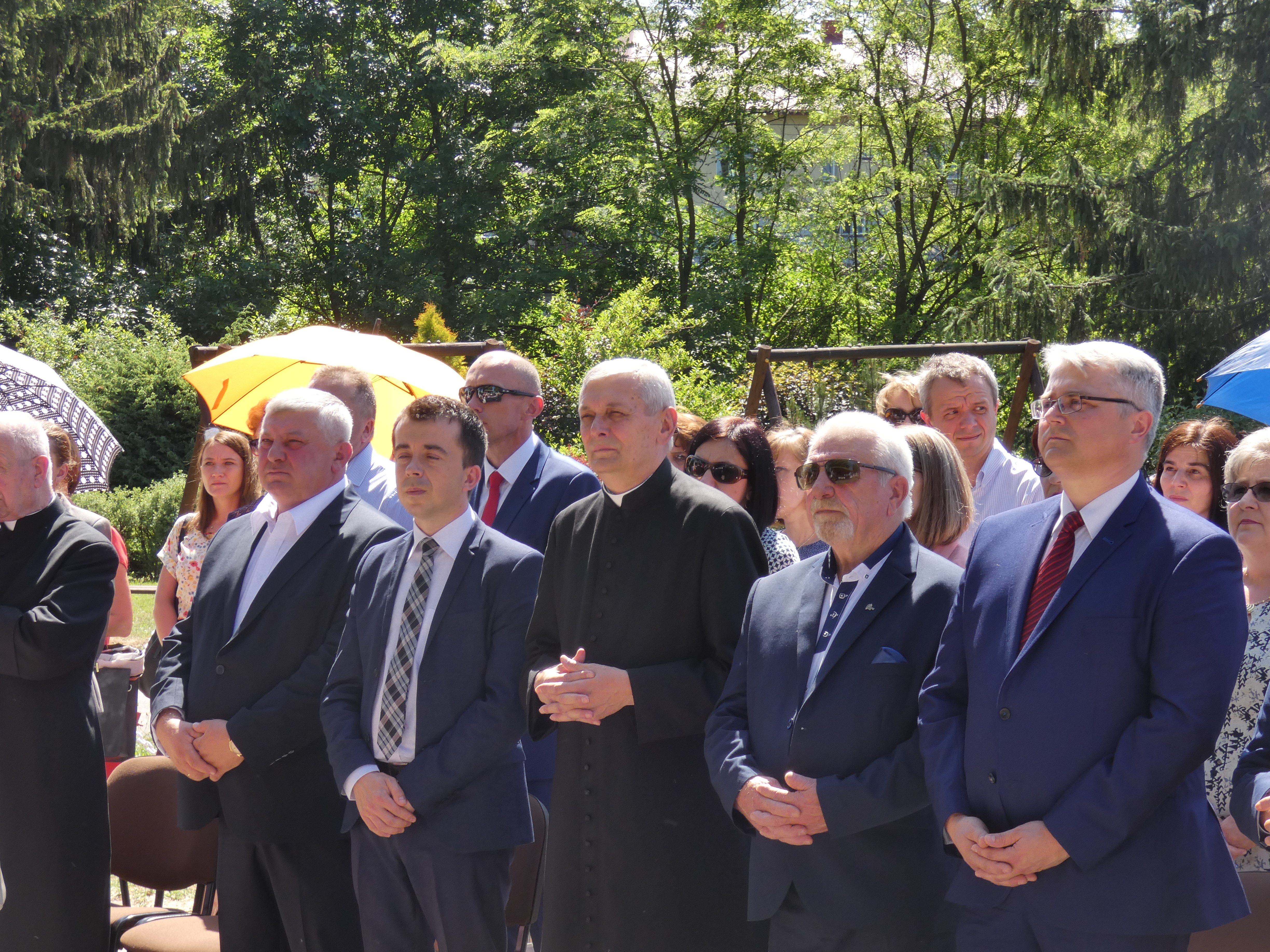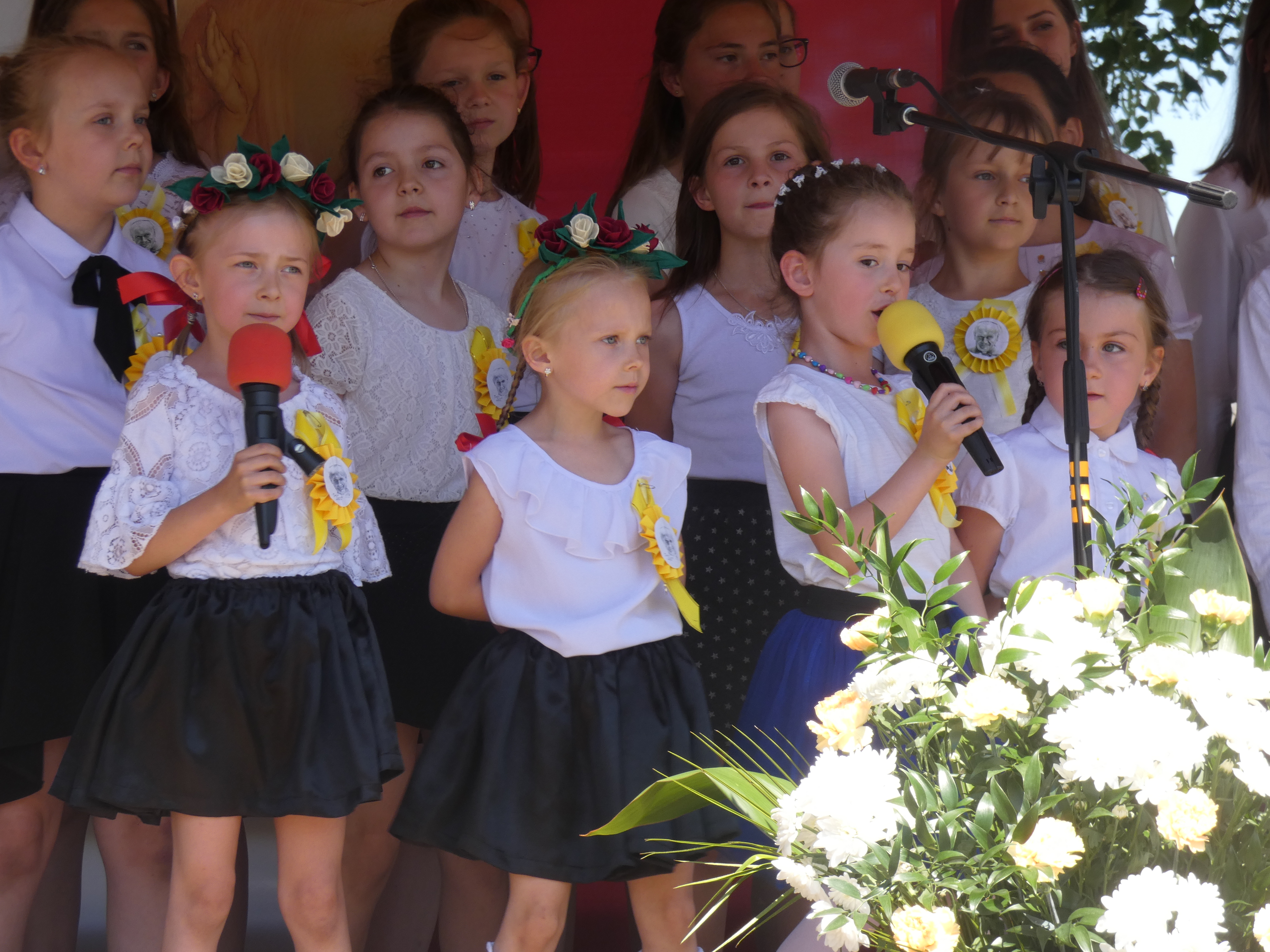 30 maja odbyły się obchody jubileuszowej X rocznicy nadania naszej szkole imienia Jana Pawła II. Uroczystość rozpoczęła się Mszą Świętą, której przewodniczył biskup pomocniczy naszej diecezji, Ksiądz Dr Hab. Mariusz Leszczyński. W homilii zwrócił się do zebranych gości, rodziców, uczniów i nauczycieli przypominając, czym jest służba Bogu, ludziom i Ojczyźnie. Po zakończeniu Mszy Świętej Dyrektor Szkoły Pan Stanisław Saj powitał wszystkich zebranych na uroczystości gości a następnie, w swoim bogatym w treści przemówieniu, wyjaśniał, w jaki sposób nasza szkoła realizuje w swej codziennej działalności przesłanie św. Jana Pawła II. Jego wystąpienie nawiązywało nie tylko do X rocznicy nadania szkole imienia Jana Pawła II, ale także do stulecia odzyskania przez Polskę niepodległości. Pan Dyrektor zwrócił szczególną uwagę na miłość wobec Ojczyzny, tak ważną w życiu każdego człowieka i przytoczył wypowiedź Jana Pawła II, która doskonale ukazuje nam współczesne znaczenie słowa patriotyzm: "Służba Ojczyźnie nie zawsze wymaga ofiary krwi, ale żąda także ofiary wytrwałej pracy, nauki, wychowania młodego pokolenia i pielęgnowania kultury." Na zakończenie swojej przemowy życzył, abyśmy czerpali z bogactwa, jakie zostawił nam Jan Paweł II i patrząc na osobę Papieża Polaka, uczyli się miłości i patriotyzmu. Następnie dzieci z oddziału przedszkolnego, w imieniu całej społeczności uczniowskiej naszej szkoły, przywitały wszystkich przepięknie zatańczonym polonezem, który zachwycił naszych gości. Kolejną wzruszającą częścią jubileuszu był koncert w wykonaniu chórku szkolnego. Po występach artystycznych krótkie przemówienia wygłosiło wielu z licznie przybyłych gości.