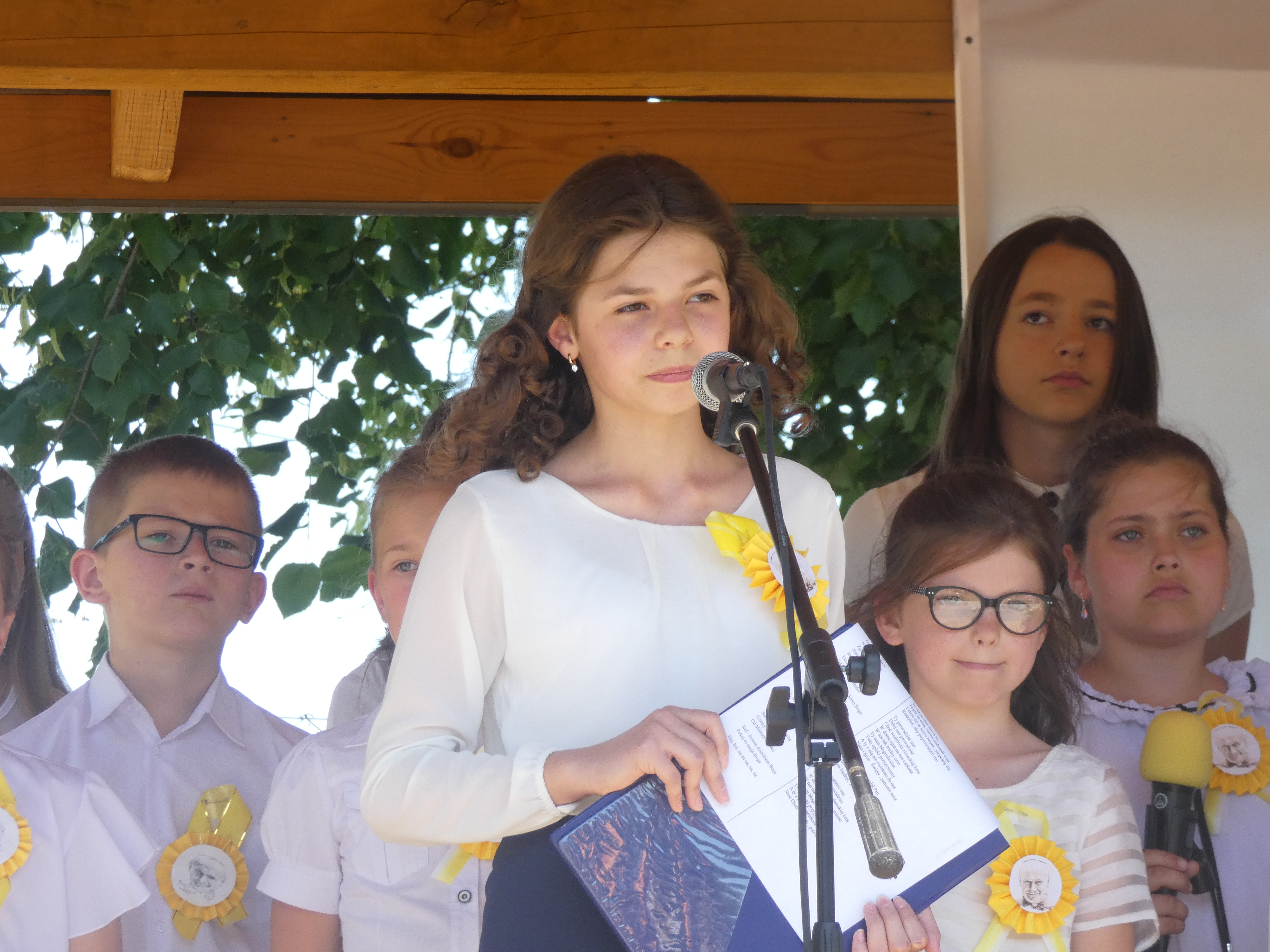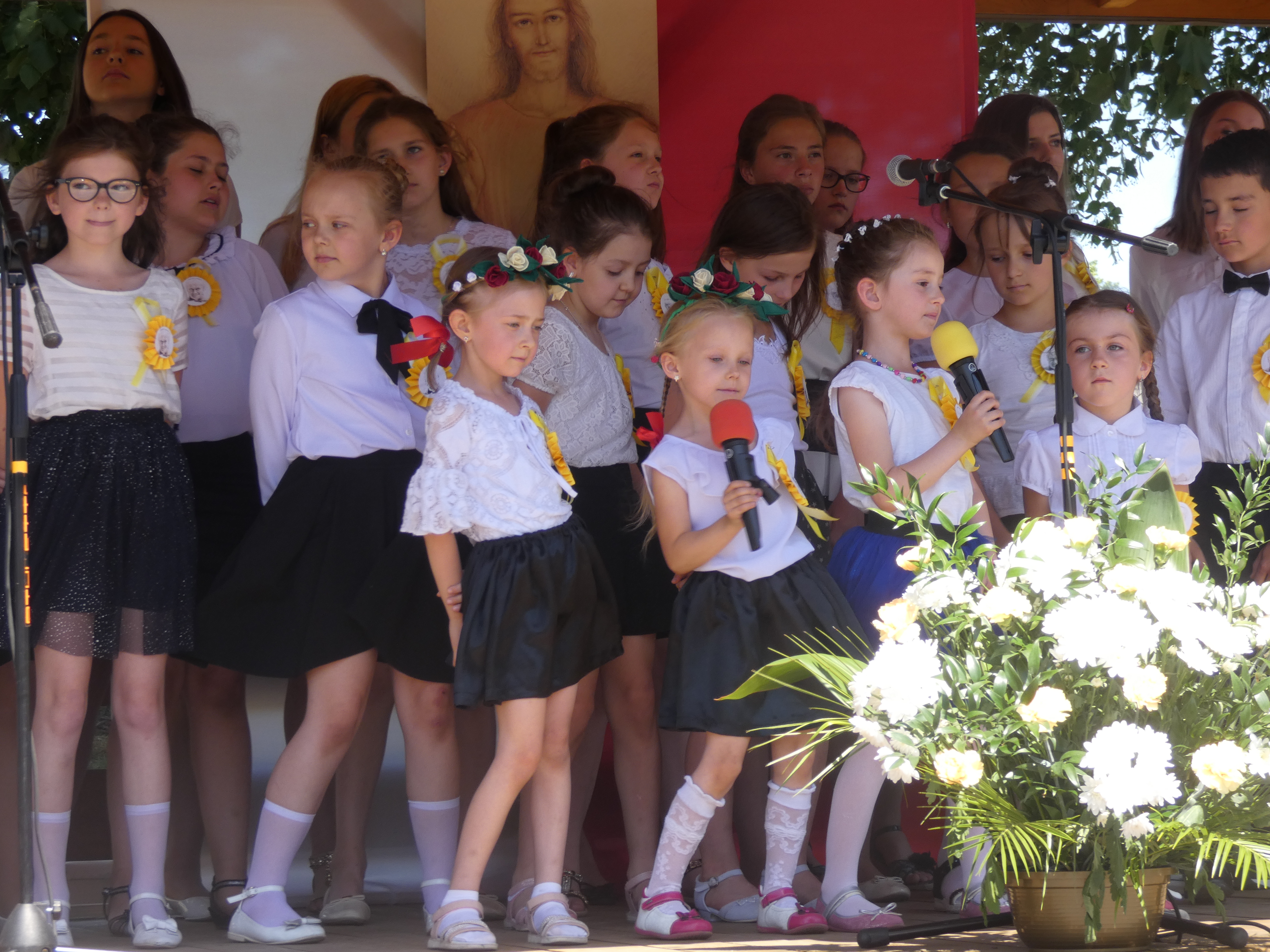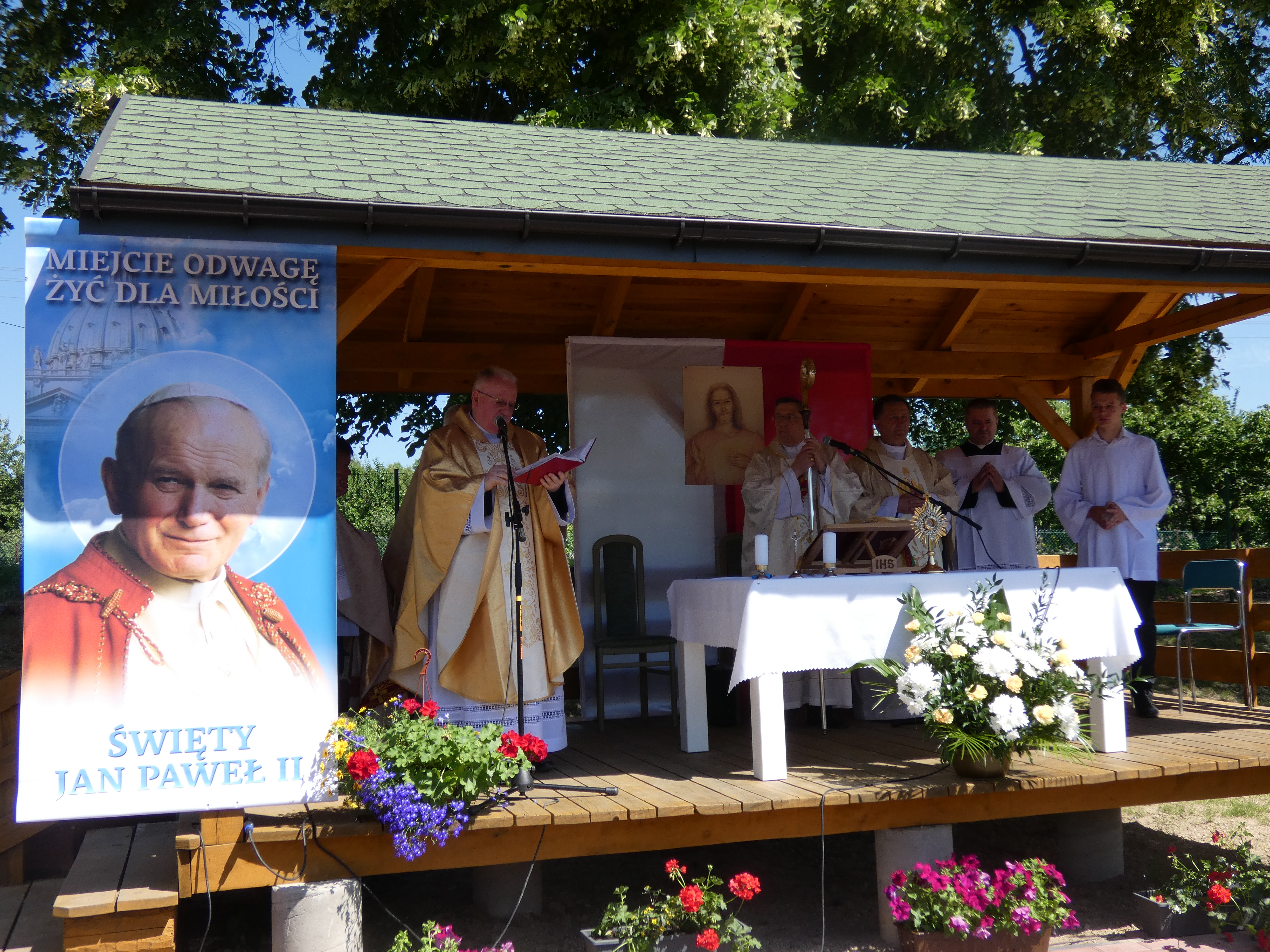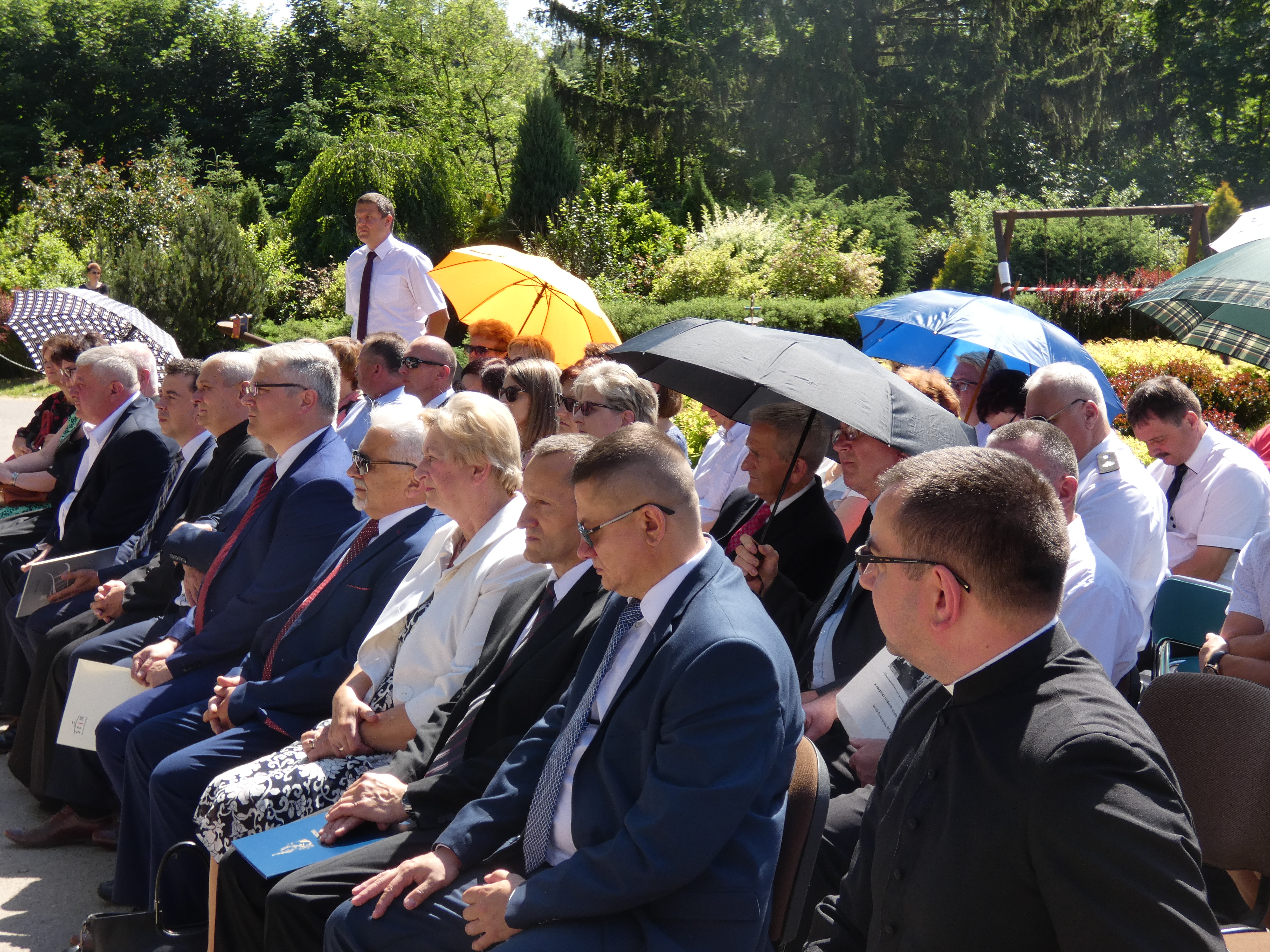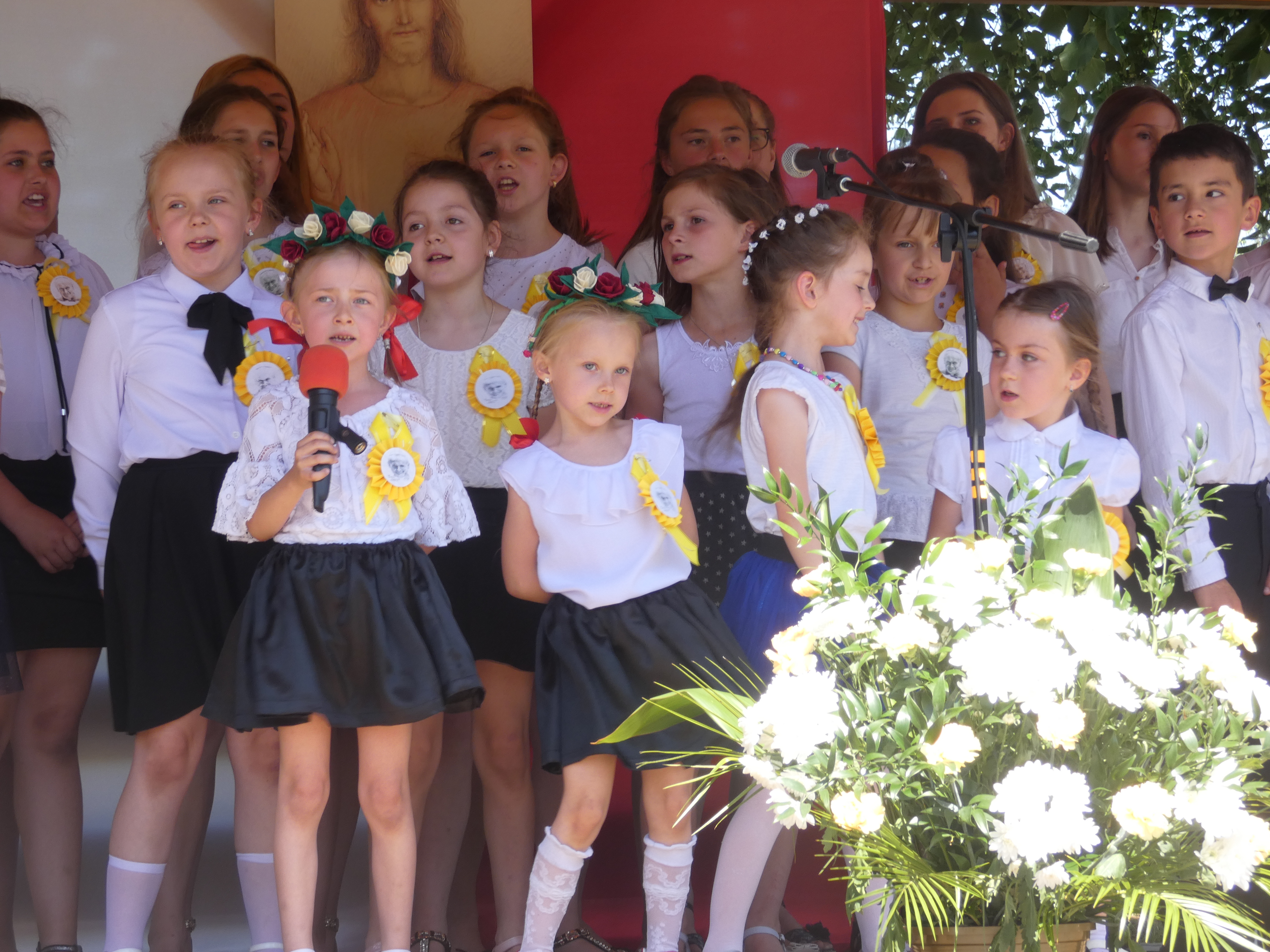30 maja odbyły się obchody jubileuszowej X rocznicy nadania naszej szkole imienia Jana Pawła II. Uroczystość rozpoczęła się Mszą Świętą, której przewodniczył biskup pomocniczy naszej diecezji, Ksiądz Dr Hab. Mariusz Leszczyński. W homilii zwrócił się do zebranych gości, rodziców, uczniów i nauczycieli przypominając, czym jest służba Bogu, ludziom i Ojczyźnie. Po zakończeniu Mszy Świętej Dyrektor Szkoły Pan Stanisław Saj powitał wszystkich zebranych na uroczystości gości a następnie, w swoim bogatym w treści przemówieniu, wyjaśniał, w jaki sposób nasza szkoła realizuje w swej codziennej działalności przesłanie św. Jana Pawła II. Jego wystąpienie nawiązywało nie tylko do X rocznicy nadania szkole imienia Jana Pawła II, ale także do stulecia odzyskania przez Polskę niepodległości. Pan Dyrektor zwrócił szczególną uwagę na miłość wobec Ojczyzny, tak ważną w życiu każdego człowieka i przytoczył wypowiedź Jana Pawła II, która doskonale ukazuje nam współczesne znaczenie słowa patriotyzm: "Służba Ojczyźnie nie zawsze wymaga ofiary krwi, ale żąda także ofiary wytrwałej pracy, nauki, wychowania młodego pokolenia i pielęgnowania kultury." Na zakończenie swojej przemowy życzył, abyśmy czerpali z bogactwa, jakie zostawił nam Jan Paweł II i patrząc na osobę Papieża Polaka, uczyli się miłości i patriotyzmu. Następnie dzieci z oddziału przedszkolnego, w imieniu całej społeczności uczniowskiej naszej szkoły, przywitały wszystkich przepięknie zatańczonym polonezem, który zachwycił naszych gości. Kolejną wzruszającą częścią jubileuszu był koncert w wykonaniu chórku szkolnego. Po występach artystycznych krótkie przemówienia wygłosiło wielu z licznie przybyłych gości.