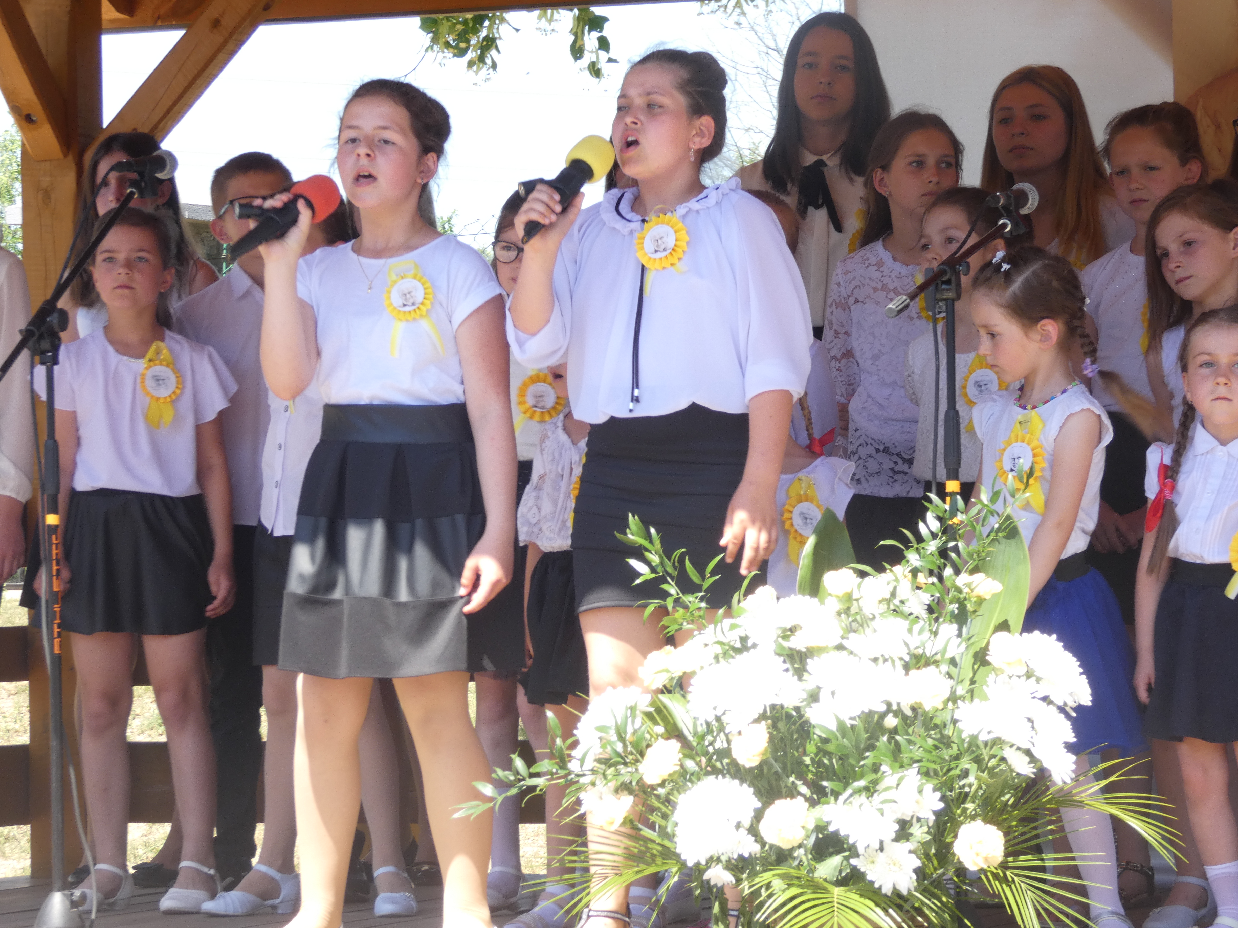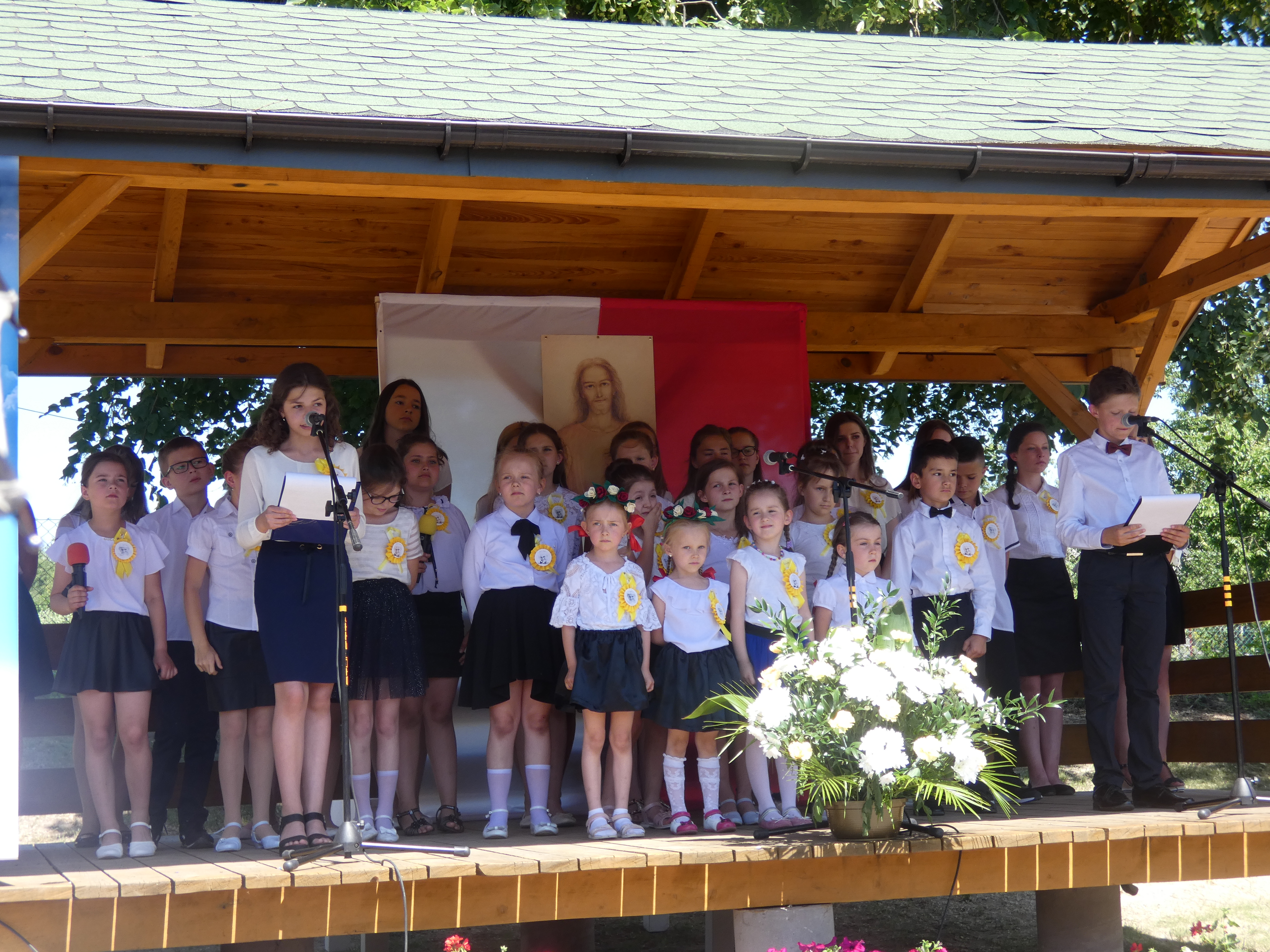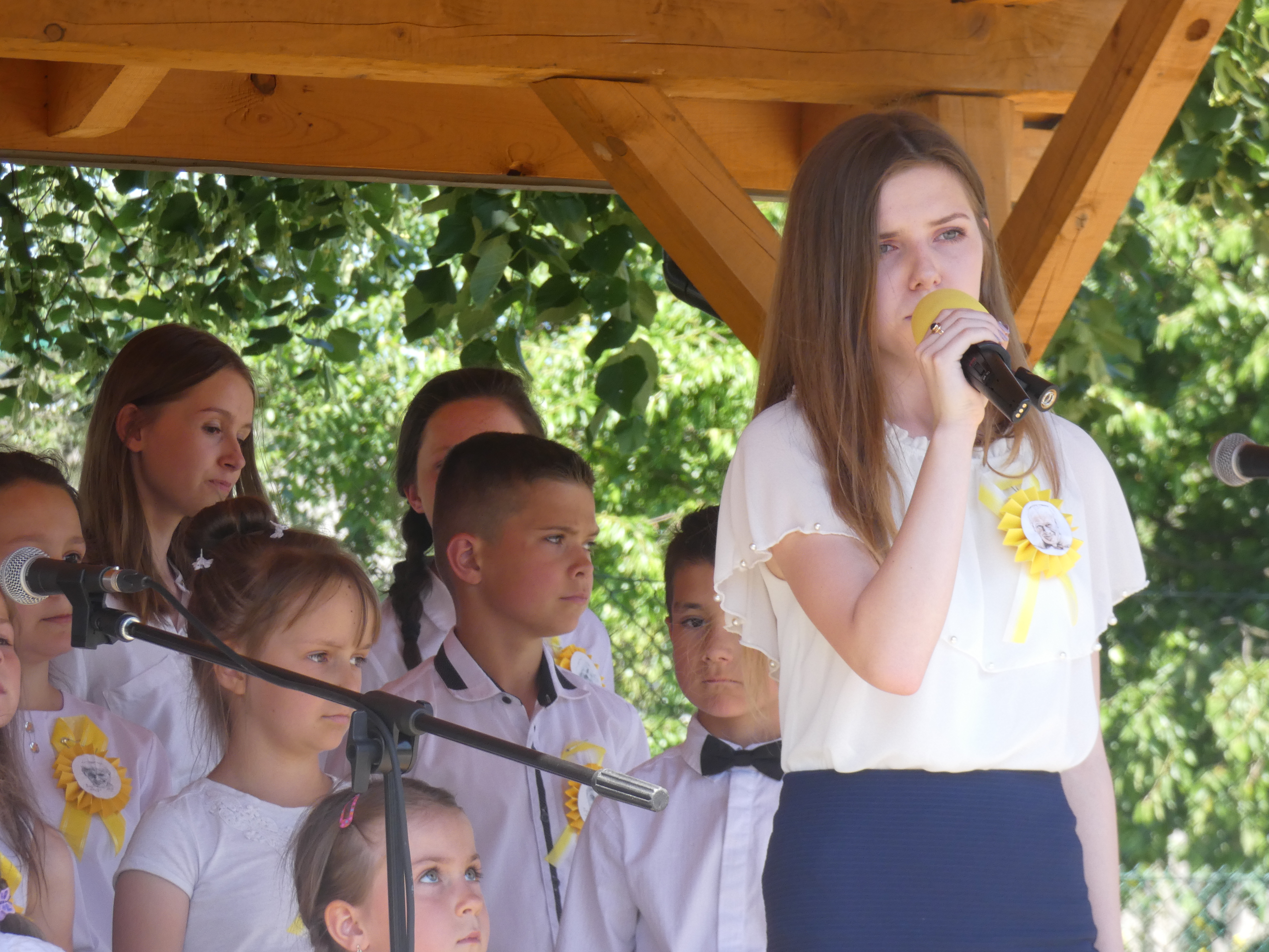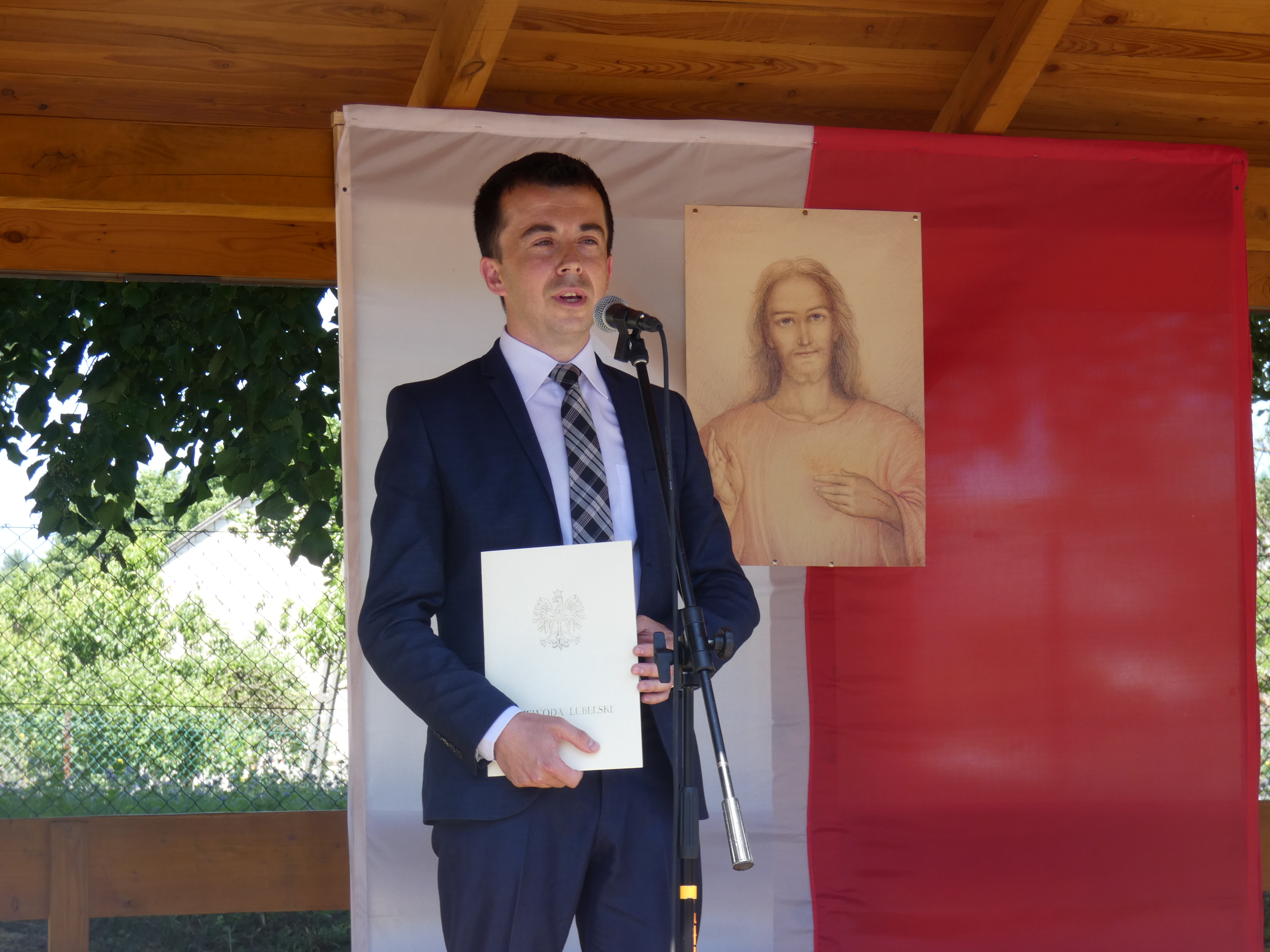 30 maja odbyły się obchody jubileuszowej X rocznicy nadania naszej szkole imienia Jana Pawła II. Uroczystość rozpoczęła się Mszą Świętą, której przewodniczył biskup pomocniczy naszej diecezji, Ksiądz Dr Hab. Mariusz Leszczyński. W homilii zwrócił się do zebranych gości, rodziców, uczniów i nauczycieli przypominając, czym jest służba Bogu, ludziom i Ojczyźnie. Po zakończeniu Mszy Świętej Dyrektor Szkoły Pan Stanisław Saj powitał wszystkich zebranych na uroczystości gości a następnie, w swoim bogatym w treści przemówieniu, wyjaśniał, w jaki sposób nasza szkoła realizuje w swej codziennej działalności przesłanie św. Jana Pawła II. Jego wystąpienie nawiązywało nie tylko do X rocznicy nadania szkole imienia Jana Pawła II, ale także do stulecia odzyskania przez Polskę niepodległości. Pan Dyrektor zwrócił szczególną uwagę na miłość wobec Ojczyzny, tak ważną w życiu każdego człowieka i przytoczył wypowiedź Jana Pawła II, która doskonale ukazuje nam współczesne znaczenie słowa patriotyzm: "Służba Ojczyźnie nie zawsze wymaga ofiary krwi, ale żąda także ofiary wytrwałej pracy, nauki, wychowania młodego pokolenia i pielęgnowania kultury." Na zakończenie swojej przemowy życzył, abyśmy czerpali z bogactwa, jakie zostawił nam Jan Paweł II i patrząc na osobę Papieża Polaka, uczyli się miłości i patriotyzmu. Następnie dzieci z oddziału przedszkolnego, w imieniu całej społeczności uczniowskiej naszej szkoły, przywitały wszystkich przepięknie zatańczonym polonezem, który zachwycił naszych gości. Kolejną wzruszającą częścią jubileuszu był koncert w wykonaniu chórku szkolnego. Po występach artystycznych krótkie przemówienia wygłosiło wielu z licznie przybyłych gości.