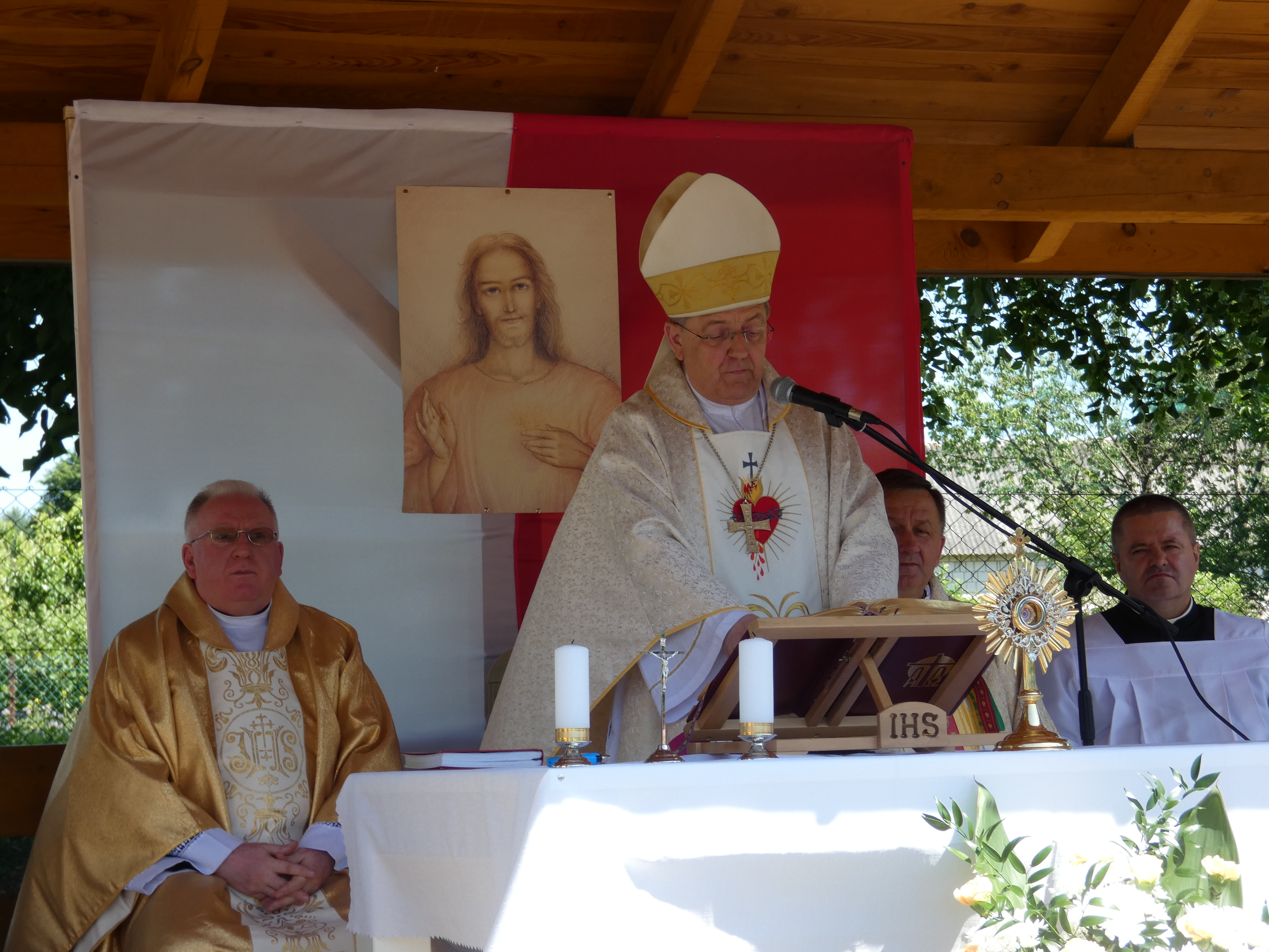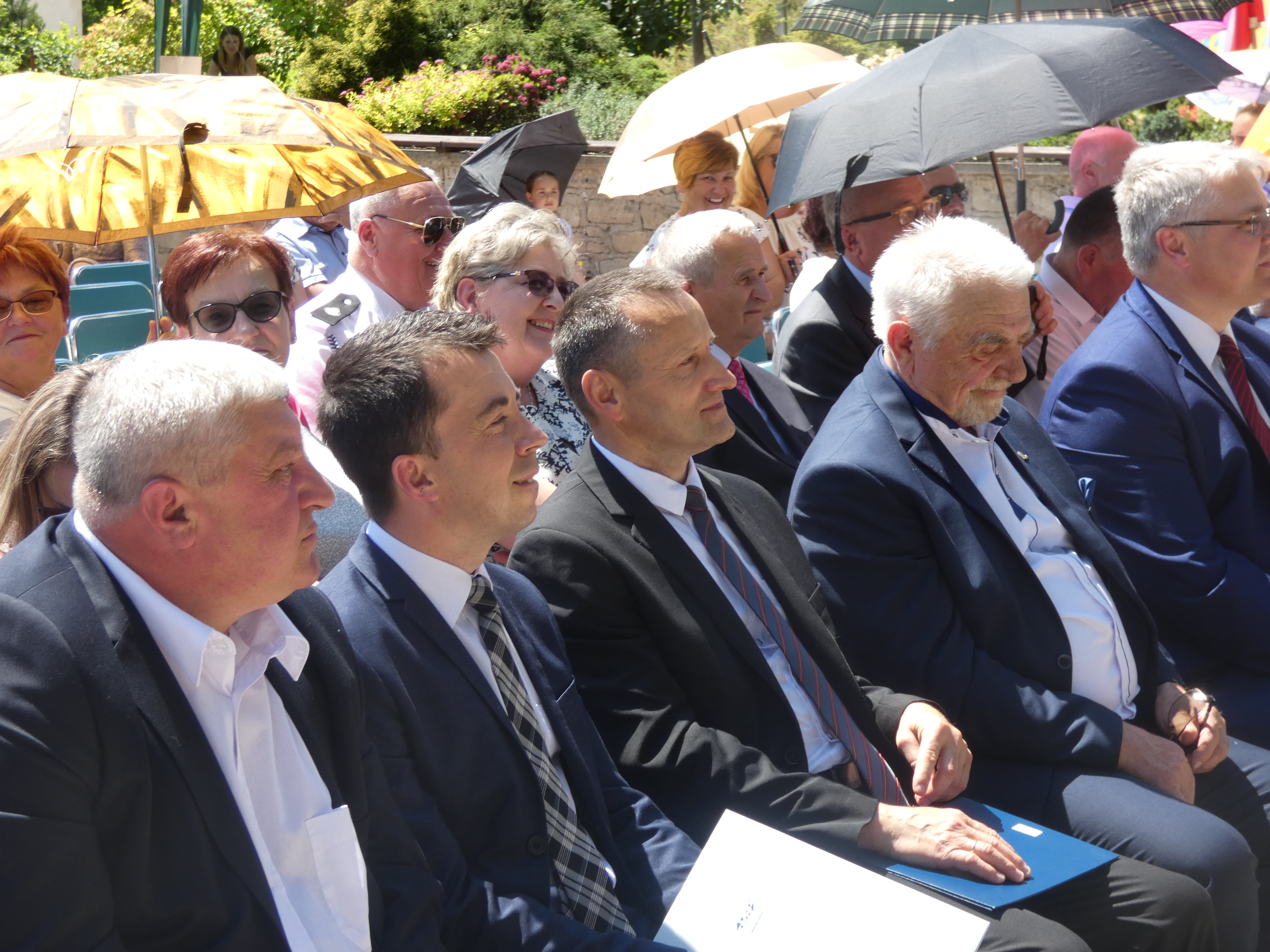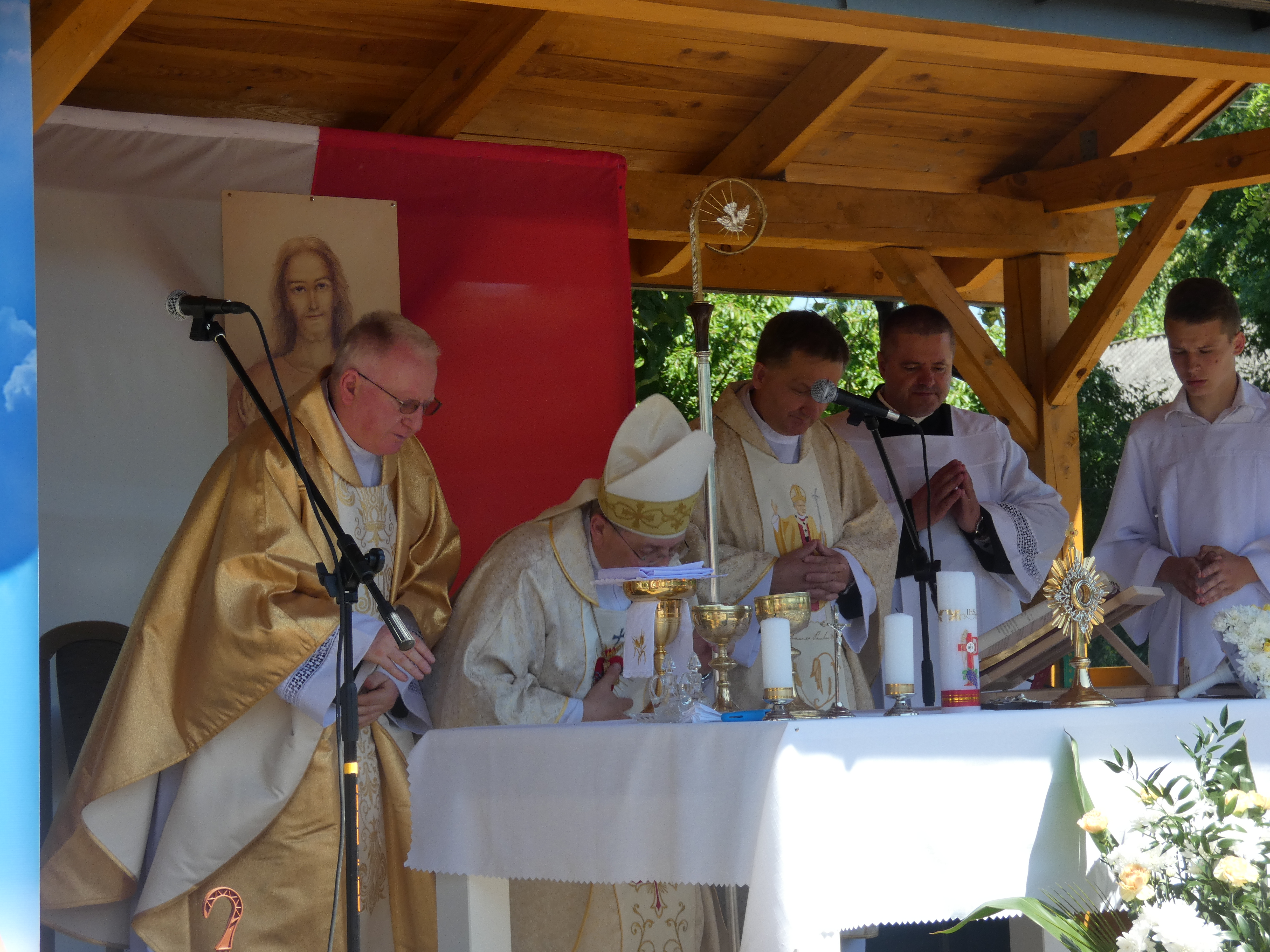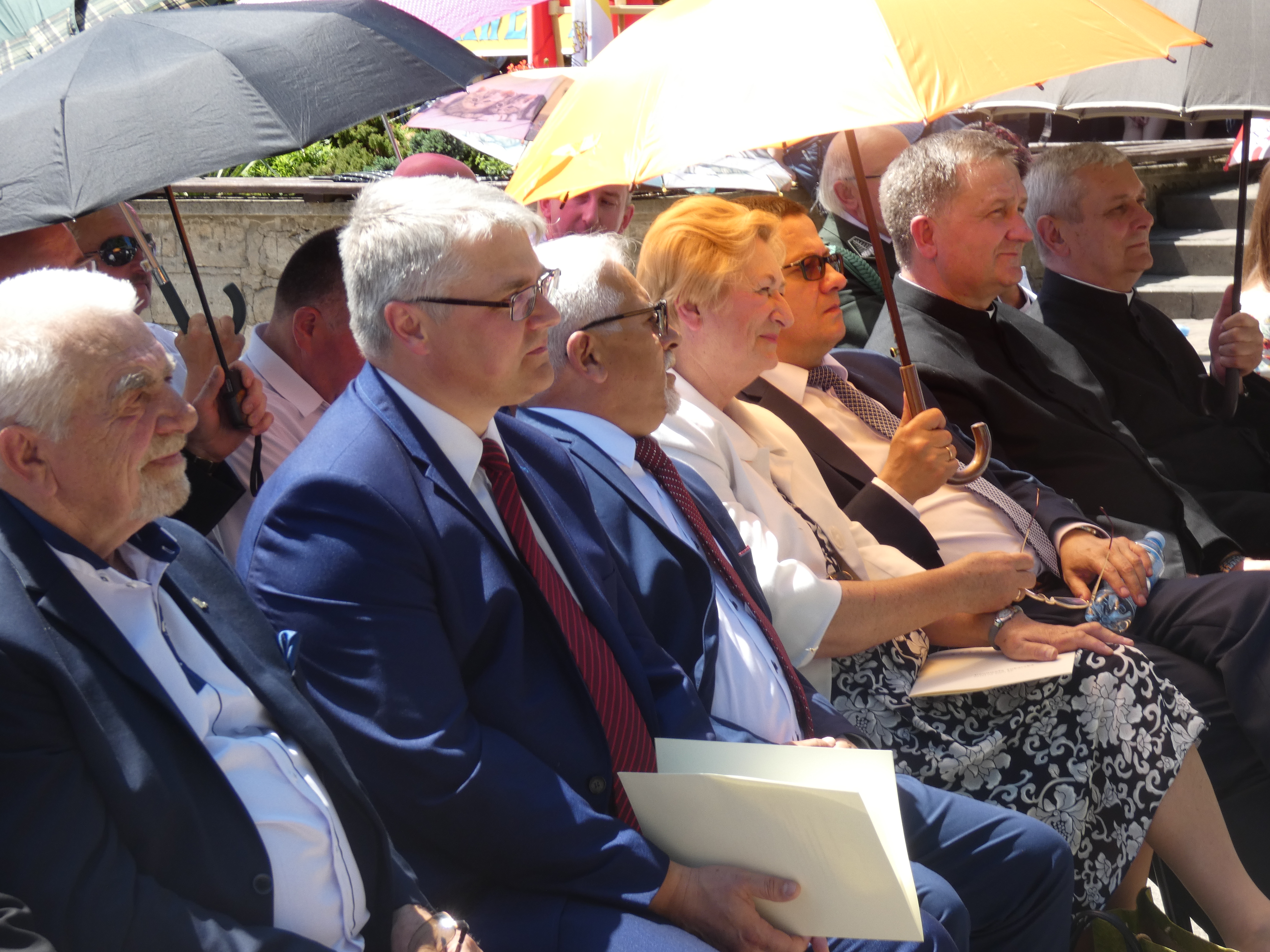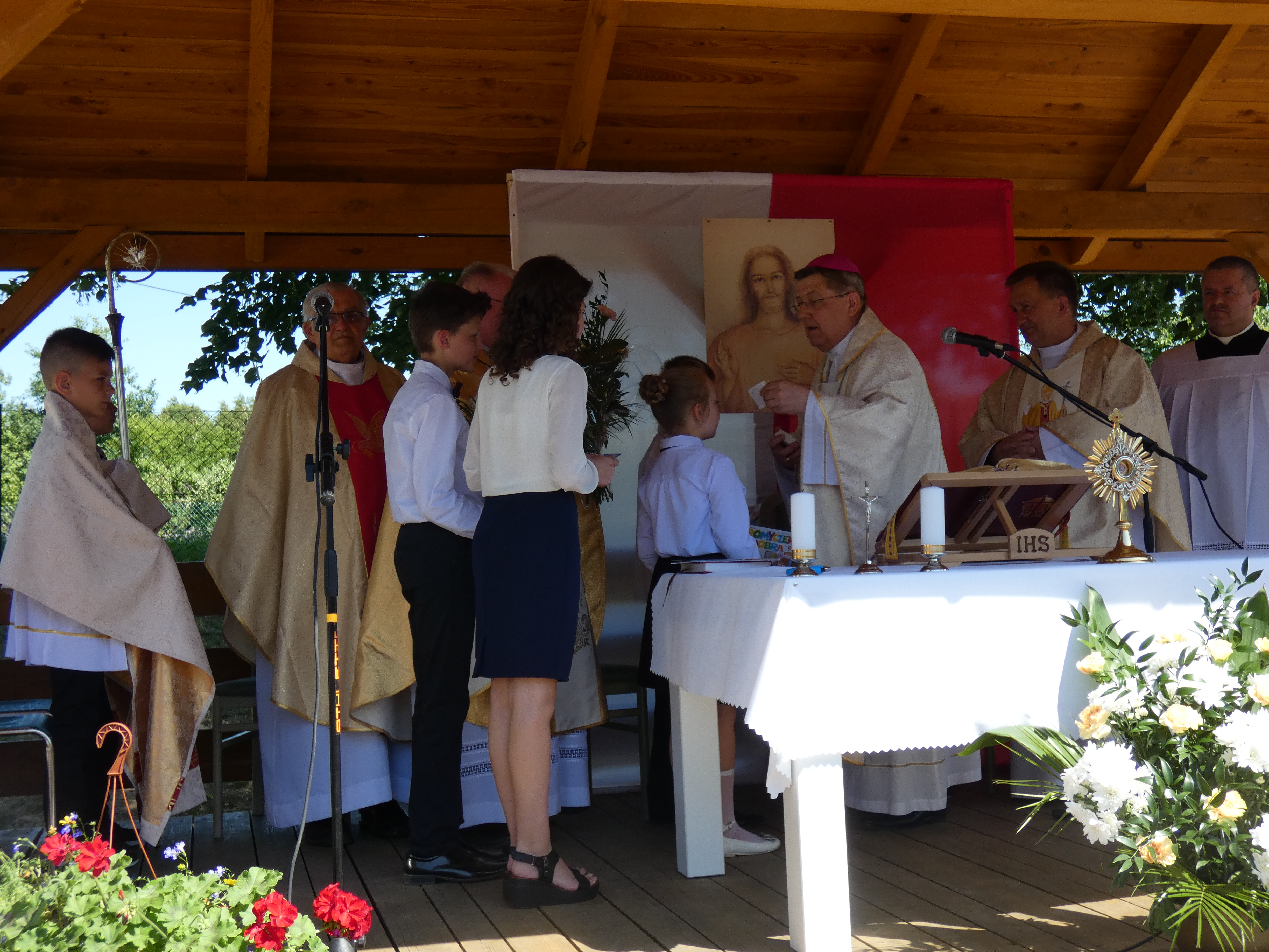 30 maja odbyły się obchody jubileuszowej X rocznicy nadania naszej szkole imienia Jana Pawła II. Uroczystość rozpoczęła się Mszą Świętą, której przewodniczył biskup pomocniczy naszej diecezji, Ksiądz Dr Hab. Mariusz Leszczyński. W homilii zwrócił się do zebranych gości, rodziców, uczniów i nauczycieli przypominając, czym jest służba Bogu, ludziom i Ojczyźnie. Po zakończeniu Mszy Świętej Dyrektor Szkoły Pan Stanisław Saj powitał wszystkich zebranych na uroczystości gości a następnie, w swoim bogatym w treści przemówieniu, wyjaśniał, w jaki sposób nasza szkoła realizuje w swej codziennej działalności przesłanie św. Jana Pawła II. Jego wystąpienie nawiązywało nie tylko do X rocznicy nadania szkole imienia Jana Pawła II, ale także do stulecia odzyskania przez Polskę niepodległości. Pan Dyrektor zwrócił szczególną uwagę na miłość wobec Ojczyzny, tak ważną w życiu każdego człowieka i przytoczył wypowiedź Jana Pawła II, która doskonale ukazuje nam współczesne znaczenie słowa patriotyzm: "Służba Ojczyźnie nie zawsze wymaga ofiary krwi, ale żąda także ofiary wytrwałej pracy, nauki, wychowania młodego pokolenia i pielęgnowania kultury." Na zakończenie swojej przemowy życzył, abyśmy czerpali z bogactwa, jakie zostawił nam Jan Paweł II i patrząc na osobę Papieża Polaka, uczyli się miłości i patriotyzmu. Następnie dzieci z oddziału przedszkolnego, w imieniu całej społeczności uczniowskiej naszej szkoły, przywitały wszystkich przepięknie zatańczonym polonezem, który zachwycił naszych gości. Kolejną wzruszającą częścią jubileuszu był koncert w wykonaniu chórku szkolnego. Po występach artystycznych krótkie przemówienia wygłosiło wielu z licznie przybyłych gości.