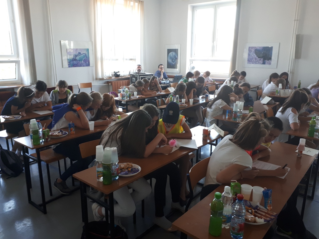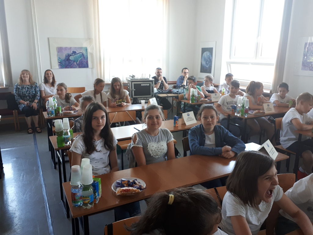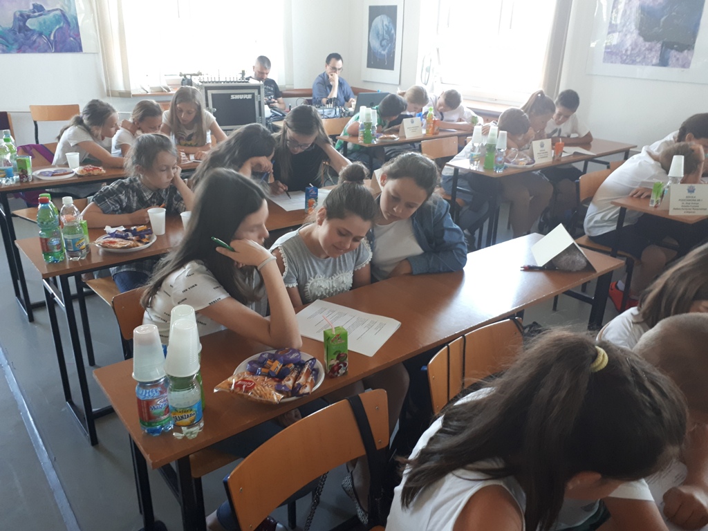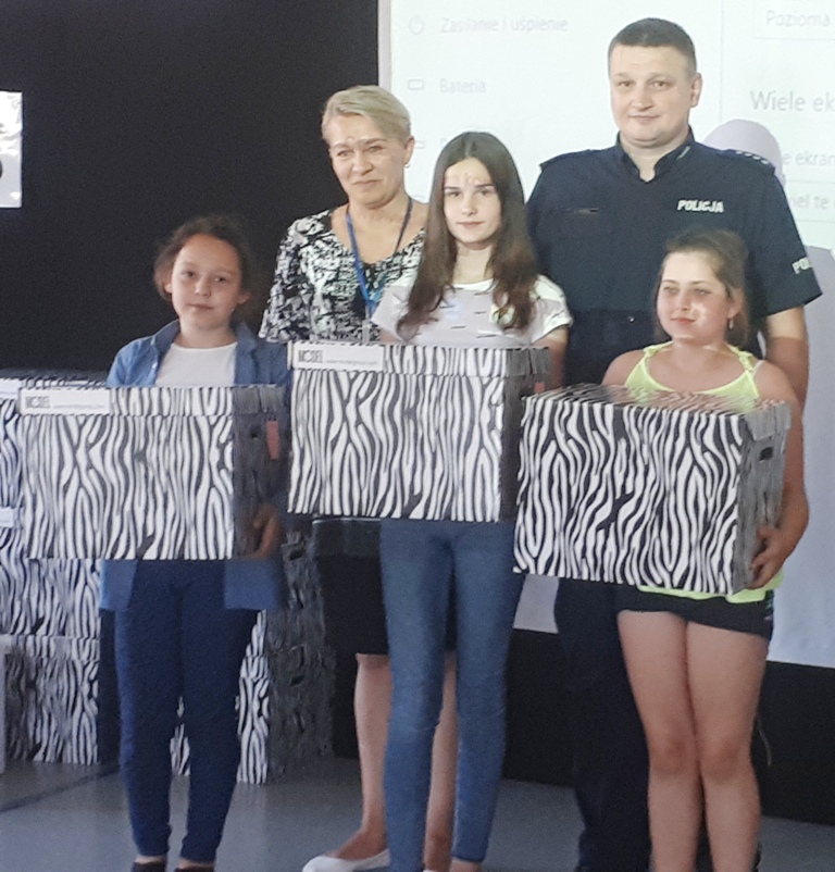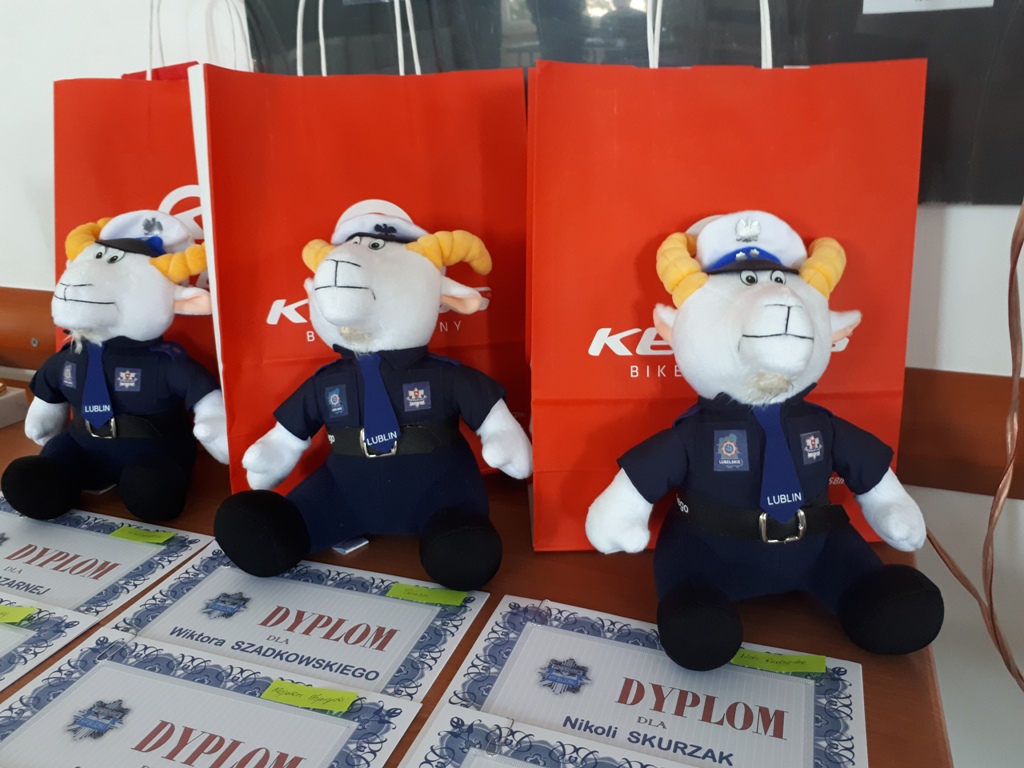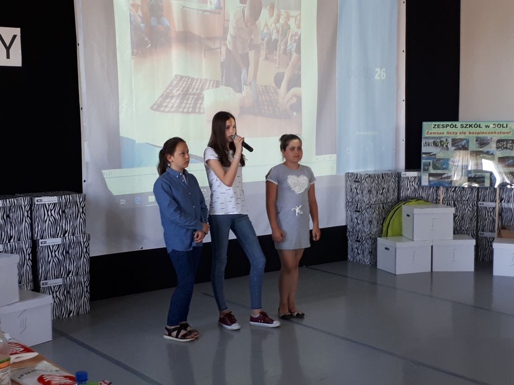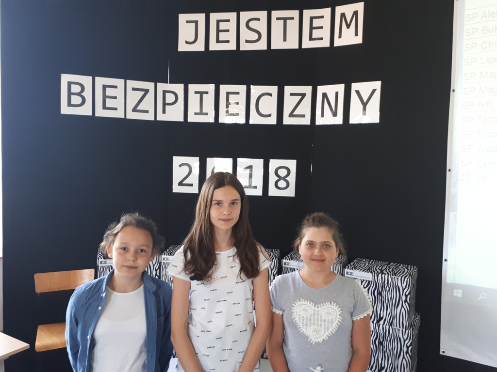 Celem konkursu było uświadomienie dzieciom, jakie występują zagrożenia i jak ich unikać. W ostatnim etapie konkursu gminę Frampol reprezentowała nasza szkoła. W skład drużyny wchodziły uczennice: Amelia Socha kl. VI, Natalia Kaproń kl. V i Nikola Skurzak kl. IV. Rywalizacja składała się z trzech etapów. W pierwszym komisja oceniała projekty koszulek związane z tematyką bezpieczeństwa. Kolejny to test pisemny składający się z 20 pytań i ostatni to prezentacja szkoły i hasła związanego z bezpieczeństwem. Niestety nie udało się naszym dziewczynom wskoczyć na pudło, ale jak na pierwszy raz to i tak było dobrze. Zebrały cenne doświadczenie, które miejmy nadzieję zaowocuje w kolejnych edycjach tego konkursu. Wszyscy uczestnicy za udział otrzymali cenne nagrody a pierwsze trzy drużyny puchary.