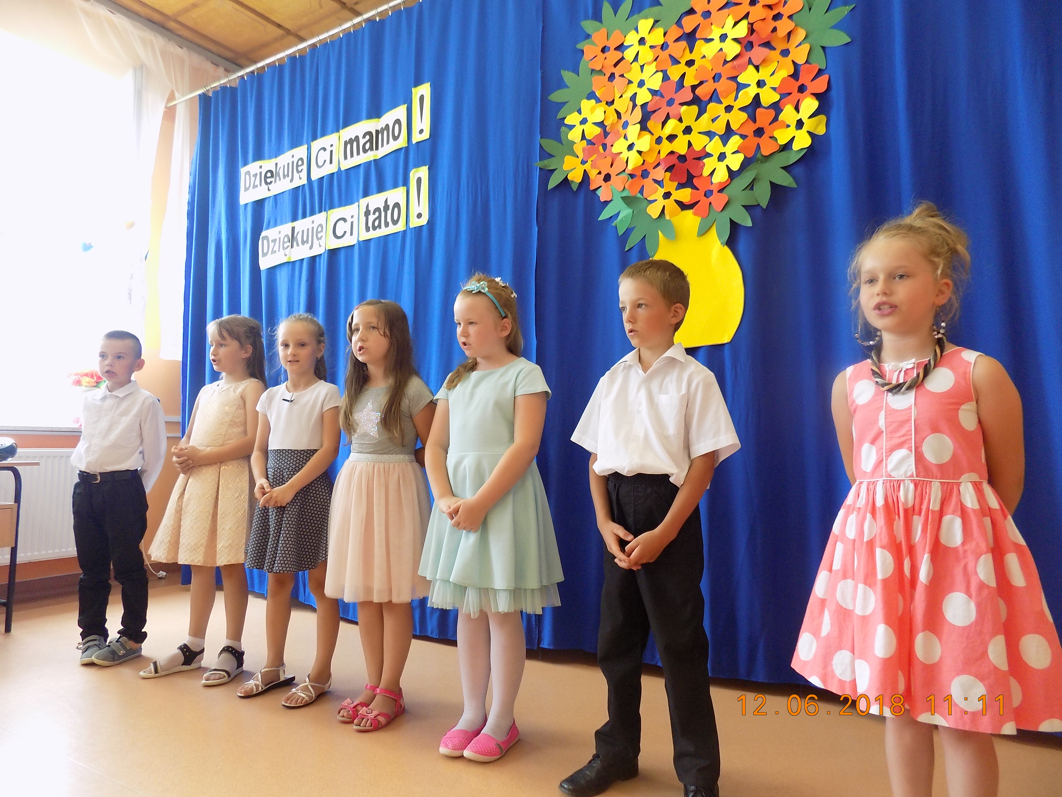 Jak co roku, przedszkolaki i dzieci z klas I i III świętowały Dzień Mamy i Taty - wspólne Święto Rodziców. 12 czerwca wszystkie dzieci słowem i piosenką wyraziły miłość i wdzięczność za matczyną dobroć i cierpliwość, za serce, które tak wiele rozumie i wspaniałomyślnie wybacza a także za mądrość i ojcowski autorytet. Po wspaniałych występach, w których dzieci zaprezentowały swoje zdolności recytatorskie, wokalne i taneczne, na twarzach rodziców zauważyć można było wzruszenie i dumę ze swoich pociech.