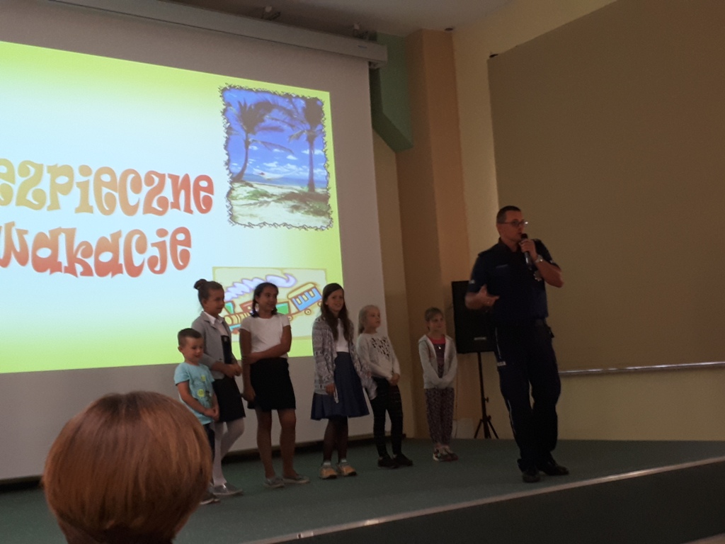 Podczas podsumowania zostały zaprezentowane najlepsze prace nadesłane przez uczniów z przedszkoli i szkół podstawowych na temat ekologii. Policjanci i strażacy mówili o bezpieczeństwie podczas wakacji zarówno w lasach jak i poza nim. Pokazywali jak zachować się, kiedy zaczepia nas nieznajomy oraz co robić aby zapobiec pożarom w lasach. Były pokazy umundurowania policji i popisy psa policyjnego. Później wszyscy zostali zaproszeni na kiełbaskę z grilla oraz słodkości "dosłownie płynące strumieniami". W gronie nadesłanych prac znalazła się również praca naszej uczennicy Karoliny Brzozowskiej. Jak się później okazało jury zdecydowała, że film Karoliny zajął 2 miejsce wśród wszystkich prezentacji. Po tym bardzo miłym momencie udaliśmy się na wieżę widokową na Białej Górze gdzie podziwialiśmy wspaniałe widoki. Na zakończenie tego dnia czekała jeszcze na wszystkich miła niespodzianka w postaci pizzy, którą zjedli w karczmie Młyn. Serdecznie gratulujemy Karolinie zajętego miejsca i życzymy powodzenia w kolejnych konkursach.