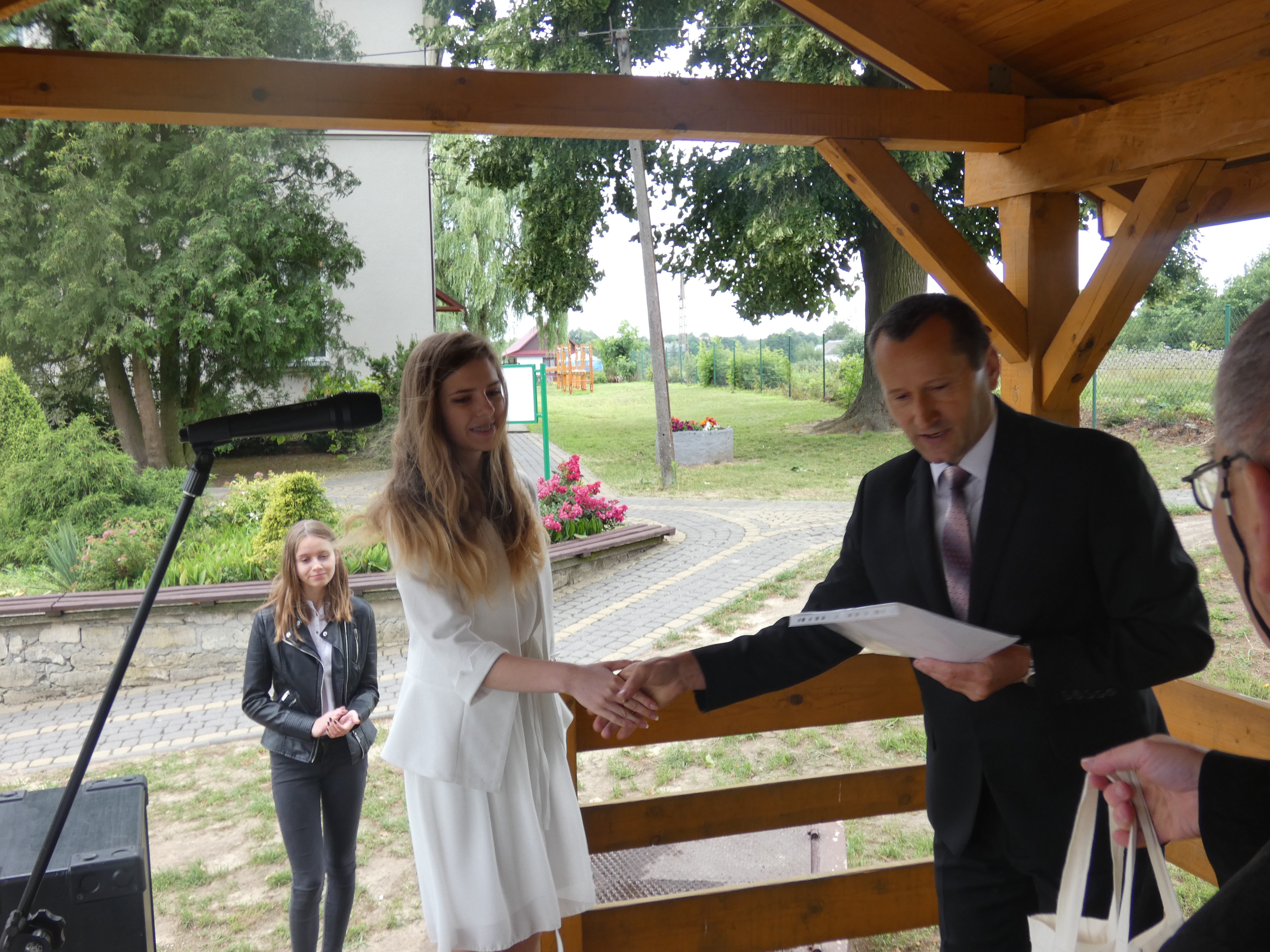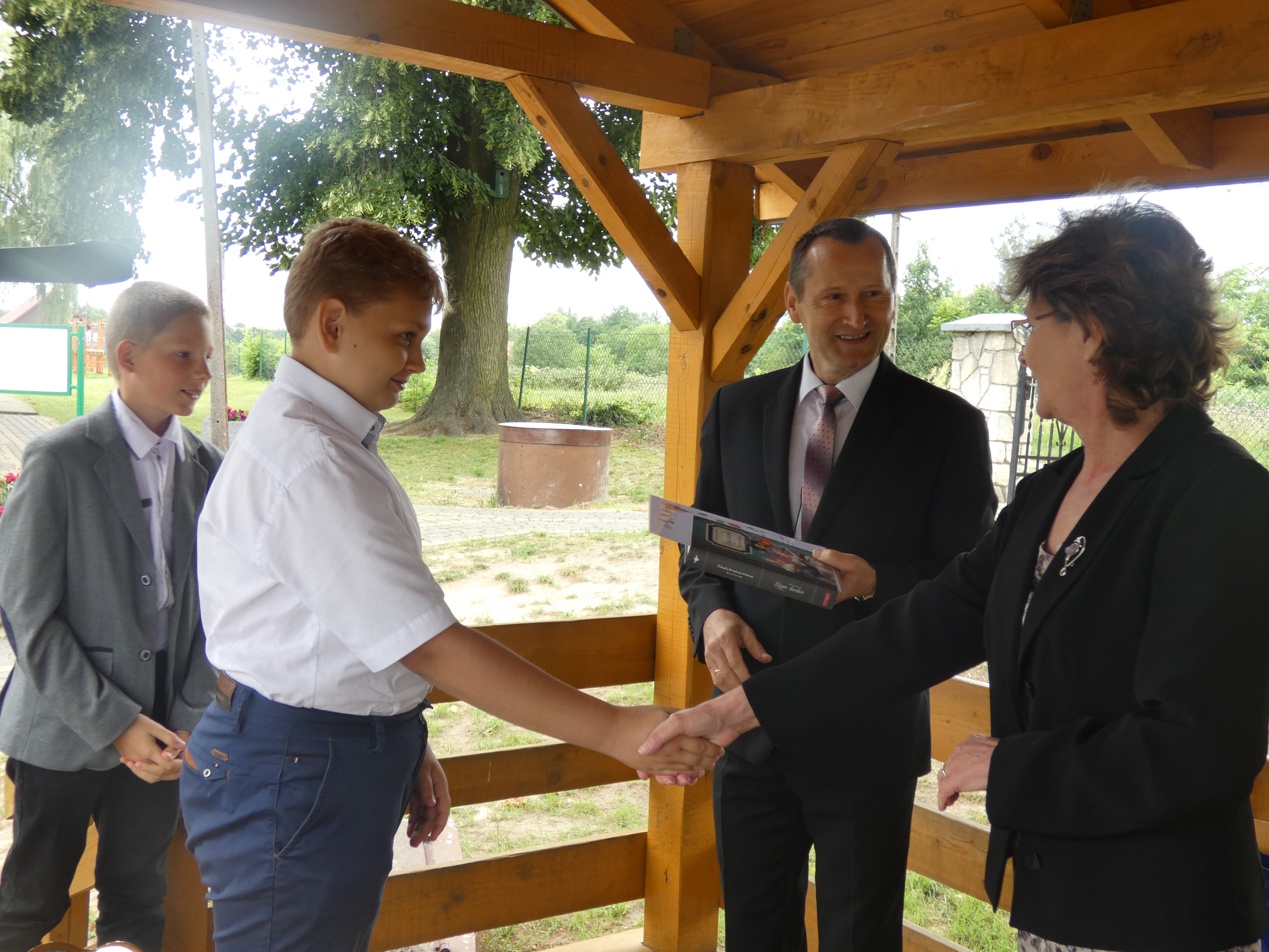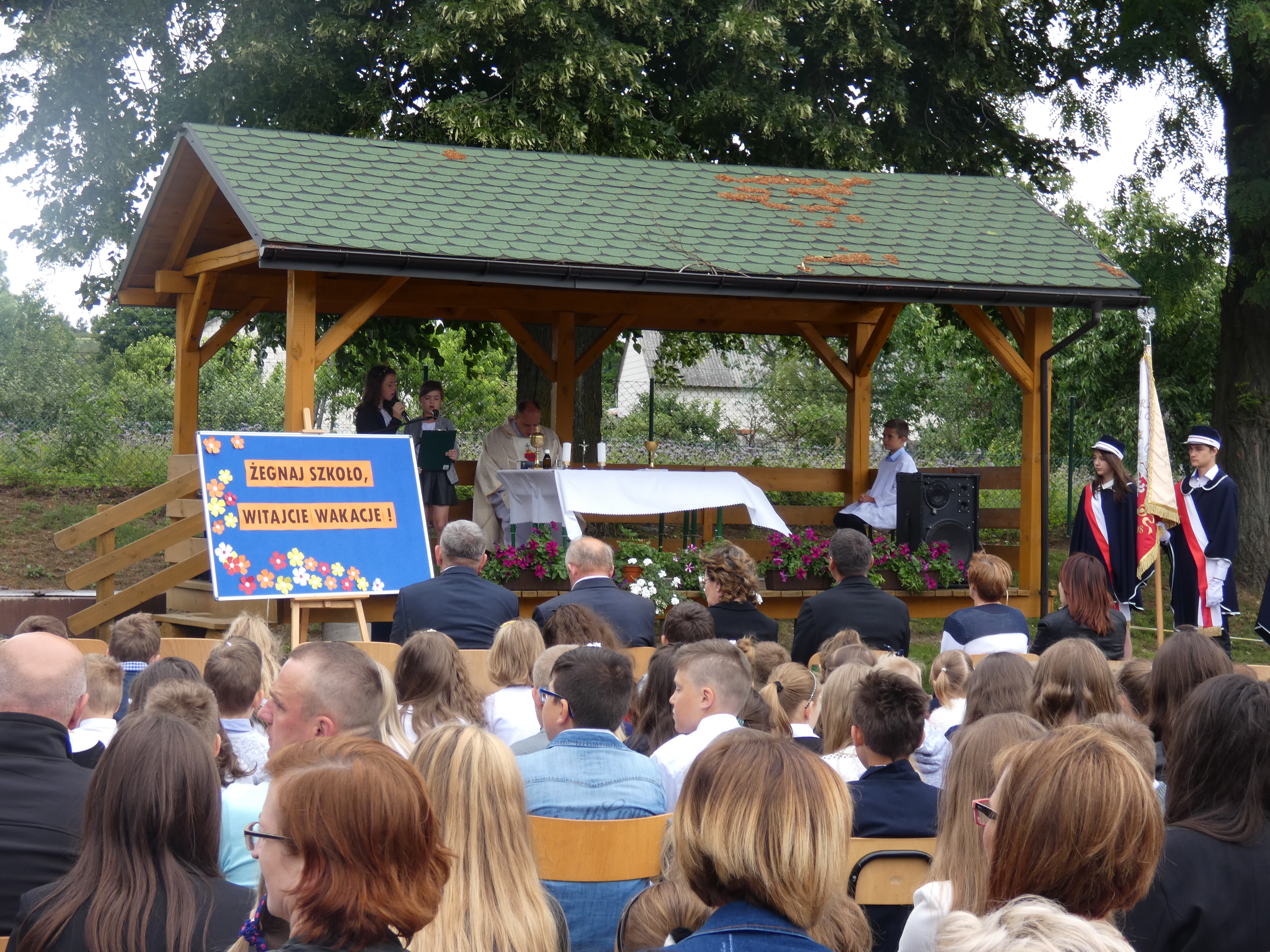22 czerwca uroczyście zakończyliśmy rok szkolny 2017/2018. W tym szczególnym dniu mieliśmy przyjemność gościć w naszej szkole Panią Alicję Siedlecką - starszego wizytatora Kuratorium Oświaty w Lublinie - Delegatura w Zamościu, Pana Wojciecha Kowalika - Przewodniczącego Rady Miejskiej we Frampolu oraz przedstawicieli Rady Rodziców na czele z Panią Przewodniczącą Teodorą Rapa.Tradycyjnie nasza uroczystość rozpoczęła się od mszy świętej, którą w intencji całej społeczności szkolnej odprawił ks. Krzysztof Paluch. Następnie Pan Dyrektor Stanisław Saj powitał wszystkich zebranych i podsumował całoroczną pracę szkoły. Odbyło się uroczyste wręczanie świadectw z wyróżnieniem, nagród i dyplomów, dla uczniów osiągających najwyższe wyniki nauczania oraz odnoszących sukcesy w różnego rodzaju konkursach i zawodach sportowych. Listy gratulacyjne zostały wręczone również rodzicom, tegorocznych finalistek konkursów przedmiotowych i tematycznych - Pauliny Książek i Moniki Brytan. Na zakończenie kilka słów do uczniów, rodziców i pracowników oświaty skierowali Pani Alicja Siedlecka oraz Pan Wojciech Kowalik, dziękując wszystkim za miniony rok szkolny oraz życząc spokojnego i radosnego wypoczynku podczas wakacji.