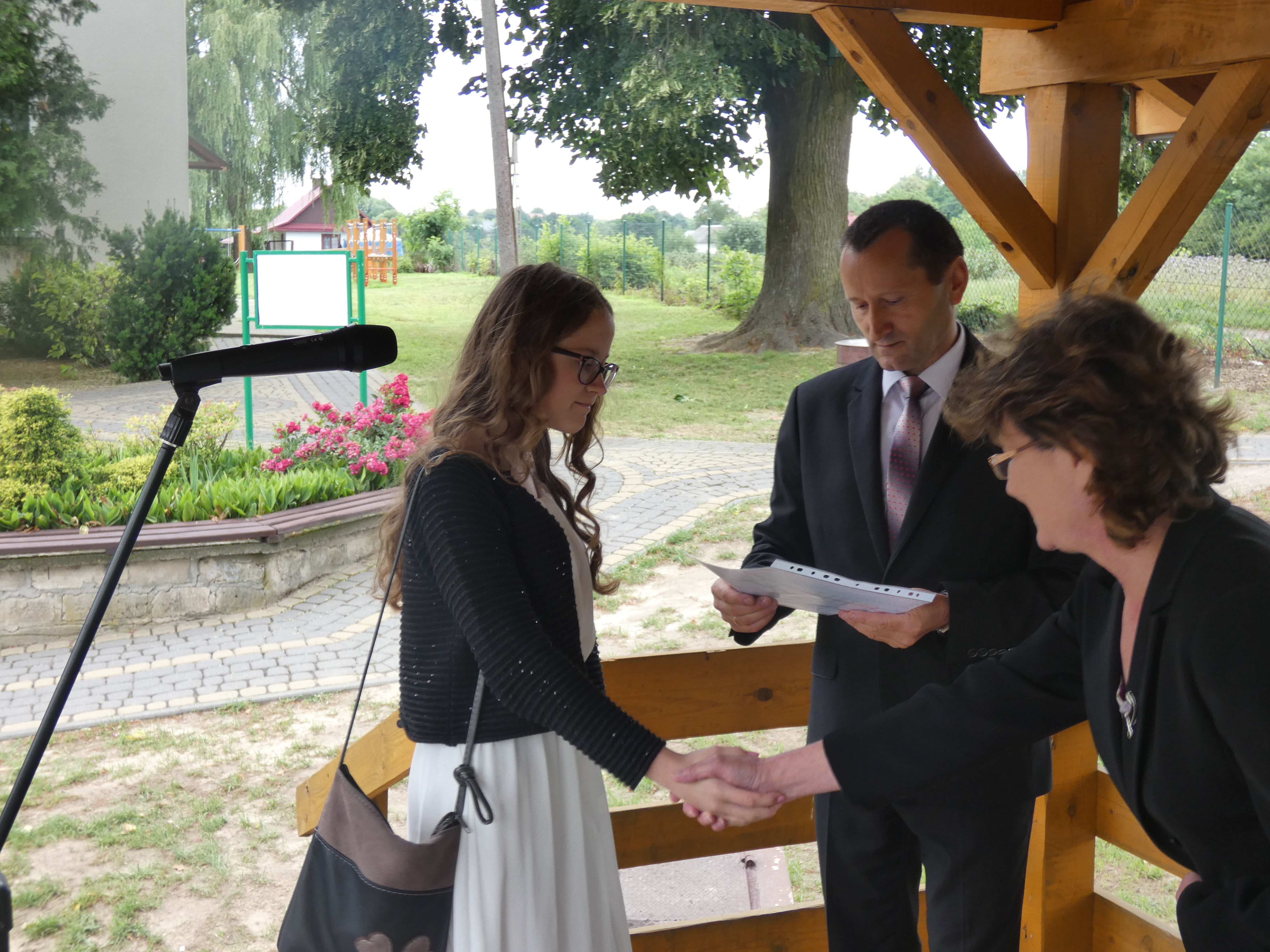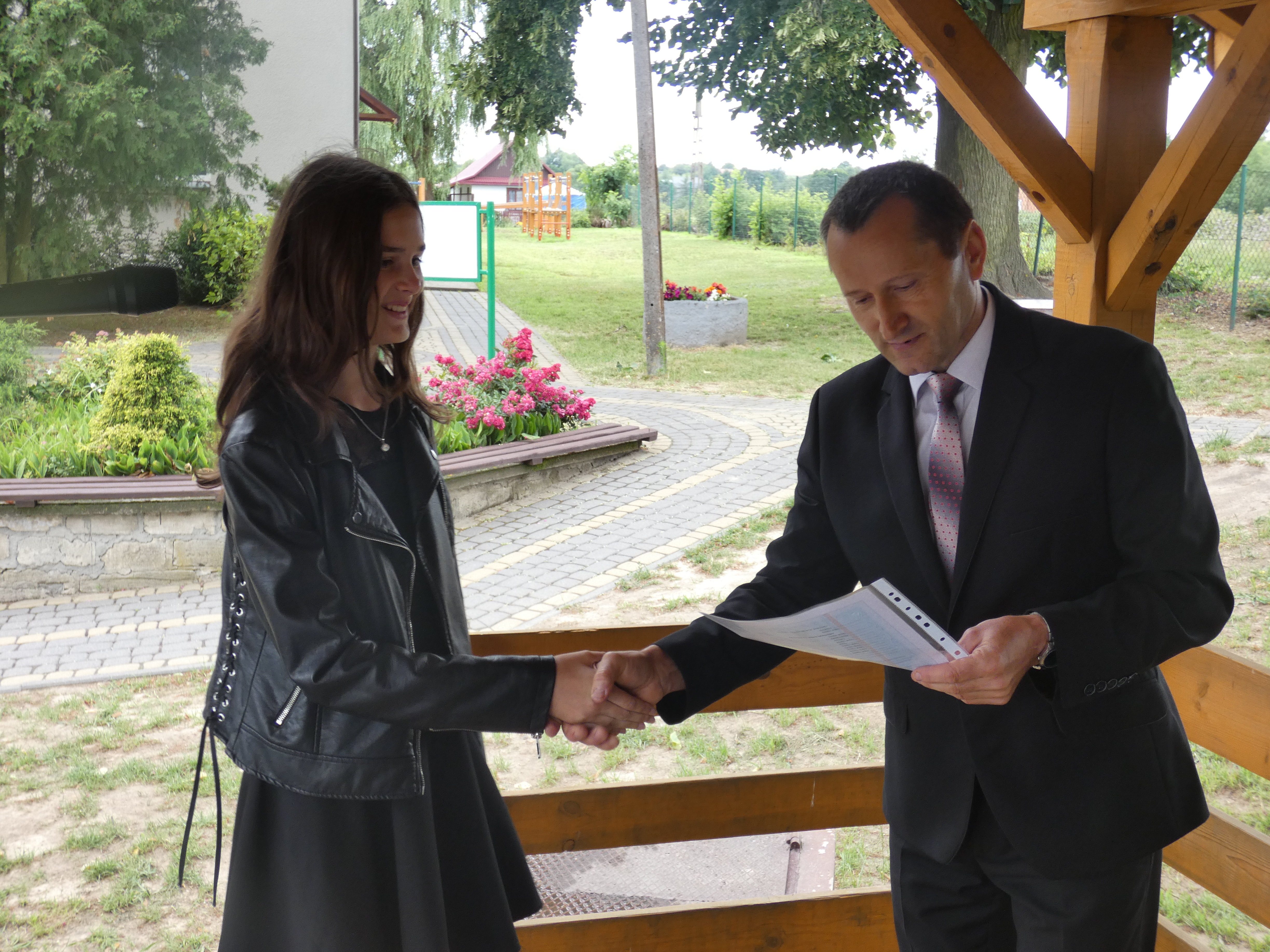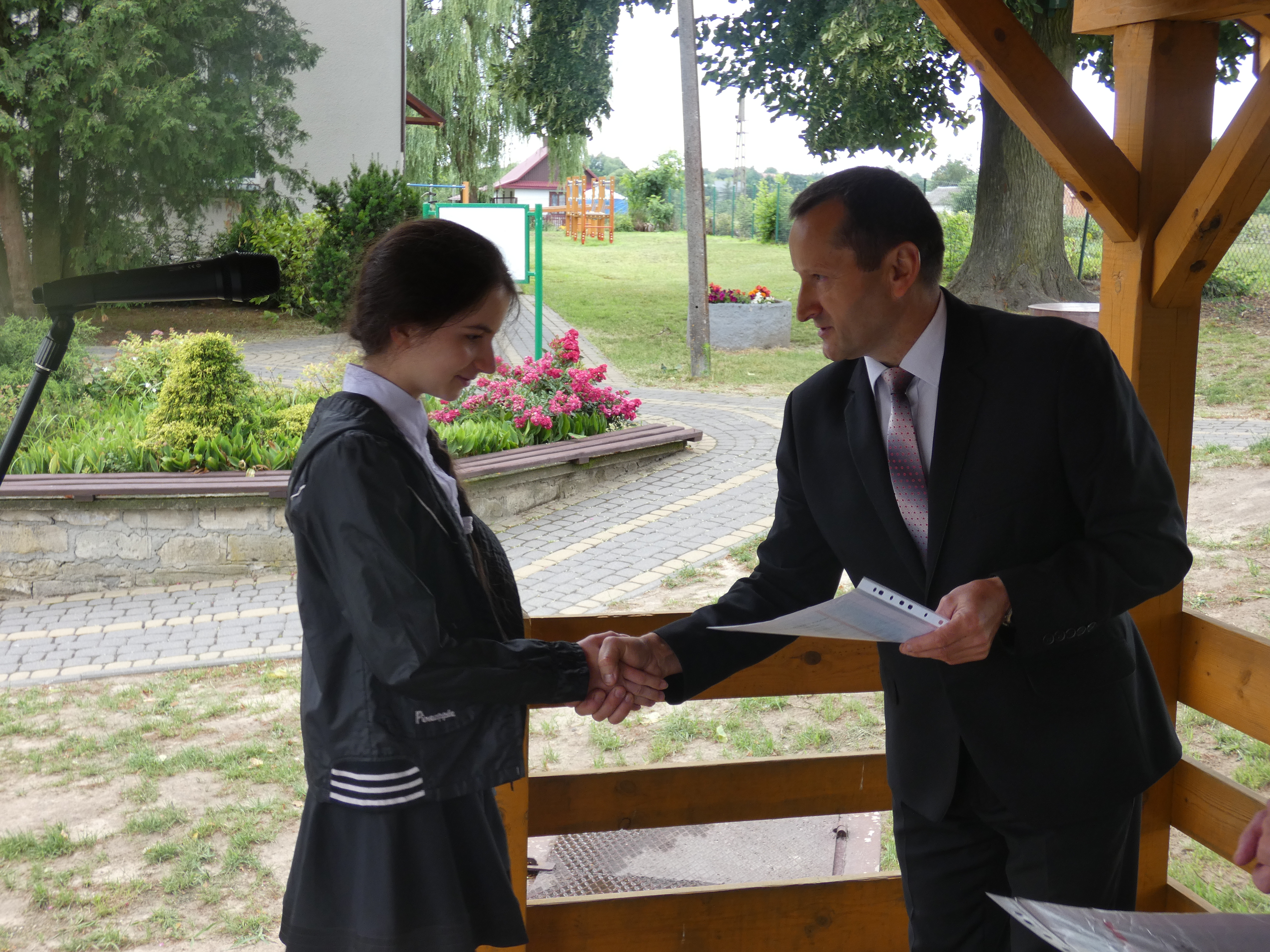 22 czerwca uroczyście zakończyliśmy rok szkolny 2017/2018. W tym szczególnym dniu mieliśmy przyjemność gościć w naszej szkole Panią Alicję Siedlecką - starszego wizytatora Kuratorium Oświaty w Lublinie - Delegatura w Zamościu, Pana Wojciecha Kowalika - Przewodniczącego Rady Miejskiej we Frampolu oraz przedstawicieli Rady Rodziców na czele z Panią Przewodniczącą Teodorą Rapa.Tradycyjnie nasza uroczystość rozpoczęła się od mszy świętej, którą w intencji całej społeczności szkolnej odprawił ks. Krzysztof Paluch. Następnie Pan Dyrektor Stanisław Saj powitał wszystkich zebranych i podsumował całoroczną pracę szkoły. Odbyło się uroczyste wręczanie świadectw z wyróżnieniem, nagród i dyplomów, dla uczniów osiągających najwyższe wyniki nauczania oraz odnoszących sukcesy w różnego rodzaju konkursach i zawodach sportowych. Listy gratulacyjne zostały wręczone również rodzicom, tegorocznych finalistek konkursów przedmiotowych i tematycznych - Pauliny Książek i Moniki Brytan. Na zakończenie kilka słów do uczniów, rodziców i pracowników oświaty skierowali Pani Alicja Siedlecka oraz Pan Wojciech Kowalik, dziękując wszystkim za miniony rok szkolny oraz życząc spokojnego i radosnego wypoczynku podczas wakacji.