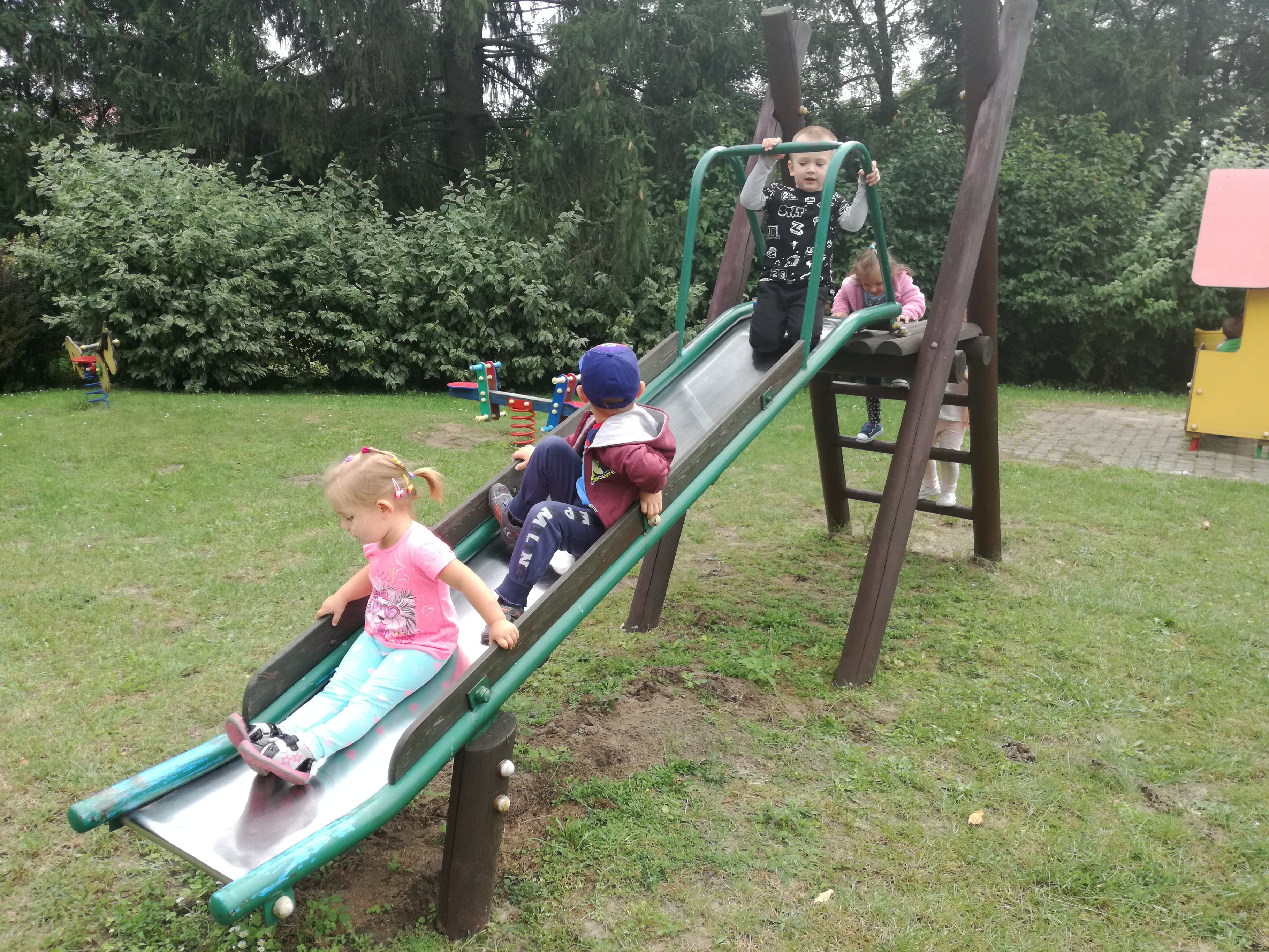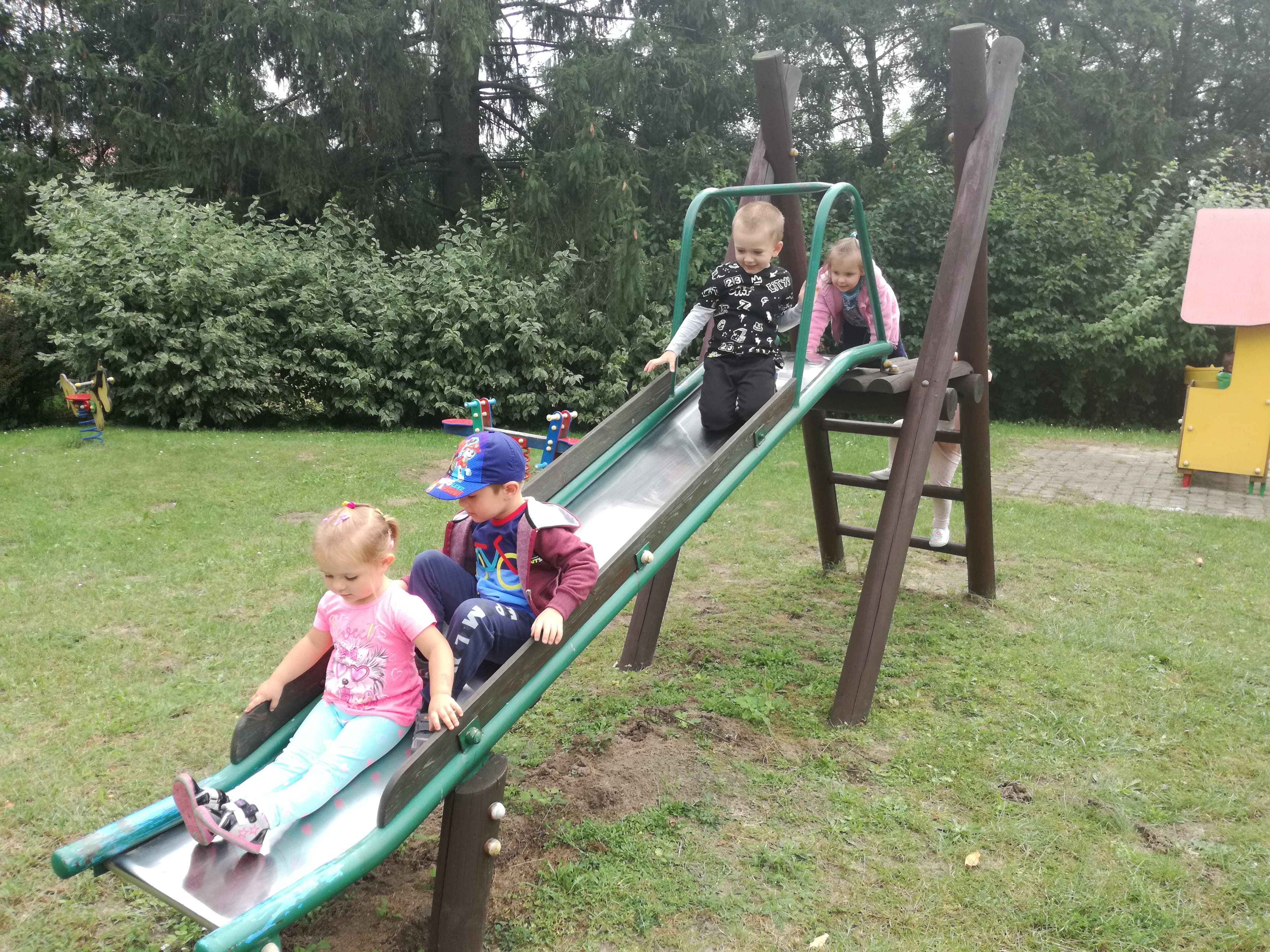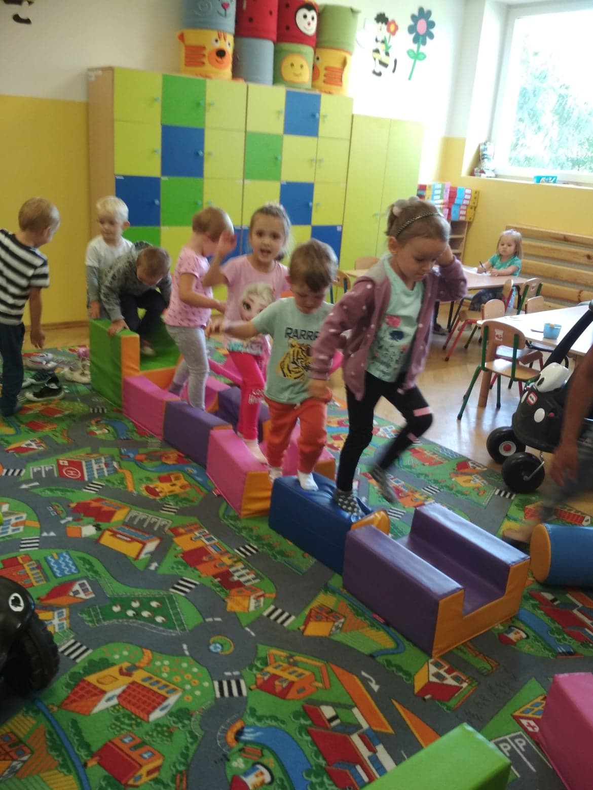 Minął już tydzień, odkąd rozpoczęliśmy wspólną zabawę i naukę w oddziale dzieci 3 - 4 letnich. Dzieci uśmiechnięte, szczęśliwe, zadowolone. Z ogromną ciekawością poznają swoje otoczenie, świat w którym żyją, to co w nim się dzieje. Bardzo lubią śpiewać i tańczyć, wykonywać prace plastyczne, budować przeróżne budowle podczas zabaw konstrukcyjnych. Wiele radości sprawiają im zabawy na placu przedszkolnym oraz spacery po najbliżej okolicy.