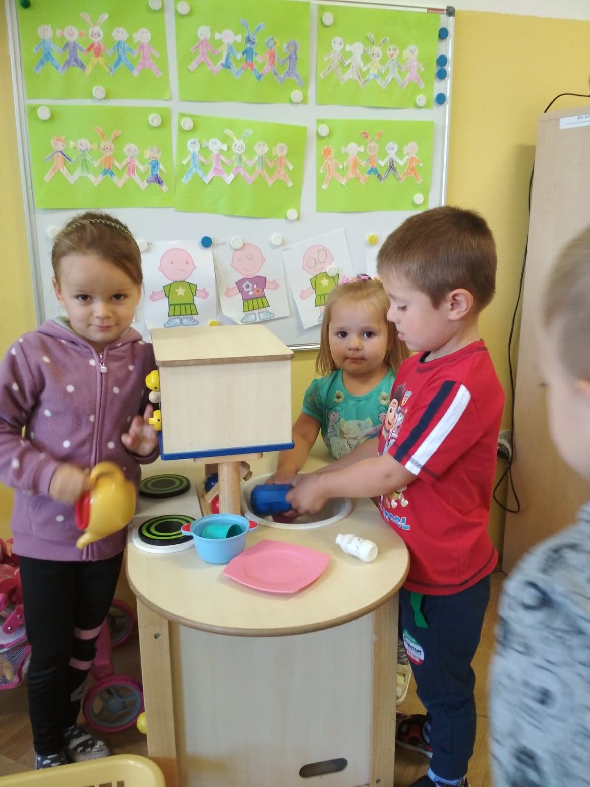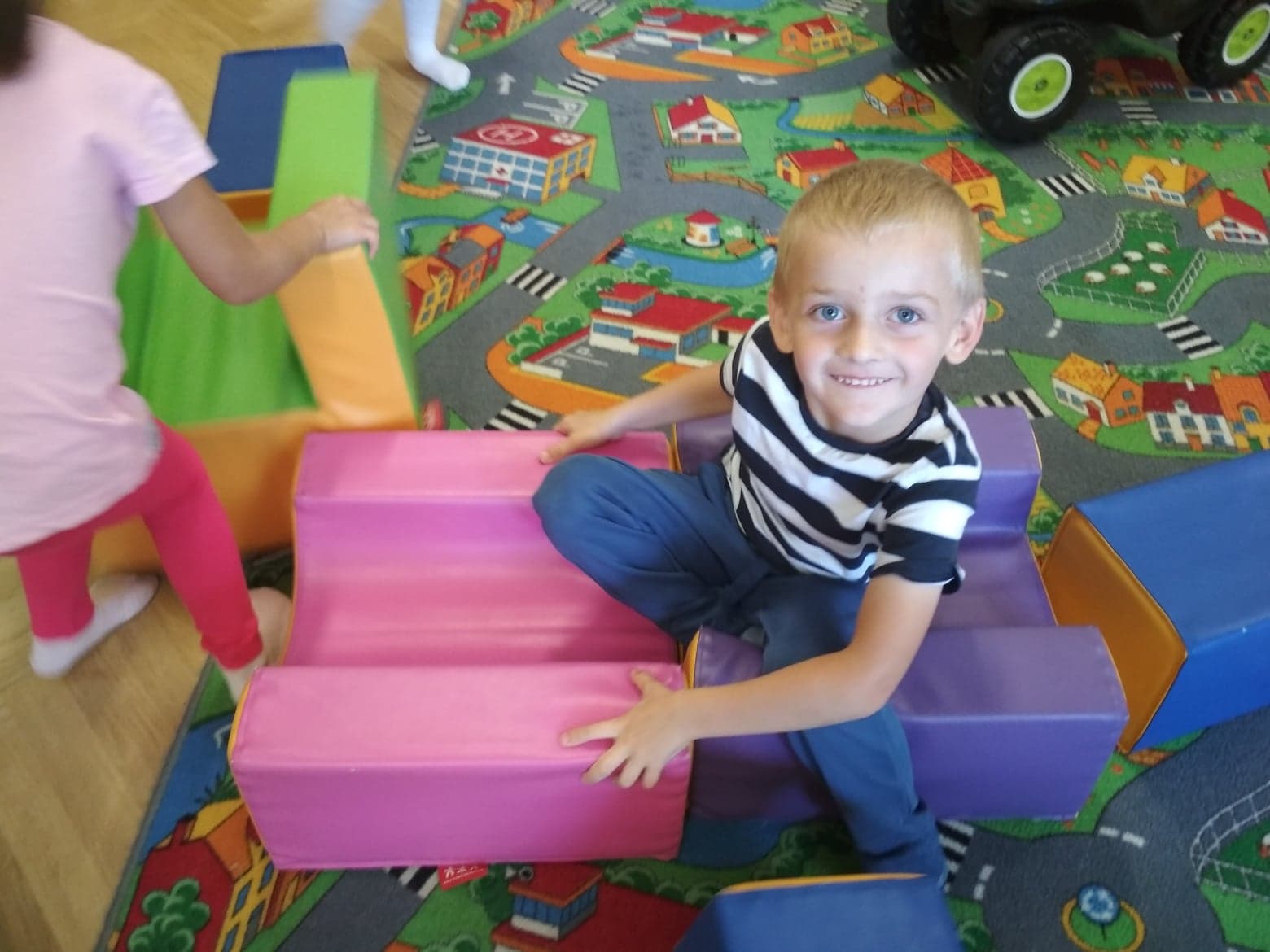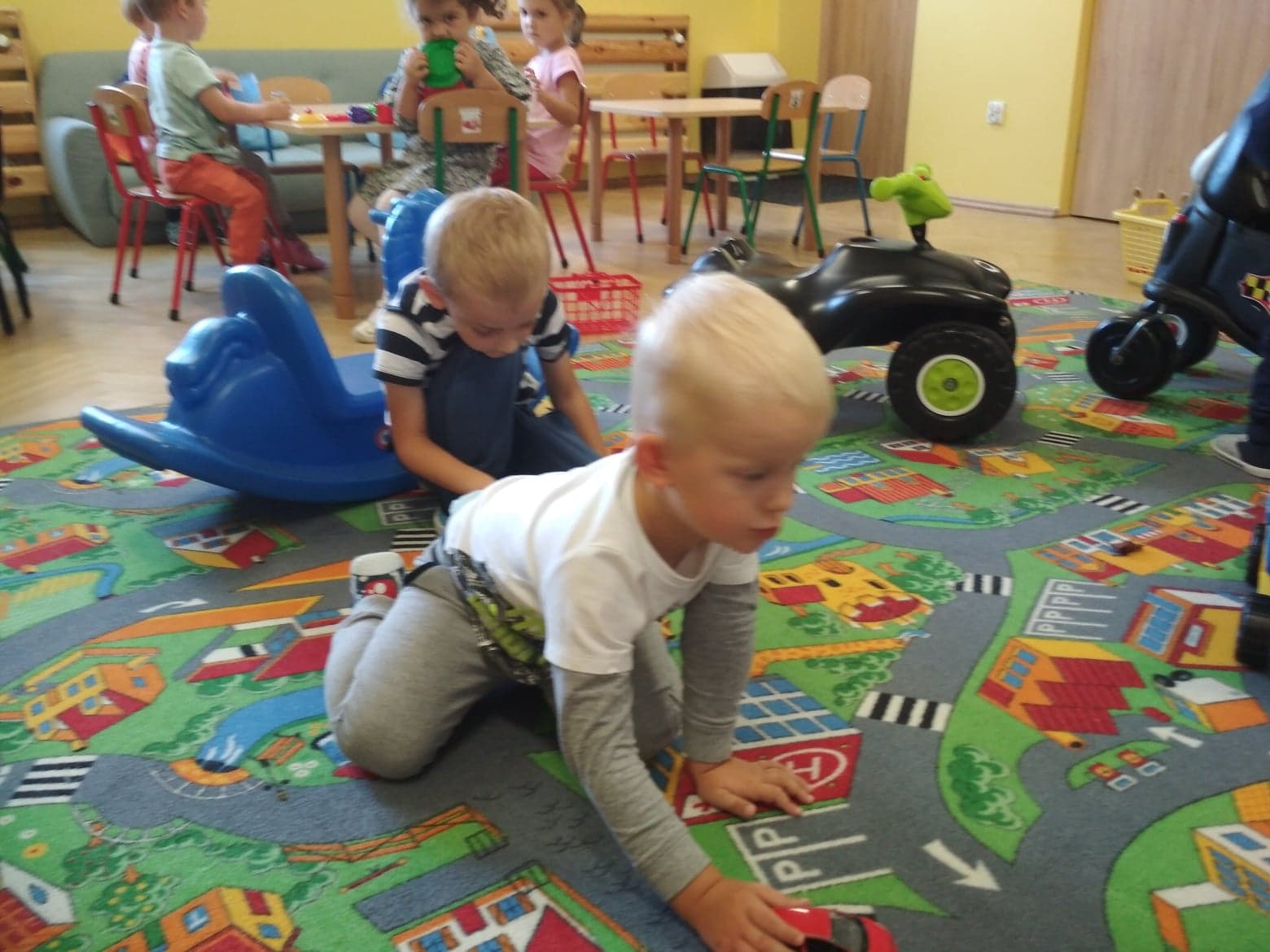 Minął już tydzień, odkąd rozpoczęliśmy wspólną zabawę i naukę w oddziale dzieci 3 - 4 letnich. Dzieci uśmiechnięte, szczęśliwe, zadowolone. Z ogromną ciekawością poznają swoje otoczenie, świat w którym żyją, to co w nim się dzieje. Bardzo lubią śpiewać i tańczyć, wykonywać prace plastyczne, budować przeróżne budowle podczas zabaw konstrukcyjnych. Wiele radości sprawiają im zabawy na placu przedszkolnym oraz spacery po najbliżej okolicy.