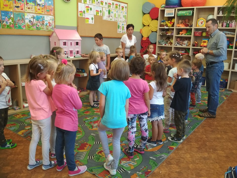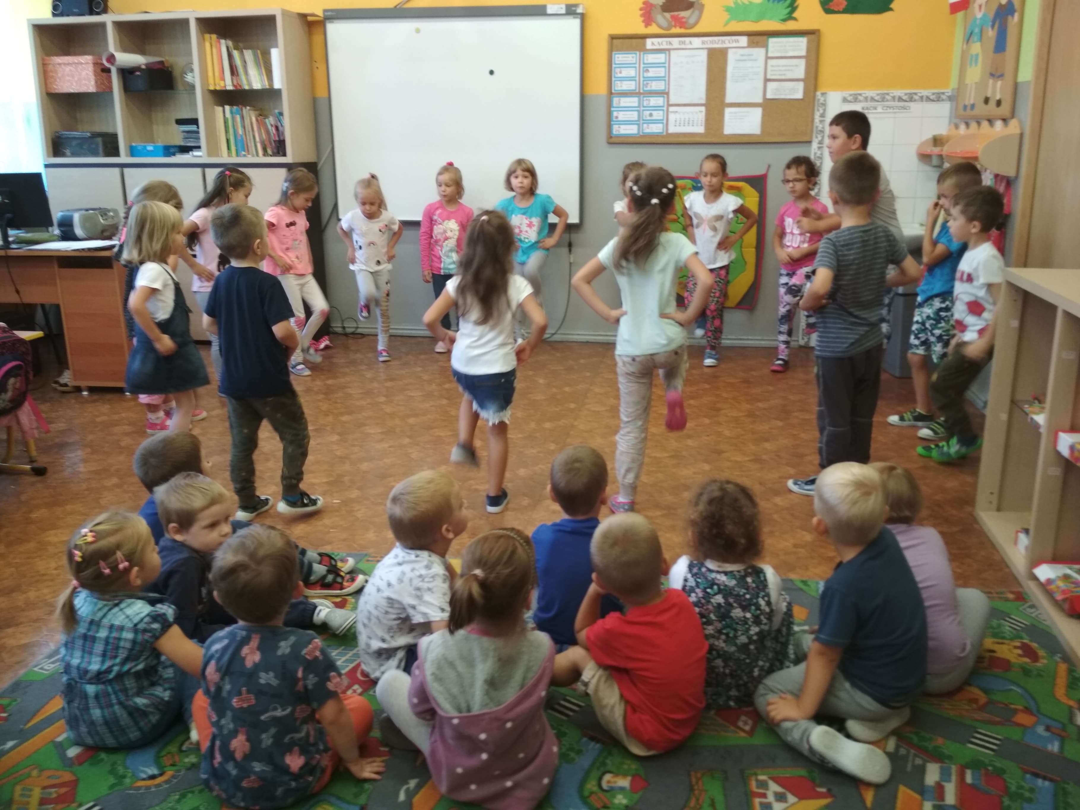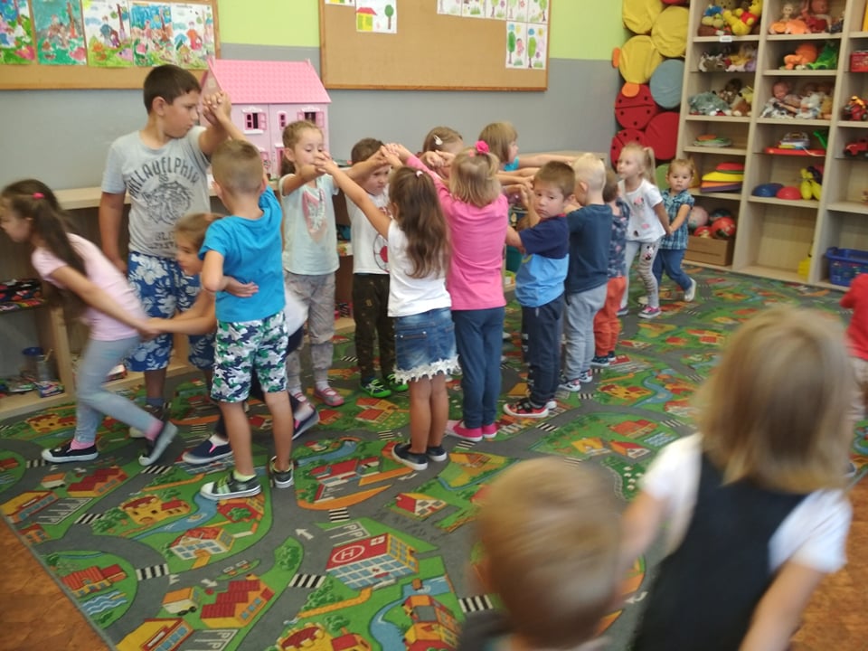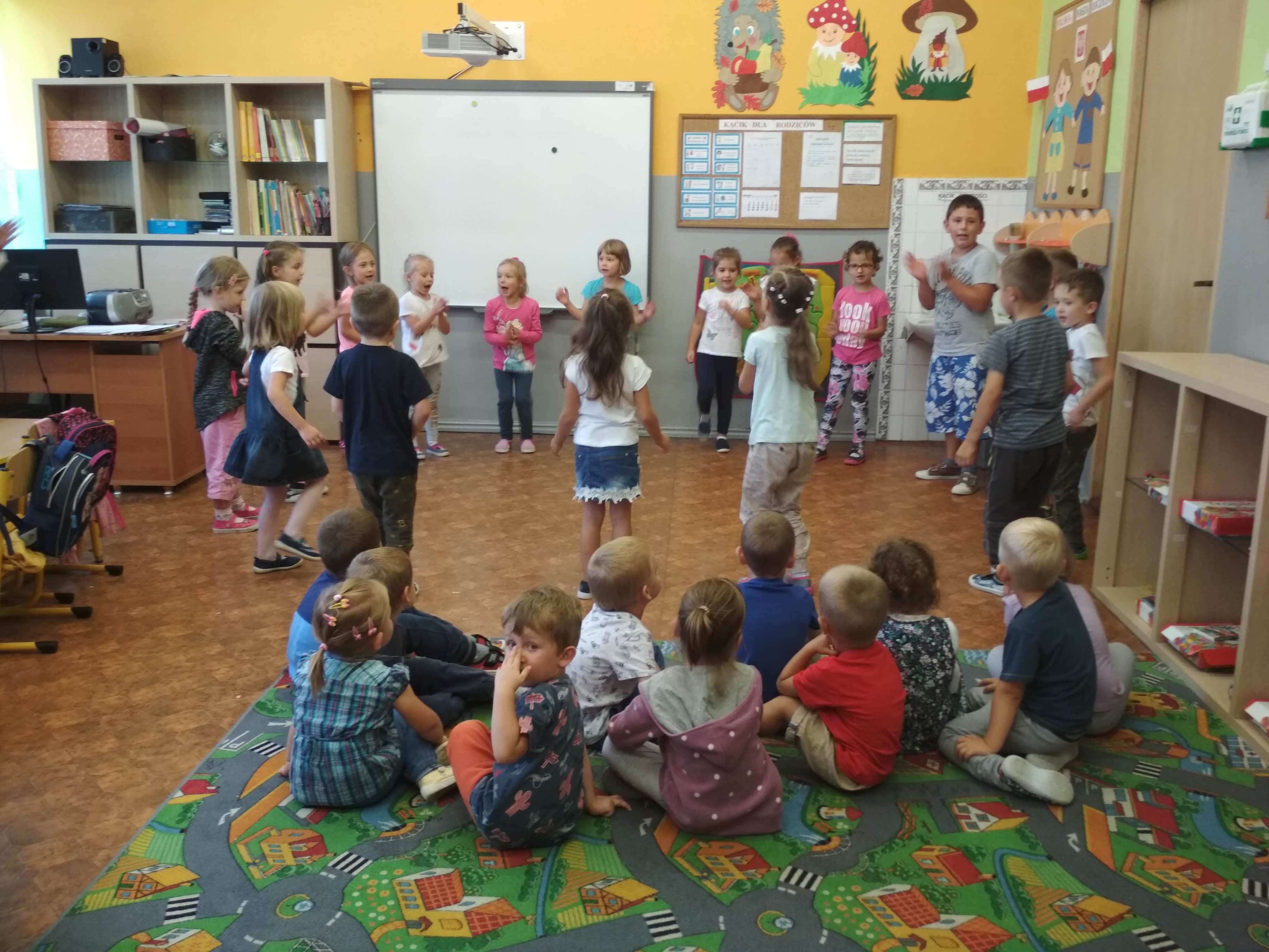 Z tej okazji dzieci z naszego przedszkola świętowały swoje święto. W tym roku dzieci z oddziału 5-6-latków zaprosiły swoich młodszych kolegów z grupy 3-4-latków na wspólne gry i zabawy. Pierwszym punktem imprezy była nauka hymnu przedszkolaka, dzieci z wielkim zaangażowaniem uczyły się nowej piosenki. Następnie miała miejsce prezentacja wierszy, piosenek i zabaw dla drugiej grupy. Po występach odbyły się wspólne zabawy, mające na celu integrację dzieci z dwóch oddziałów. Na zakończenie pan dyrektor Stanisław Saj złożył dzieciom najlepsze życzenia z okazji ich święta.