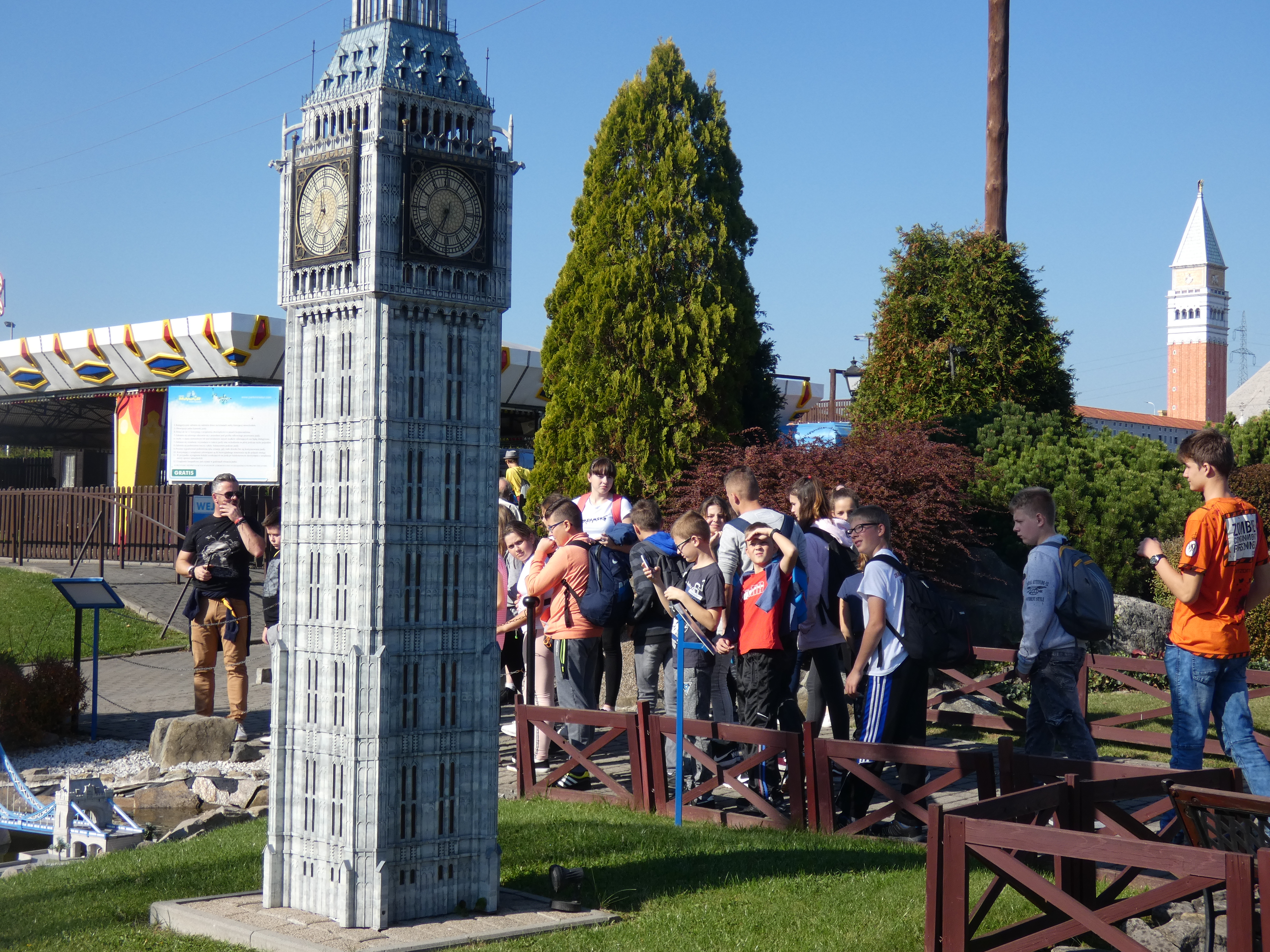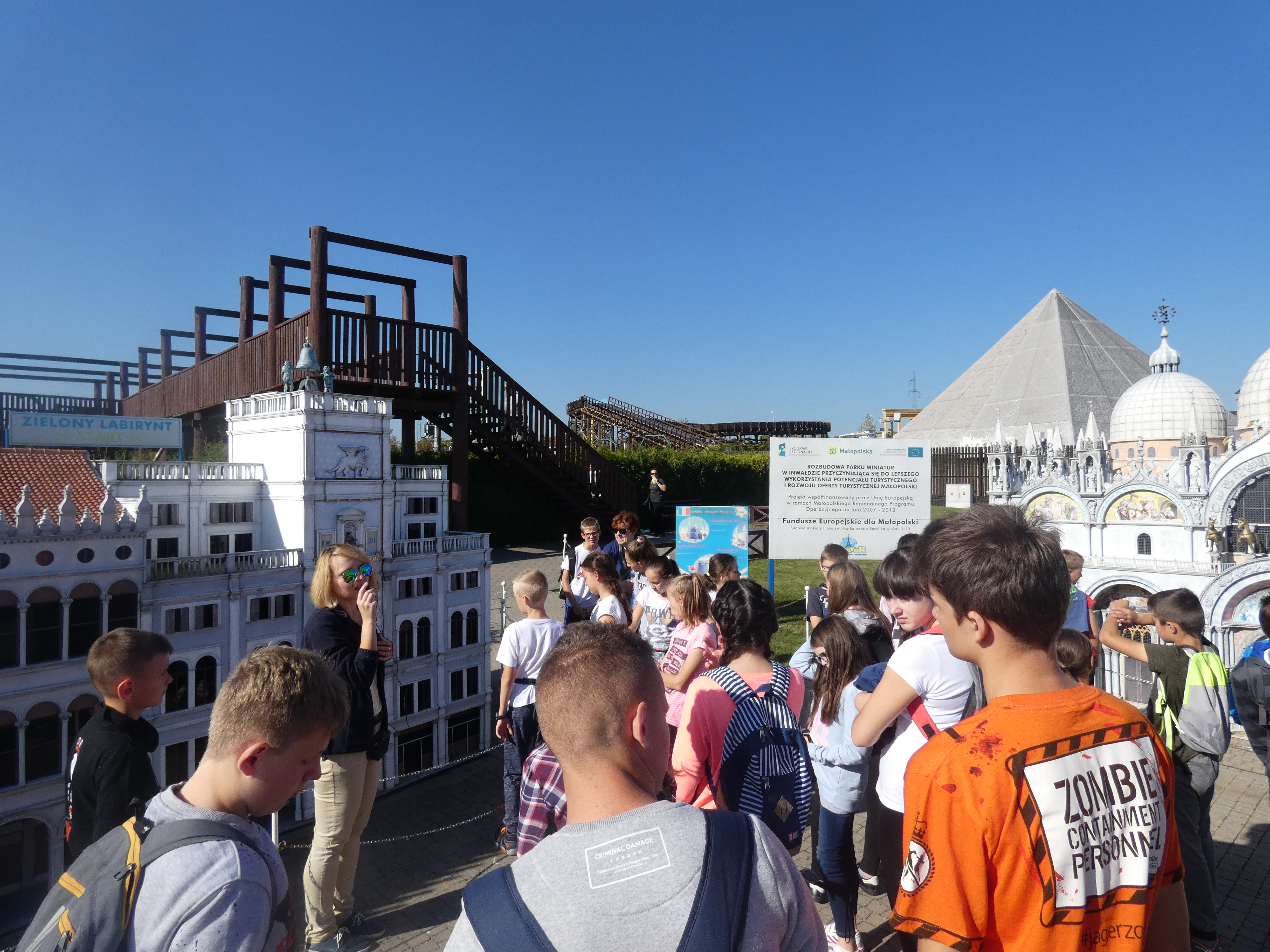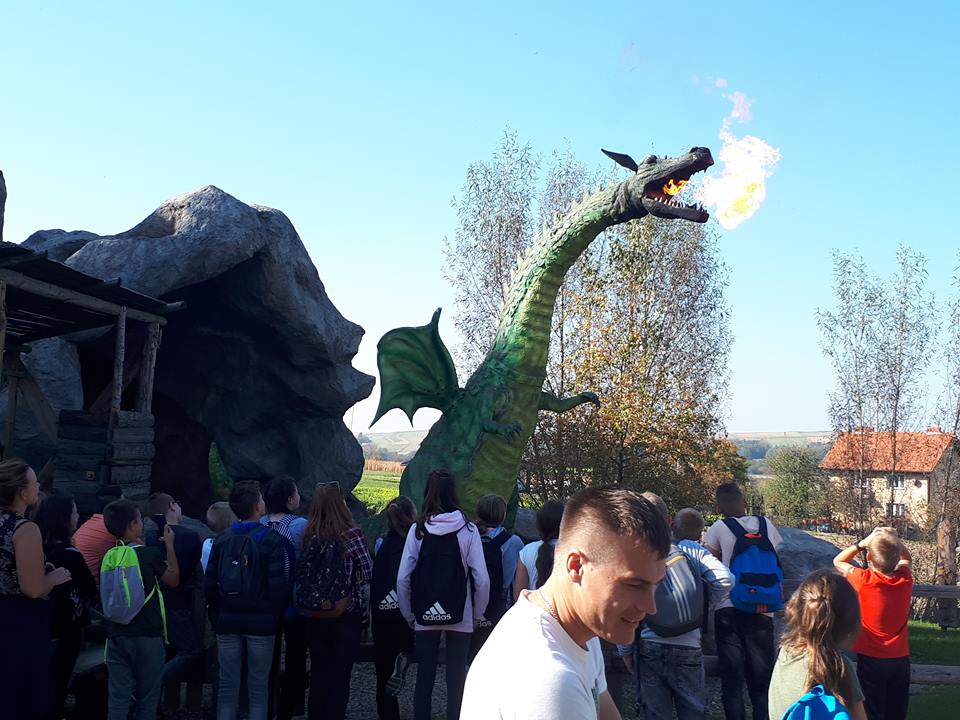 Drugi dzień naszej wycieczki rozpoczął się od zwiedzania rynku w Wadowicach – rodzinnym mieście Jana Pawła II, gdzie uczniowie mieli okazję skosztować pysznych papieskich kremówek oraz spacerować uliczkami, po których niegdyś chodził Papież. Kolejnym punktem wycieczki było zwiedzanie Parku Miniatur oraz Warowni Inwałd. W Parku Miniatur uczniowie podziwiali miniaturowe budowle charakterystyczne dla Polski oraz innych krajów i wzięli udział w projekcji w kinie 5D. Największym powodzeniem cieszył się jednak park rozrywki w którym można było korzystać z wielu atrakcji m.in. Pirat, Koło Młyńskie, Autoscooter, Zielony Labirynt, Tunel Strachu i wiele innych. Następnie cała grupa udała się kamienistą drogą na dziedziniec warowni kryjącej niesamowite miejsca – średniowieczną osadę, zbrojownię, salę tortur i ziejącego ogniem smoka. Po obiedzie, wróciliśmy do Wadowic, aby zwiedzić Muzeum Dom Rodzinny Ojca Świętego Jana Pawła II. To niezwykłe miejsce ukazało nam życie wielkiego papieża - Polaka na tle historii II Rzeczpospolitej, II wojny światowej i czasów PRL-u. Piękna jesienna pogoda oraz wyjątkowe miejsca, które odwiedziliśmy sprawiły, że wszyscy uczniowie wrócili do domu szczęśliwi i bogaci w nową wiedzę i przeżycia.