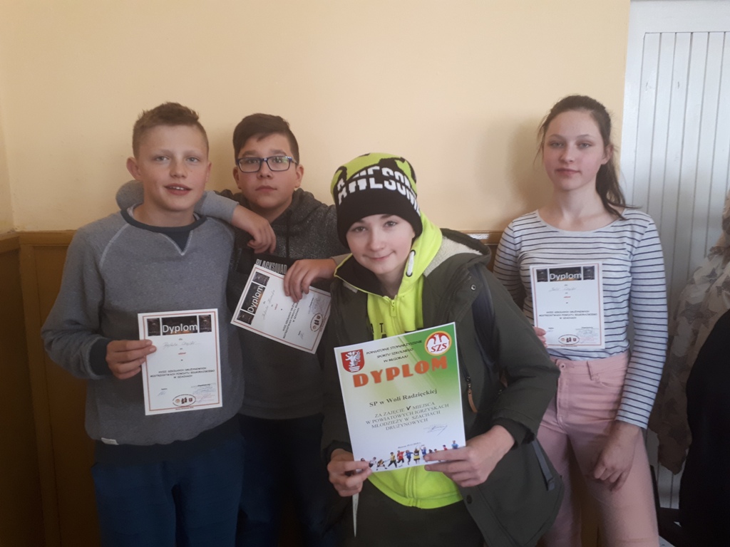 W czwartek 29 listopada w Gminnym Ośrodku Kultury Sportu i Rekreacji w Biszczy odbyły się XVIII SZKOLNE DRUŻYNYOWE MISTRZOSTWA POWIATU BIŁGORAJSKIEGO W SZACHACH. Celem imprezy było wyłonienie DRUŻYNOWYCH MISTRZÓW POWIATU BIŁGORAJSKIEGO popularyzacja szachów młodzieżowych oraz doskonalenie poziomu gry z możliwością sprawdzenia i konfrontacji własnych umiejętności na szczeblu powiatowym. Drużyna z naszej szkoły, reprezentująca gminę Frampol w składzie Czajka Rafał, Czajka Julia, Kozak Jakub oraz Liwak Bartosz, po rozegraniu turnieju na dystansie 7 rund, ostatecznie zajęła 5 miejsce. Rozgrywali oni turniej w kategorii IGRZYSKA MŁODZIEŻY SZKOLNEJ, rywalizując z uczniami klas VII-VIII i III gimnazjum. Dla każdego uczestnika organizatorzy przewidzieli dyplomy oraz poczęstunek. Natomiast 30 listopada w Janowie Lubelskim w otwartym indywidualnym turnieju szachowym, Julia Czajka zajęła znakomite 2 miejsce. Serdecznie gratulujemy i życzymy dalszych sukcesów.