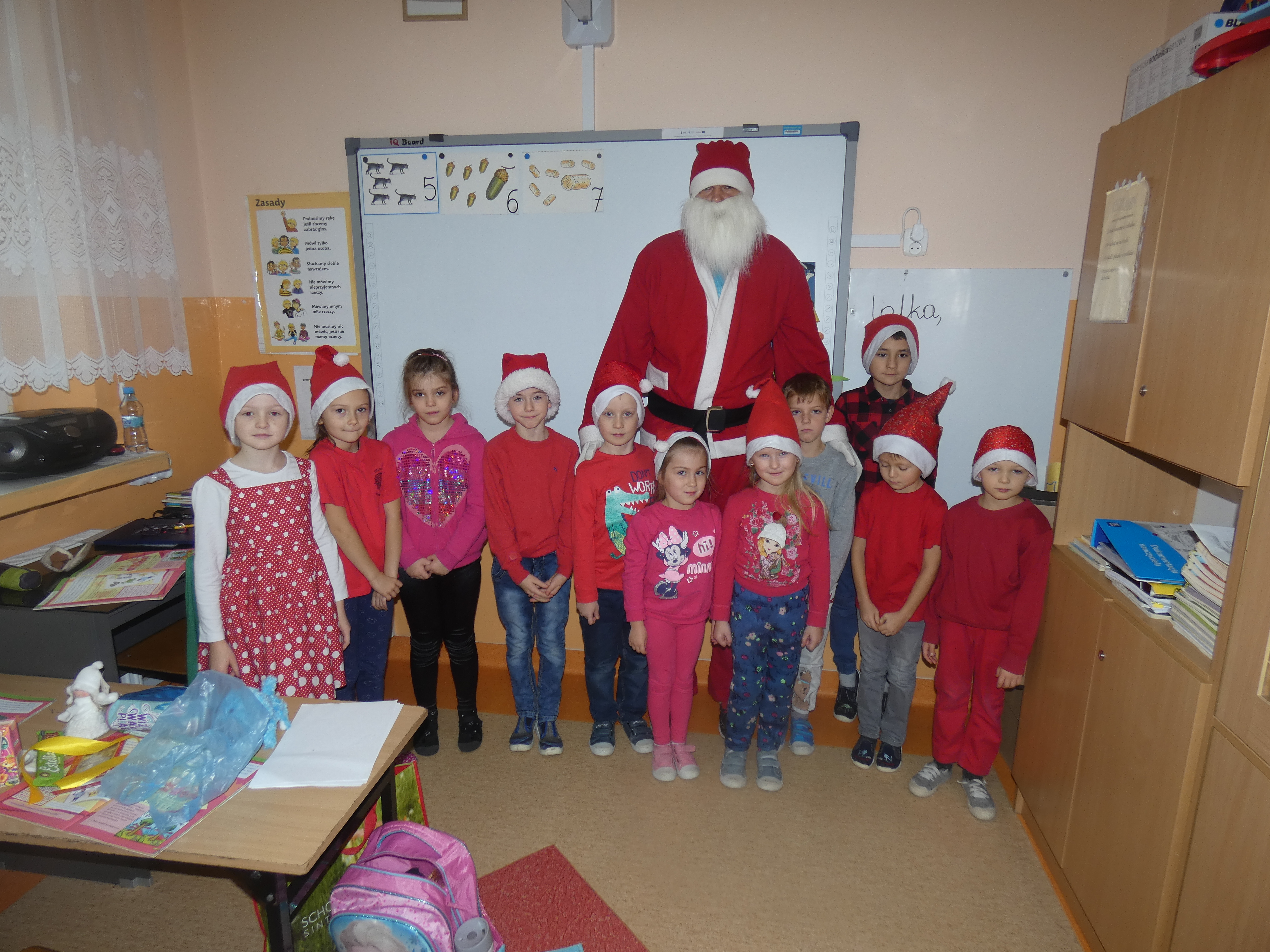 6 grudnia do naszej szkoły zawitał Mikołaj. Dzieci z oddziałów przedszkolnych oraz klasy I i II już od samego rana oczekiwały miłego gościa, dlatego też z ogromną radością przywitały Mikołaja i zaśpiewały mu na powitanie piosenkę. Mikołaj porozmawiał z dziećmi, zapytał czy były grzeczne, a następnie podarował każdemu z nich prezent. Na koniec spotkania dzieci zrobiły sobie pamiątkowe zdjęcie z Mikołajem i zaprosiły go na przyszły rok, obiecały też, że będą bardzo grzeczne.