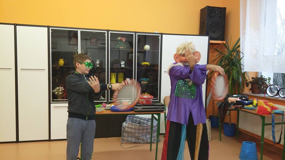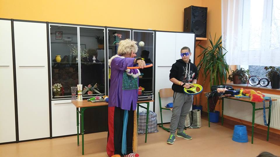 10 grudnia zawitał do naszej szkoły dobrze nam znany clown Walduś, który zaprezentował swój program pt. ,,Grzeczność i kultura osobista to jest sprawa oczywista.'' Spotkanie wypełnione było dynamicznymi scenkami, sztuczkami, eksperymentami oraz ulubioną muzyką. Prezentowane przez clowna zabawy cyrkowe rozwijały koordynację ruchową, poczucie rytmu, wyobraźnię oraz kreatywne myślenie. Walduś zademonstrował wiele różnorodnych trików, wesołych figli oraz ciekawych zabawek zręcznościowych. Uczniowie ochotnicy z wielkim zaangażowaniem wcielali się w role, doskonale przemyślane przez Waldusia. Odważnie podejmowali się wykonania powierzonych zadań dostosowanych do ich możliwości. W nagrodę otrzymali słodycze i słowną pochwałę. Wszyscy bawili się doskonale i miło spędzili czas.