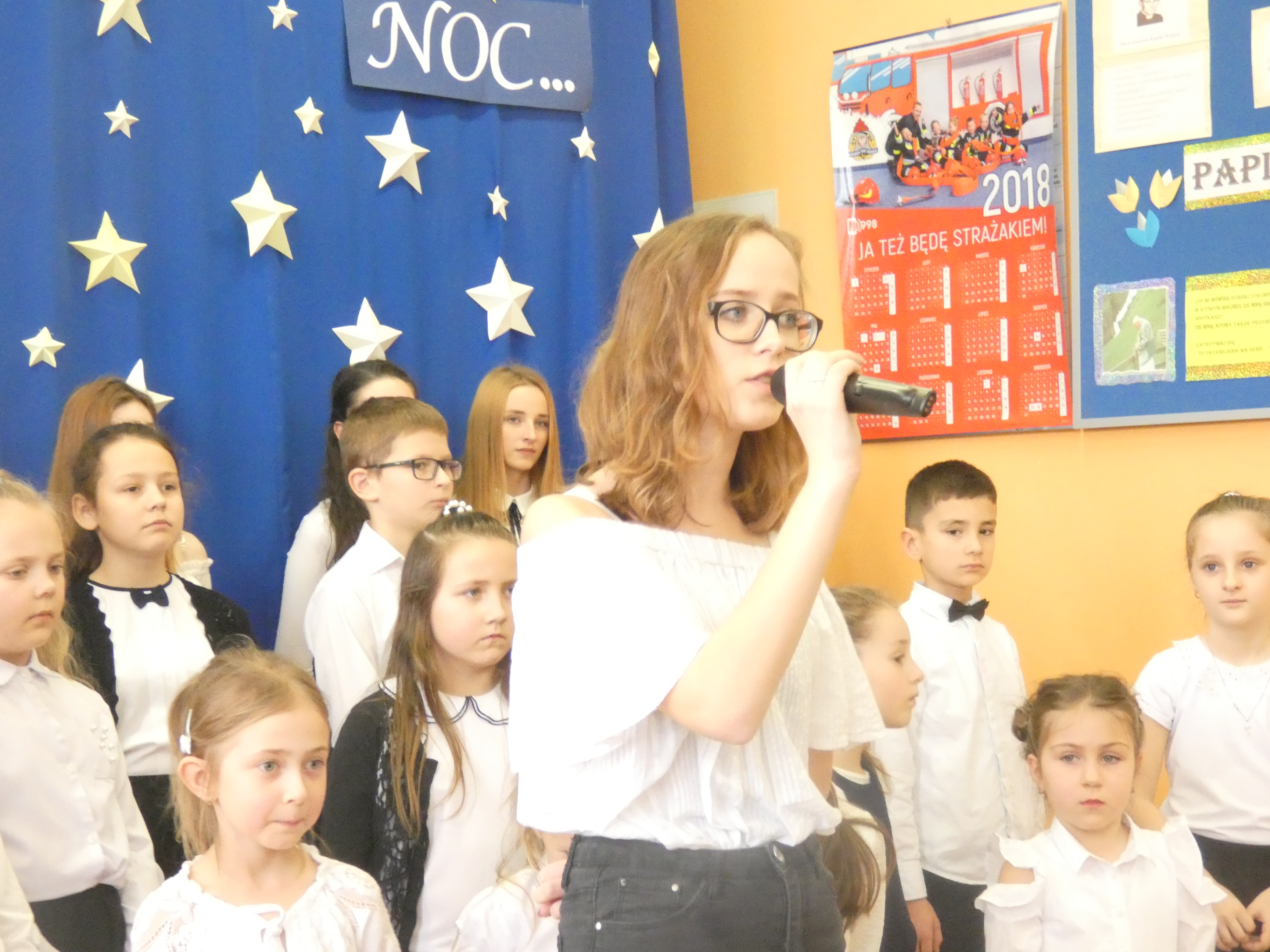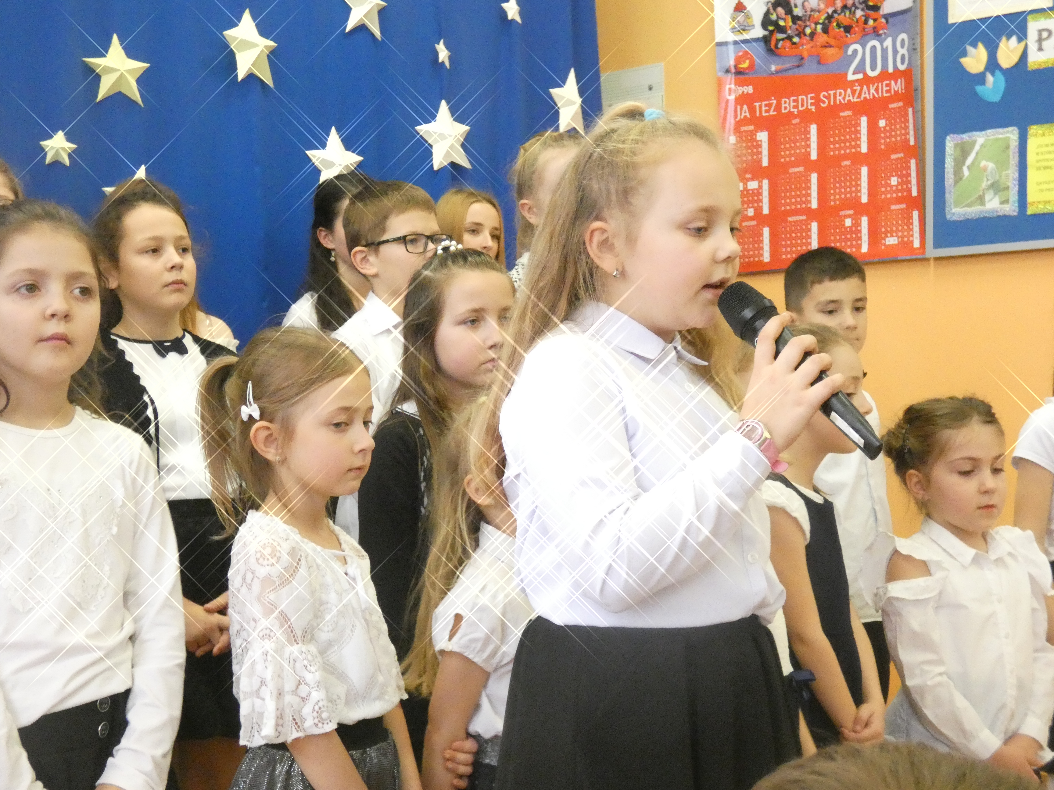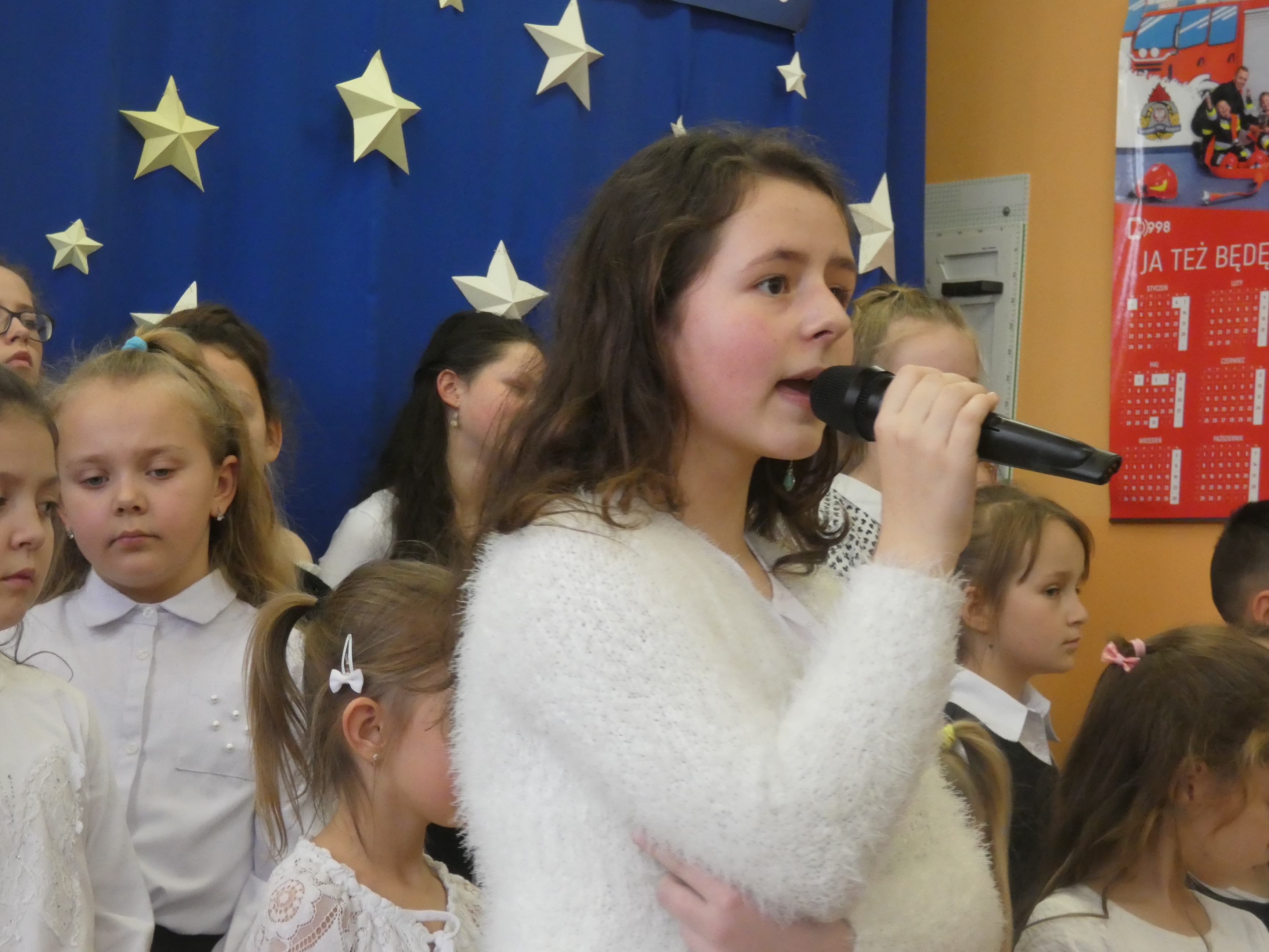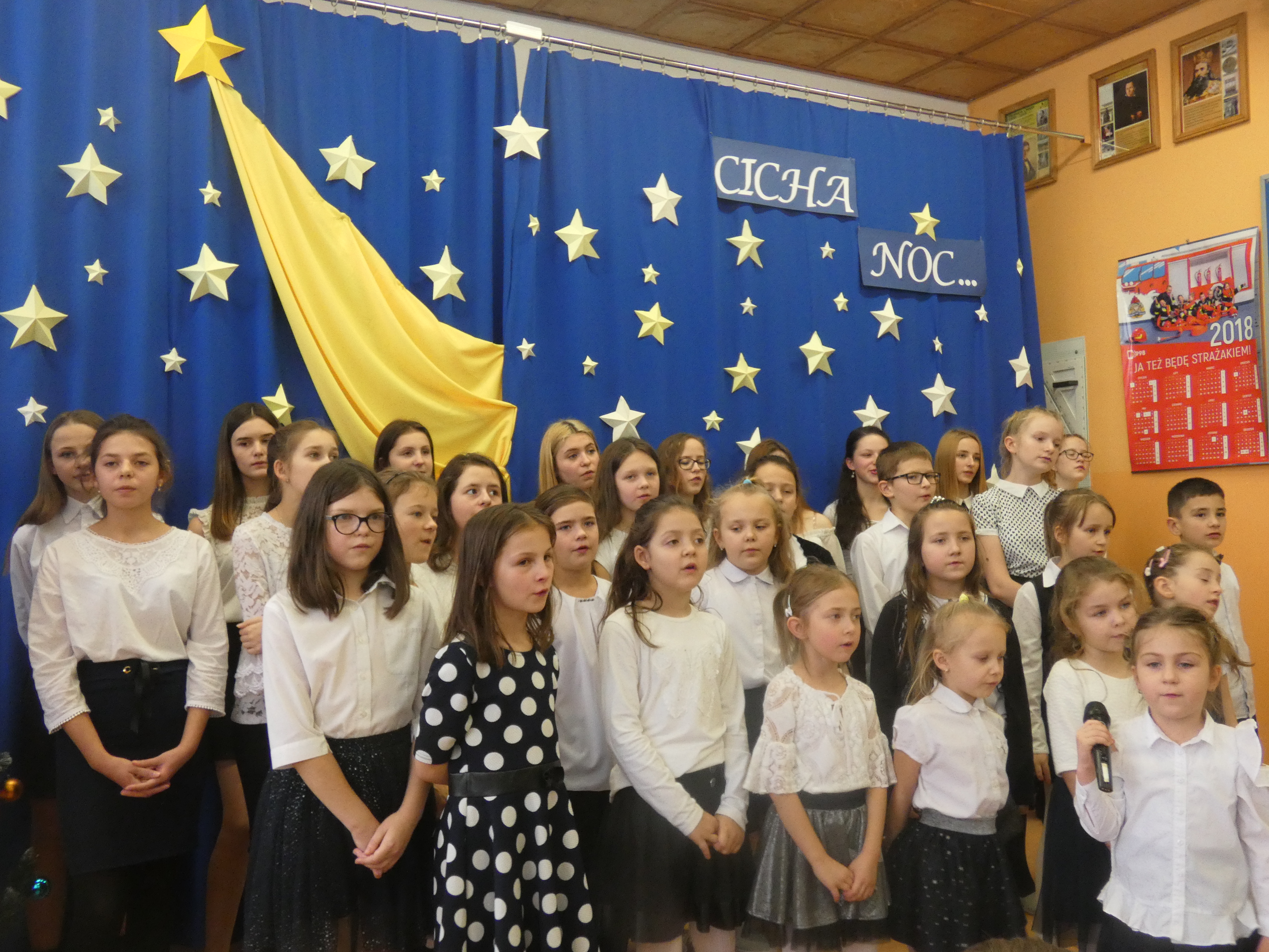 21 grudnia odbyło się w naszej szkole coroczne spotkanie wigilijne poprzedzające Święta Bożego Narodzenia. Była to odpowiednia chwila, aby podzielić się opłatkiem, a przy okazji złożyć sobie świąteczne życzenia. Uroczystości szkolne rozpoczęły się od spotkań klasowych. Następnie wszyscy uczniowie wraz z zaproszonymi gośćmi, nauczycielami i pracownikami obsługi zgromadzili się na uroczystości szkolnej w klasie VIII. Wśród zaproszonych gości byli: proboszcz parafii w Radzięcinie - ks. Adam Czupich wraz z wikarym ks. Krzysztofem Paluchem, przedstawiciele Rady Rodziców z przewodniczącą - panią Teodorą Rapa i jej zastępcą - panią Barbarą Łata. Przybył także emerytowany nauczyciel - pan Feliks Kuna. Głównym punktem uroczystość szkolnej był koncert kolęd w wykonaniu chórku szkolnego i jego solistów. Po raz pierwszy jako solistki wystąpiły uczennice kl."O" - Marcelina Brzozowska, Lena Leśniewska i Weronika Bielak. W dalszej części spotkania wigilijnego życzenia świąteczne do zebranych skierowali: Pan Dyrektor, Ksiądz Proboszcz oraz Przewodnicząca Rady Rodziców. Na zakończenie uroczystości Pan Dyrektor symbolicznie podzielił się opłatkiem z zaproszonymi gośćmi oraz Przewodniczącym Samorządu Uczniowskiego, a następnie złożył życzenie imieninowe księdzu Adamowi.