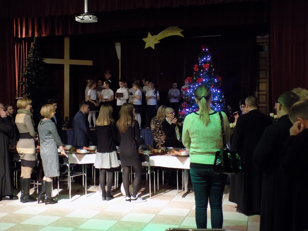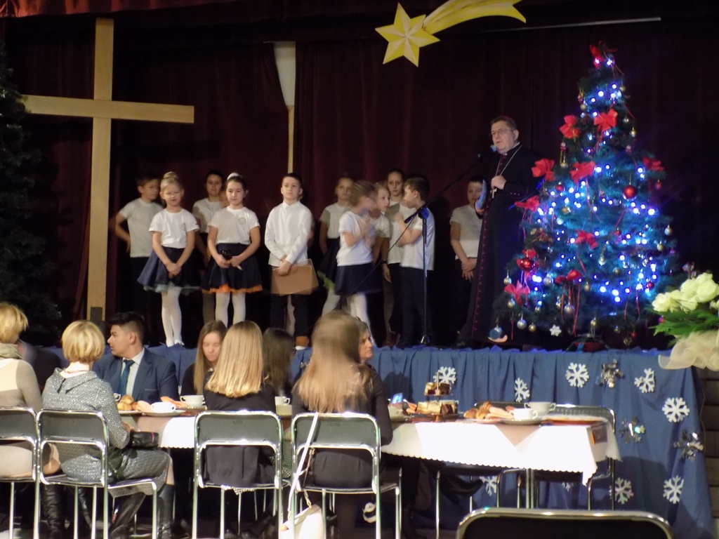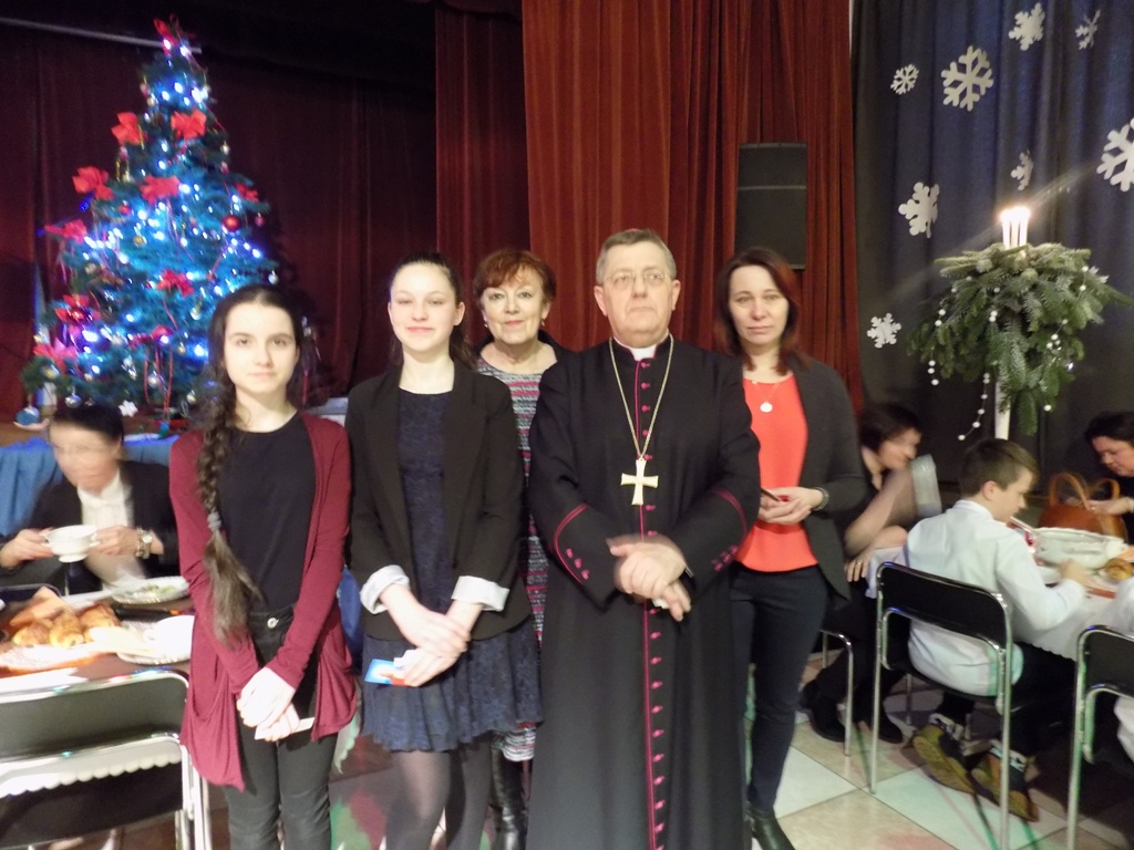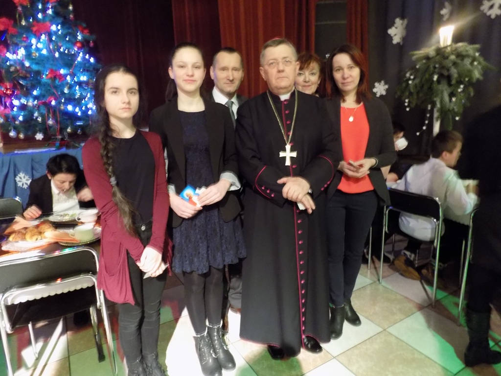 16 stycznia delegacja dwóch uczennic oraz Przewodniczącej Rady Rodziców wraz z dyrektorem szkoły uczestniczyła w spotkaniu opłatkowym Rodziny Szkół im. Jana Pawła II diecezji zamojsko-lubaczowskiej w Zamościu. Rodzina Szkół im. Jana Pawła II w naszej diecezji funkcjonuje od 2007 roku. Zrzesza 37 szkół na terenie naszej diecezji. Spotkanie rozpoczęło się o godz.10.00 Mszą św. sprawowaną przez JE ks. bp. Mariusza Leszczyńskiego w kościele pw. św. Michała Archanioła w Zamościu. Następnie zebrani goście udali się do Centrum Pastoralnego przy parafii św. Michała i wysłuchali kolęd w wykonaniu uczniów Szkoły Podstawowej nr 3 w Zamościu. Po występie wszyscy podzielili się opłatkiem i złożyli sobie życzenia. Ostatnią część spotkania stanowił smaczny poczęstunek.