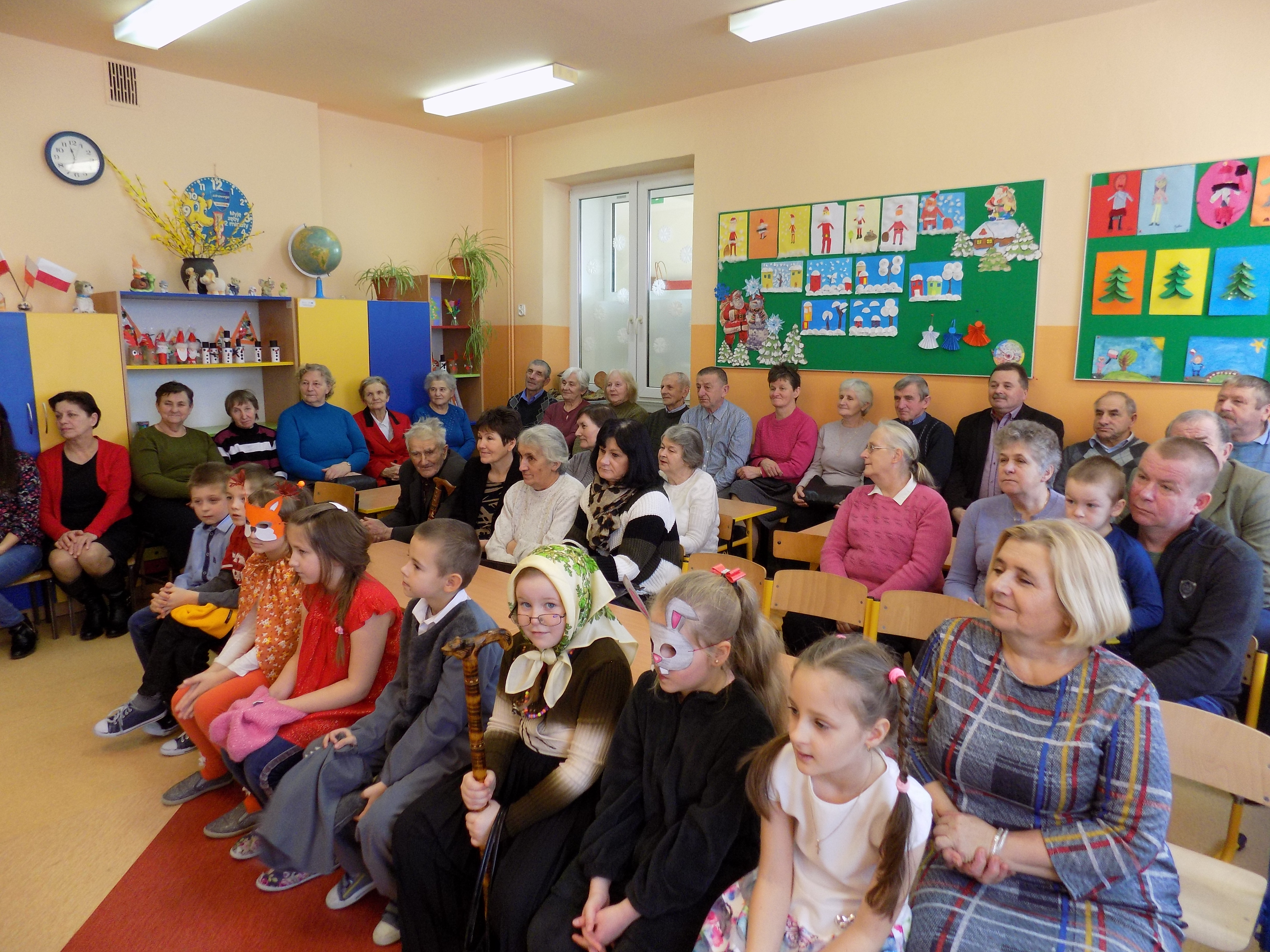 Święto Babci i Dziadka to dzień niezwykły, nie tylko dla dzieci, ale i dla babć i dziadków. W Szkole Podstawowej w Woli Radzięckiej zapraszanie babć i dziadków na uroczystość z okazji ich święta jest tradycją na stałe wpisaną w szkolny repertuar. 22 stycznia zaproszeni goście, babcie i dziadkowie uczniów klasy I i II, licznie przybyli w szkolne mury naszej szkoły, gdzie wypatrywały ich podekscytowane i roziskrzone oczy wnucząt. Dyrektor szkoły – Pan Stanisław Saj nie szczędząc ciepłych słów, powitał gości i życzył im wielu szczęśliwych lat w zdrowiu i pogodzie ducha. Następnie uczniowie zaprezentowali przygotowany pod kierunkiem wychowawczyń program artystyczny i wręczyli własnoręcznie wykonane laurki i kwiatki. Uroczystość zwieńczył słodki poczęstunek, przygotowany przez niezawodnych rodziców, podczas którego nie brakowało okazji do rozmów i wspomnień. Dziękujemy wszystkim Babciom i Dziadkom za ich bezgraniczną miłość, dobroć, ciepło i jeszcze raz życzymy Im dużo, dużo zdrowia oraz długich lat życia.