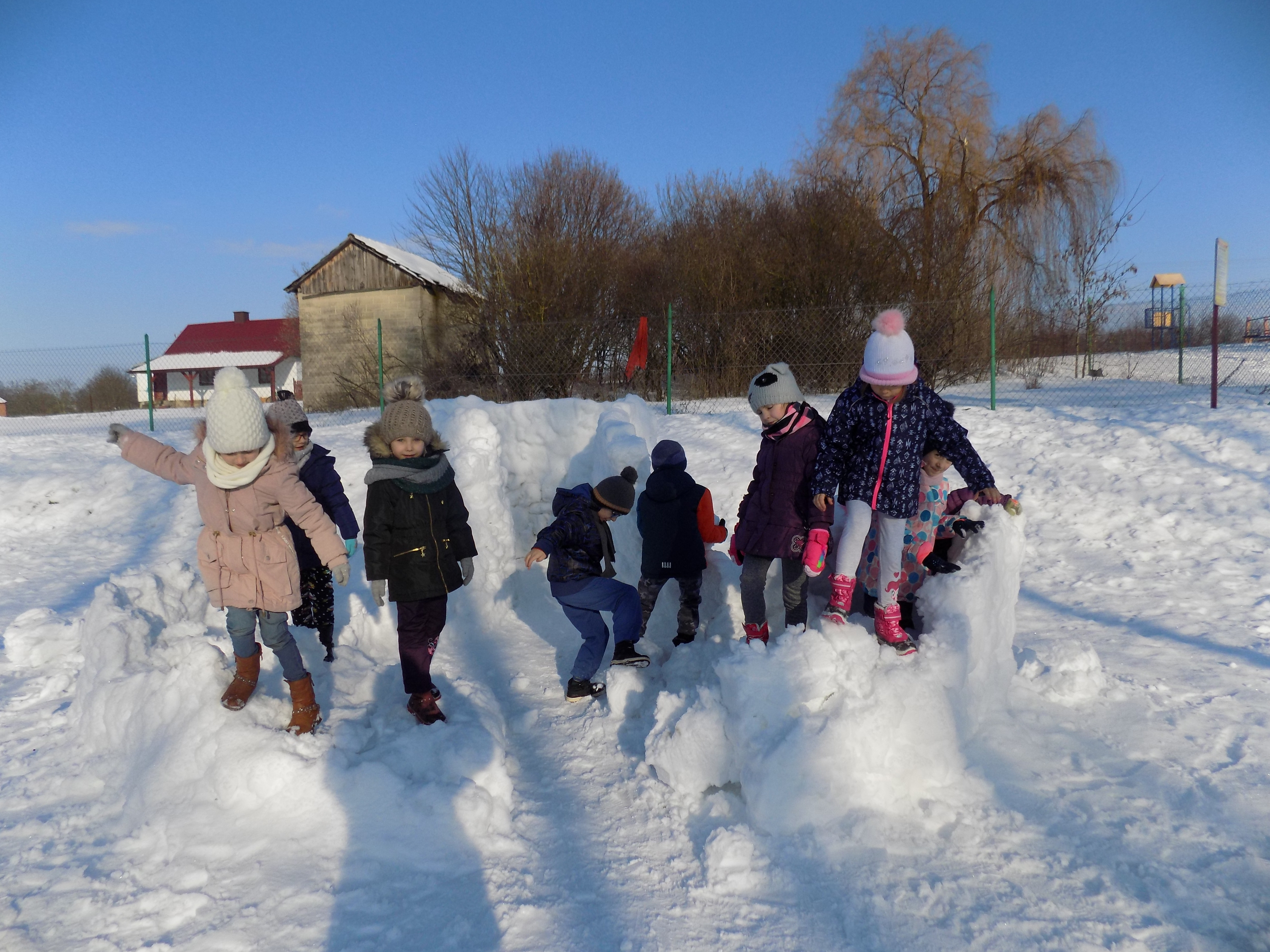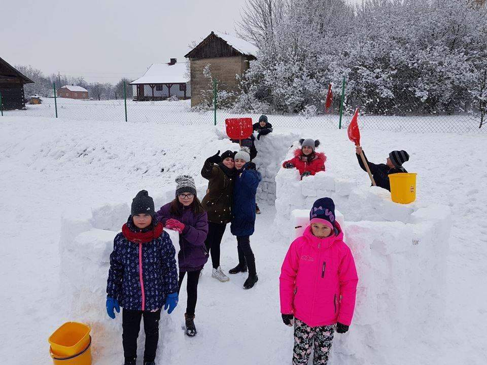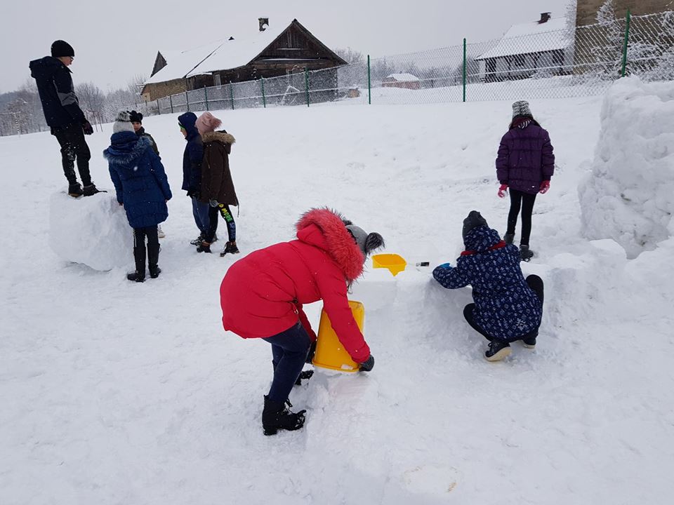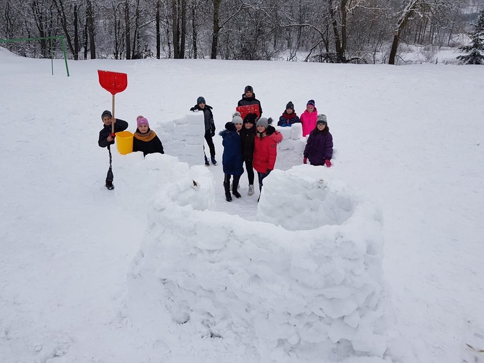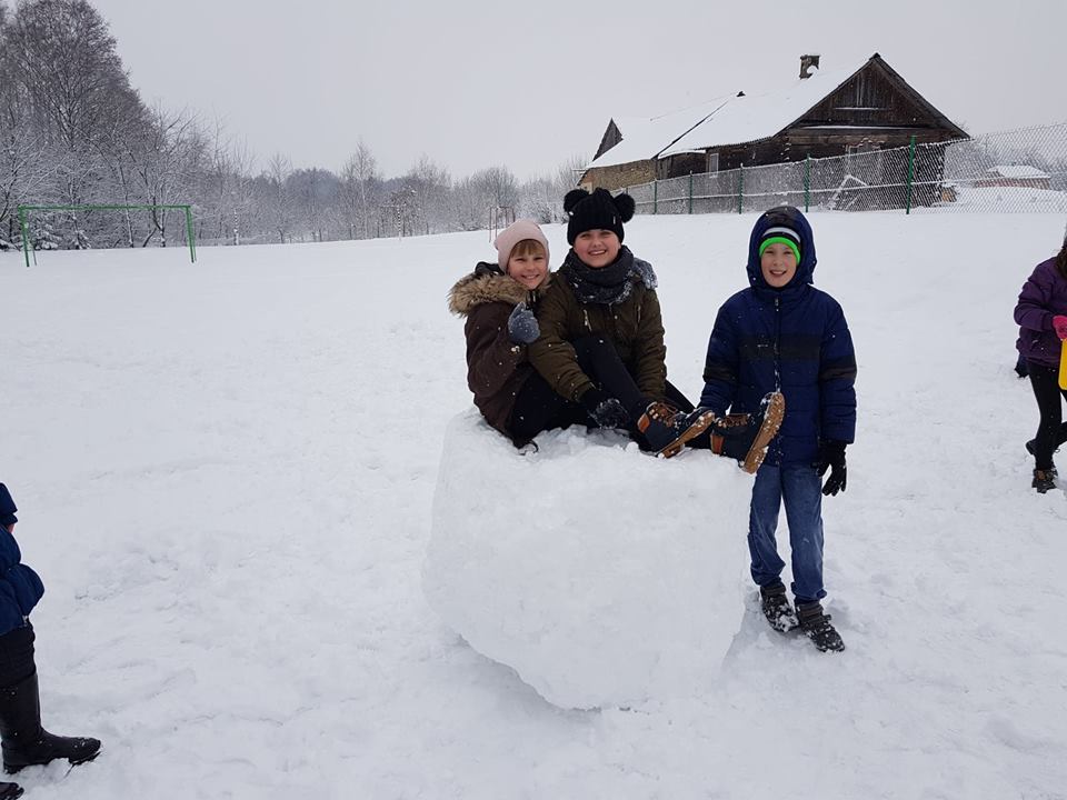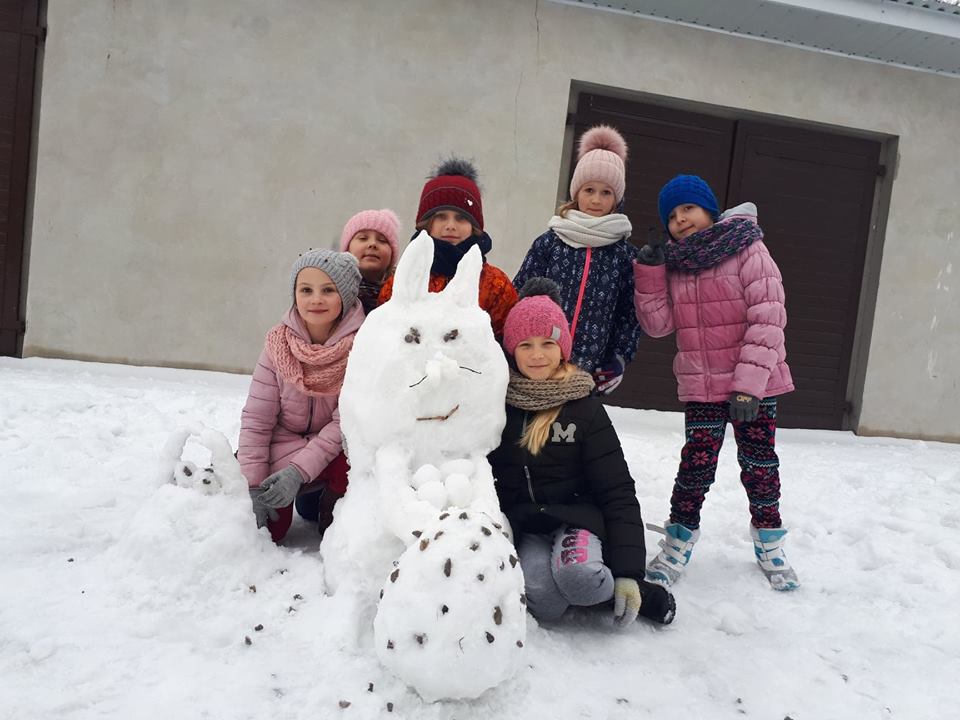 Zima w tym roku nie żałuje nam śniegu. Gdy za oknem zimowa aura i śnieg, to dobra okazja aby zażywać ruchu na świeżym powietrzu i przy tym hartować swój organizm. Dlatego też dzieci chętnie spędzają lekcje wychowania fizycznego na dworze i przy tym świetnie się bawią. Dużo satysfakcji daje im budowa śnieżnych figur i budowli, podczas której rozwijają swoją kreatywność i współpracę w zespole. Również dzieci z oddziału przedszkolnego chętnie spędzają czas na zabawach zimowych. Udeptywanie śladów, rysowanie na śniegu, robienie aniołków czy rzucanie śnieżkami to kilka pomysłów na to, jak spędzić z dzieckiem aktywnie czas na śniegu. Namawiamy wszystkie dzieci i ich rodziców do miłego wypoczynku na świeżym powietrzu. Nie siedźcie w domach gdy śnieg za oknem – korzystajcie z okazji do dobrej zabawy- druga taka dopiero za rok.