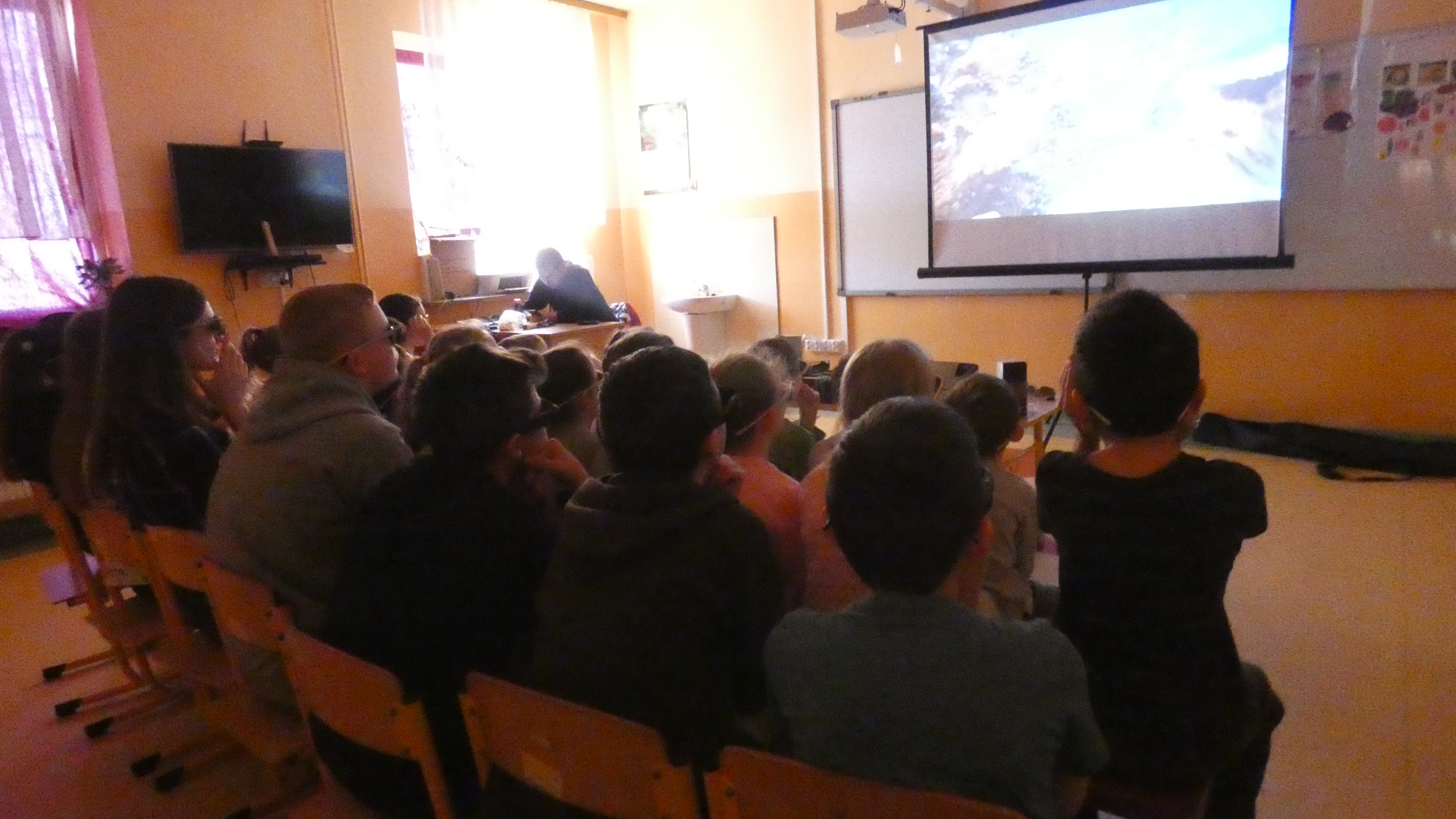 8 lutego w naszej szkole odbyła się projekcja filmu przyrodniczego 3D „Podwodny świat." Była to niesamowita podróż przez tajemniczy, głęboki, błękitny ocean. Uczniowie mogli przez niemal 60 minut podziwiać faunę i florę podwodnego świata. Film nakręcony w technice stereoskopowej 3D to zapierająca dech wyprawa w bezkresną morską otchłań. Była to przyjemna chwila relaksu, dzięki której wszyscy uczniowie poszerzyli swoją wiedzę przyrodniczą.