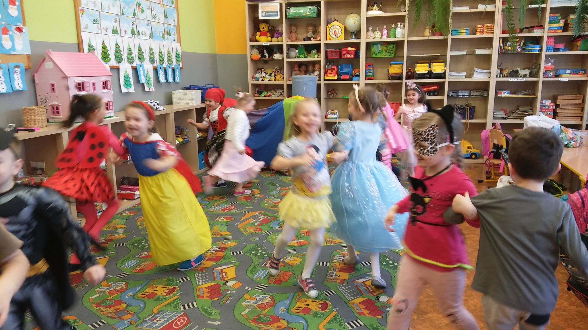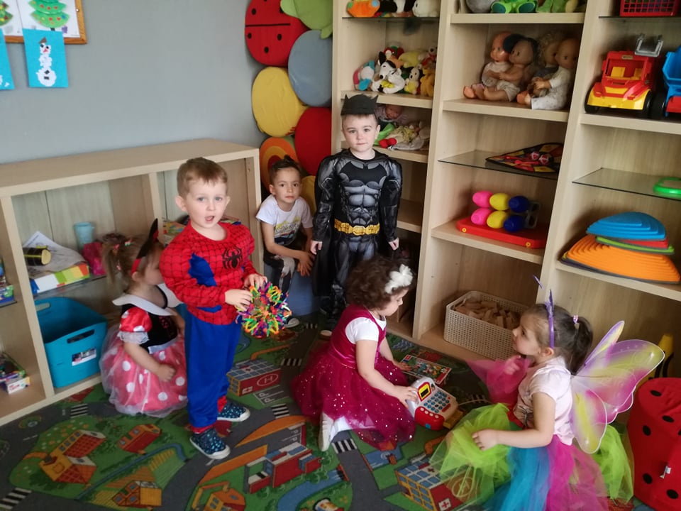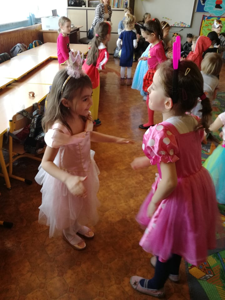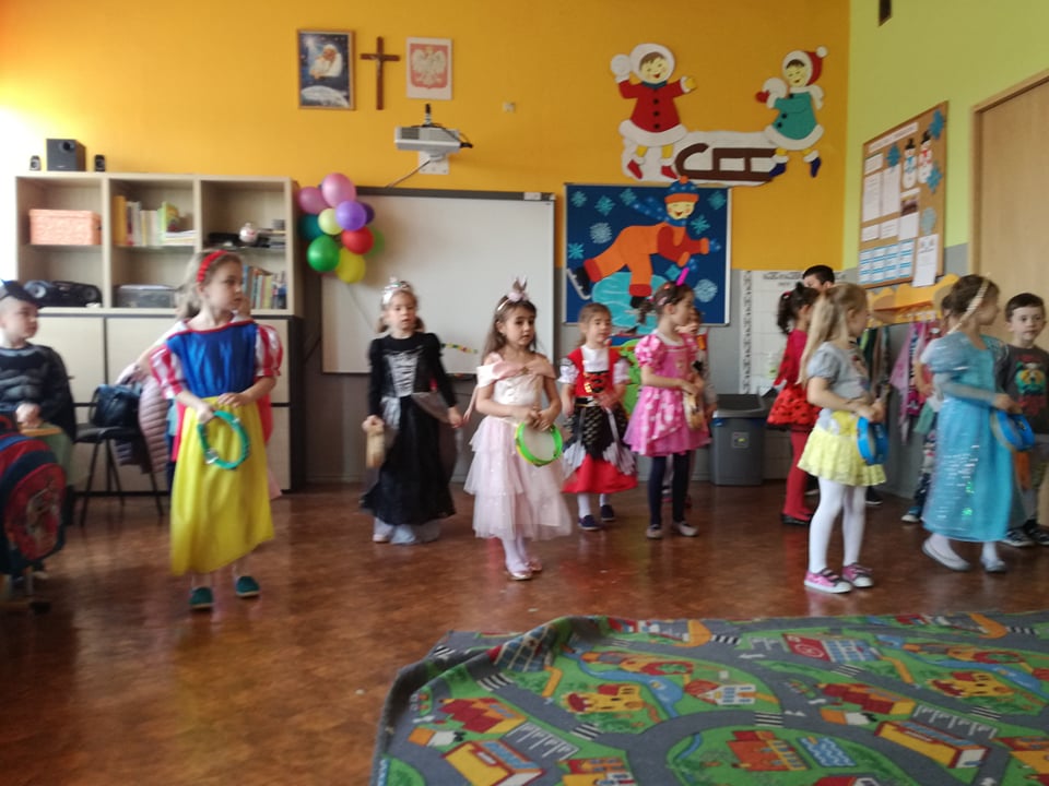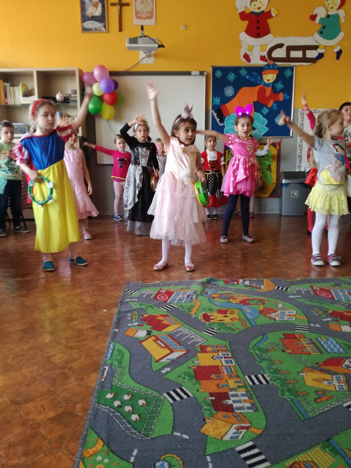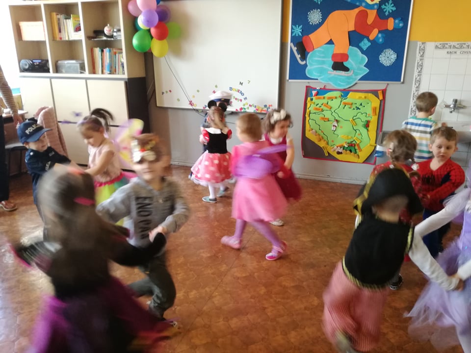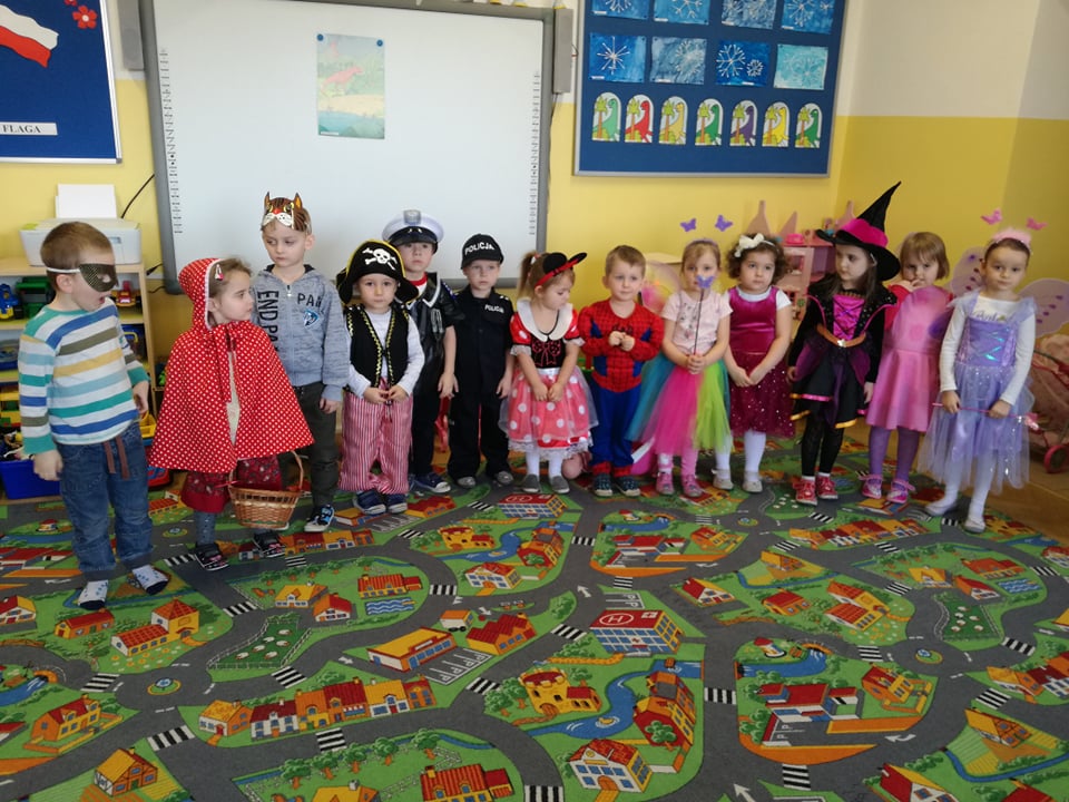 Bal przebierańców dla przedszkolaków to atrakcja bardzo lubiana i wyczekiwana przez dzieci, dostarczająca im wiele przeżyć i radości. Tak też było u nas. W dniu 28 lutego już od samego rana pojawiały się dzieci w pięknych, kolorowych strojach. Przedszkolaki z obu oddziałów, przebrane w barwne, pomysłowe stroje bawiły się świetnie, a skoczna i rytmiczna muzyka zachęcała je do tańców. Bal ten umożliwił dzieciom obu grup lepsze zintegrowanie się i spędzenie czasu w miłej atmosferze.