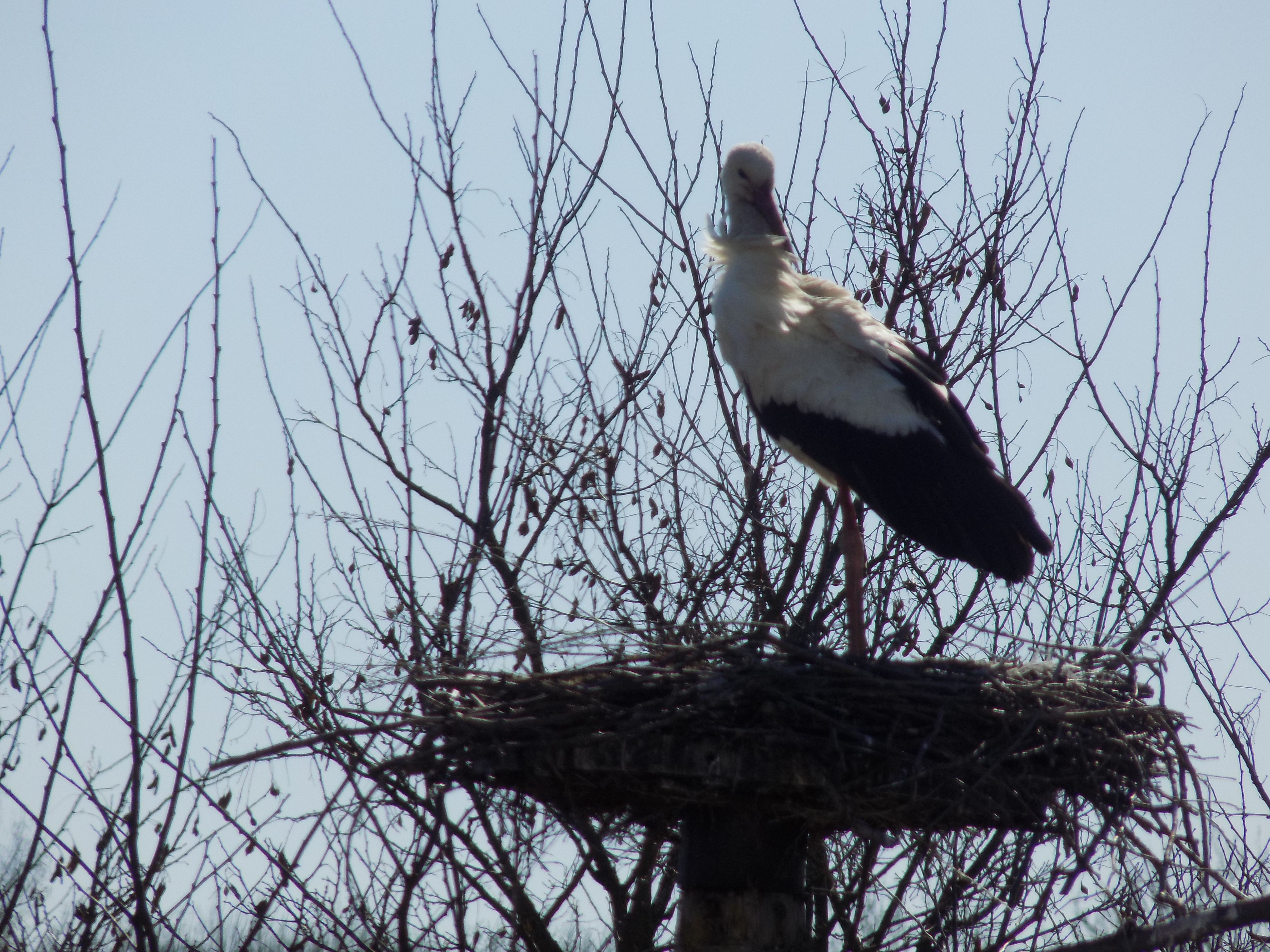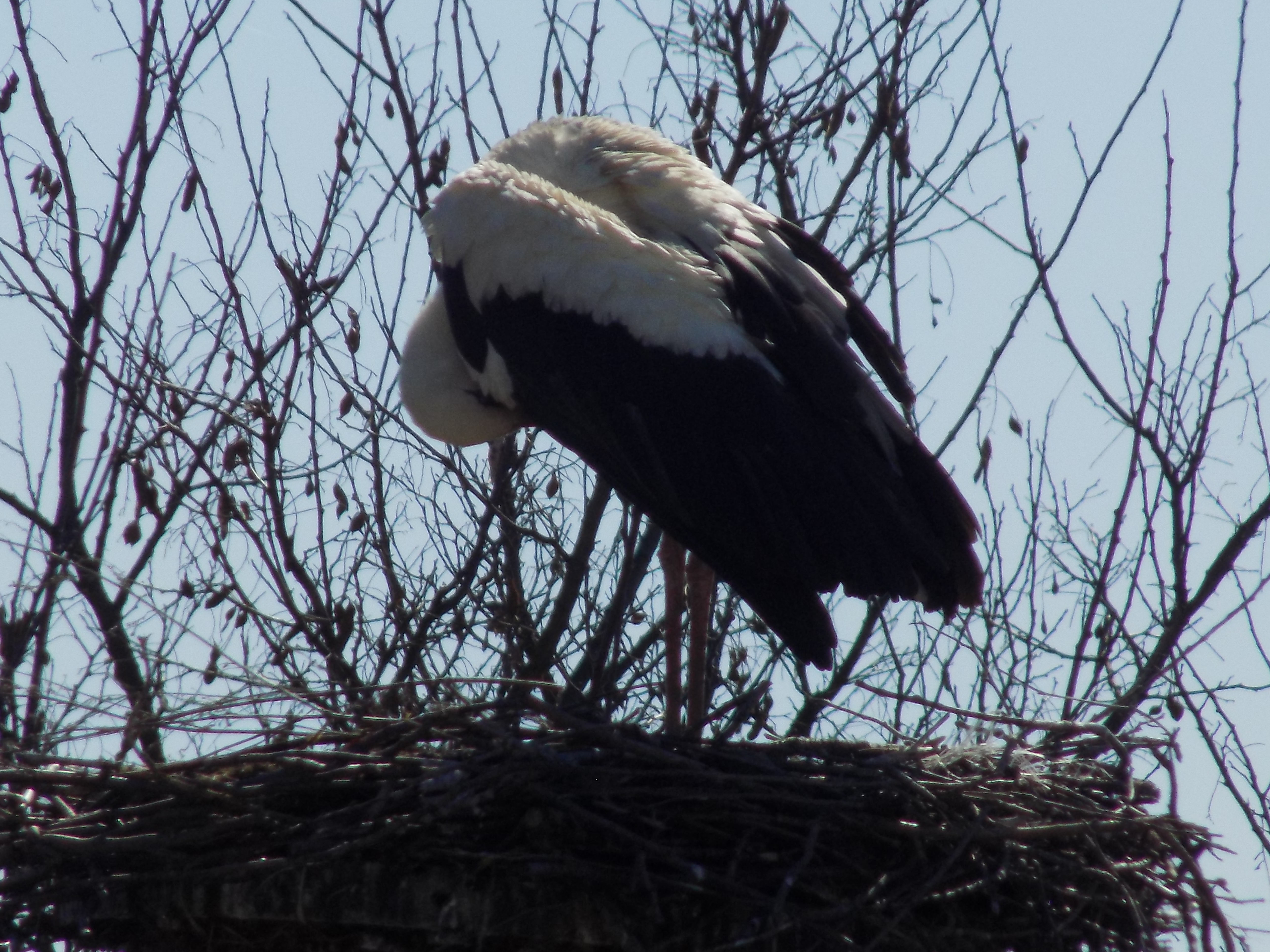 Przylot na lęgowiska i zajęcie gniazda to chyba najbardziej wyczekiwany i komentowany przez ludzi moment w życiu bocianiej pary. Większość sąsiadów bocianich gniazd rokrocznie wyczekuje pojawienia się „swojego boćka”. Wędrujące ptaki lecą bardzo wysoko. Przelatujące bociany obserwowano na wysokości ponad 1000 m, a więc poza zasięgiem naszego wzroku i na ogół nie uświadamiamy sobie, że właśnie nad nami szybują podniebni wędrowcy. Zaskoczenie i radość bywają więc duże, gdy taki wypatrywany podróżnik zjawia się nagle na gnieździe. Nasz długo wyczekiwany bocian przyleciał w sobotę - 30 marca. Oczekiwaliśmy na niego ponad 7 miesięcy. Na razie jest to samiec. Na swoją partnerkę musi poczekać kilka dni.