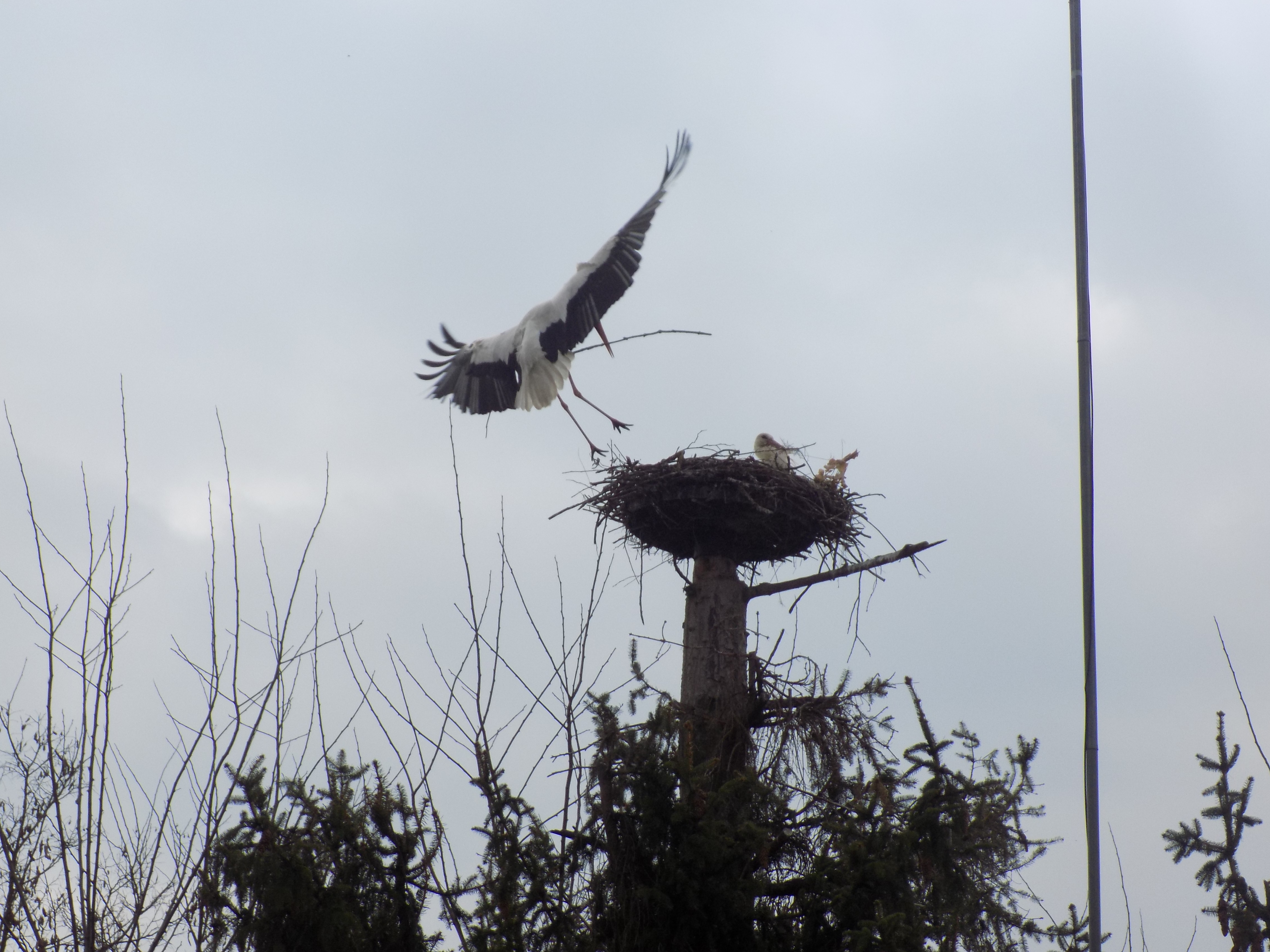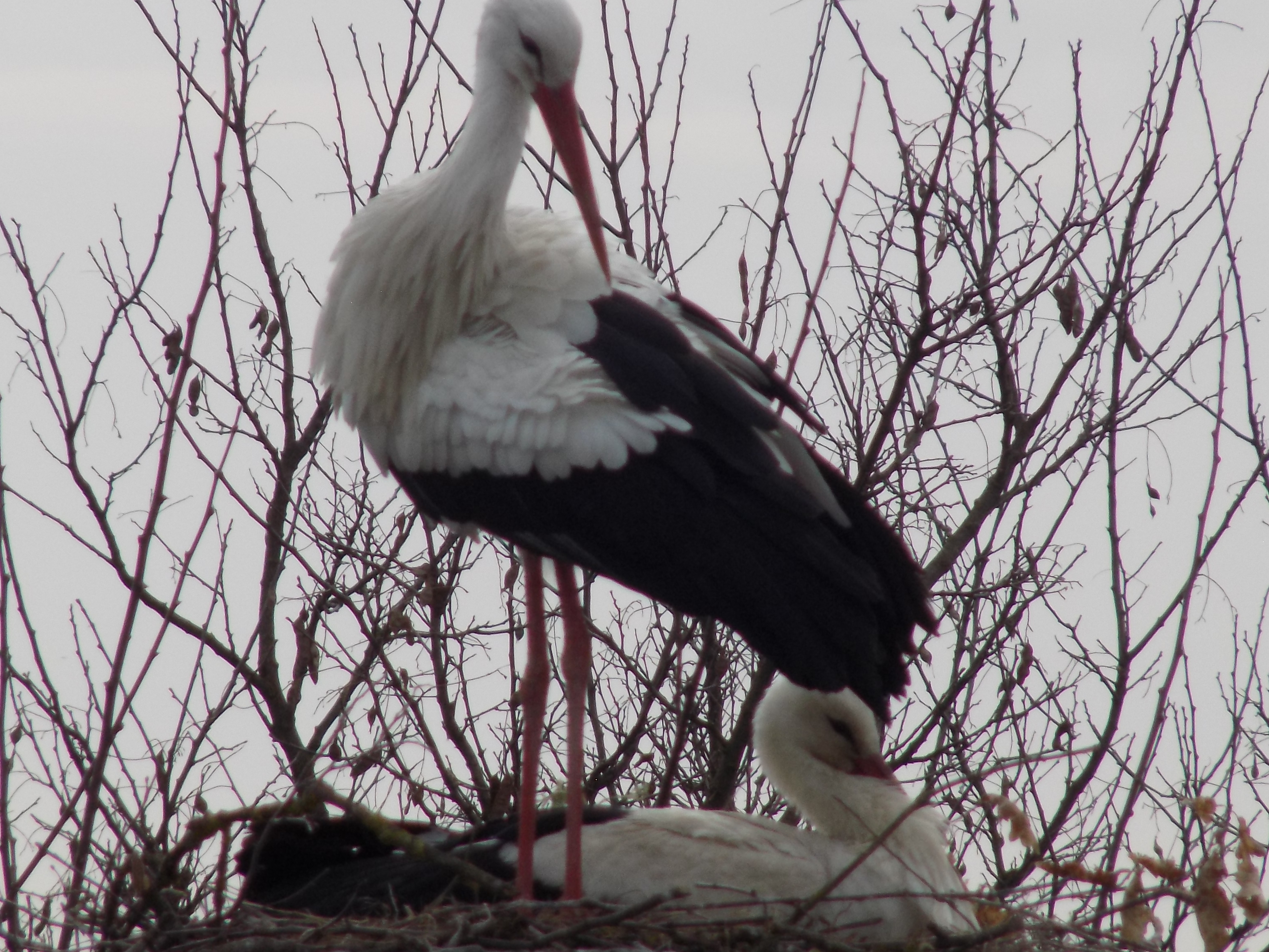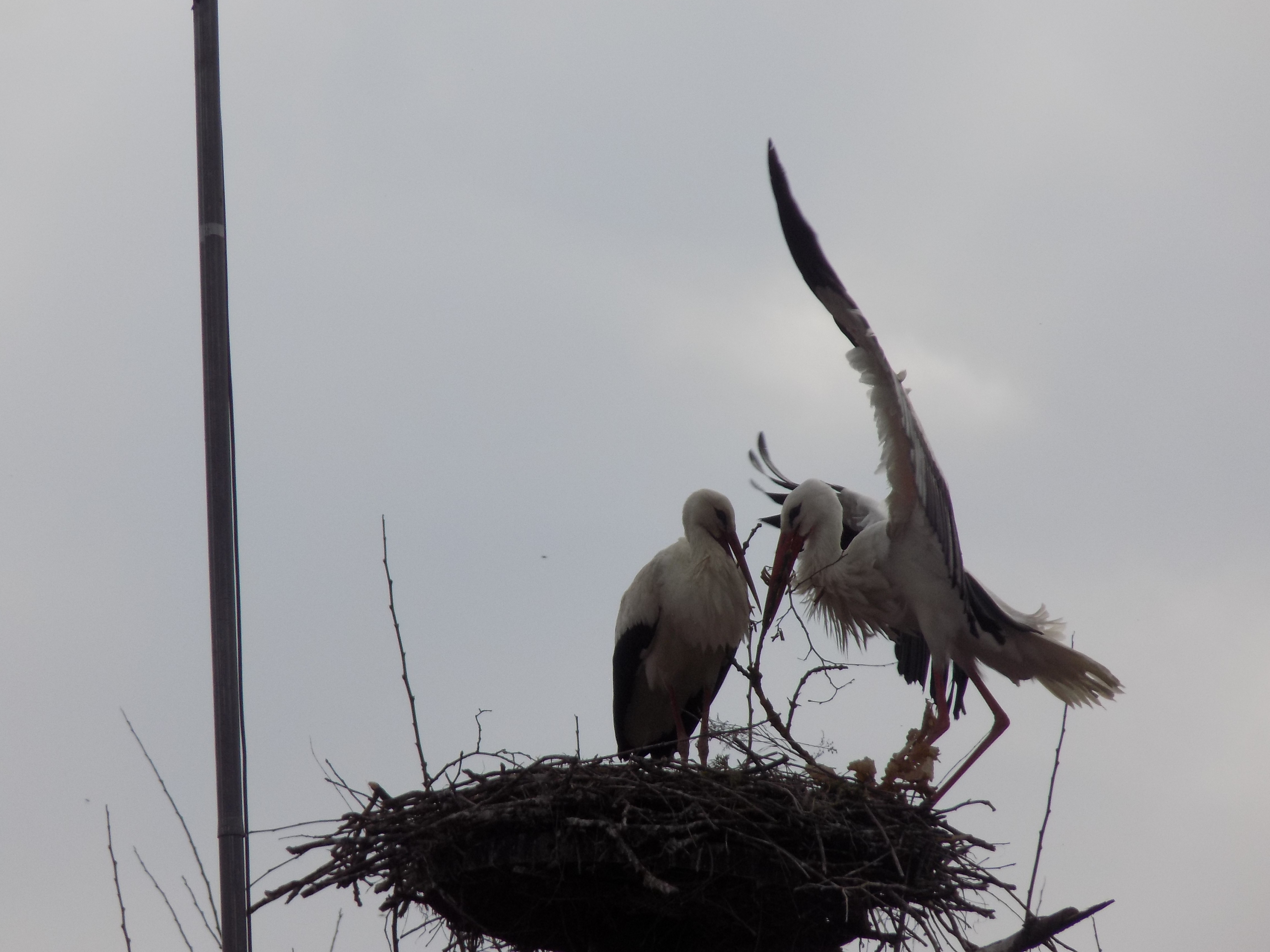 Po 9 dniach oczekiwania i niepewności mieszkańcy naszego bocianiego gniazda są już w komplecie. W poniedziałek w godzinach rannych dotarła wreszcie do swojego gniazda partnerka życiowa Pana Bociana. Już wkrótce po krótkim odpoczynku samicy, oba bociany dokończą doraźną naprawę gniazda i rozpocznie się okres lęgowy. Mamy nadzieję, że przebiegnie on bez problemów. Szkoda tylko, że bocianom nie przysługuje świadczenie 500 +.