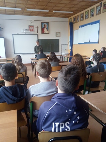 W ubiegłym tygodniu, 24 kwietnia, na spotkanie z uczniami klas VII-VIII przybył Bartłomiej Książek - absolwent naszej szkoły, a obecnie student Wojskowej Akademii Technicznej im. Jarosława Dąbrowskiego w Warszawie. Nasz gość poinformował uczniów, że z początkiem roku szkolnego 2019/2020 w murach WAT rozpocznie działalność Wojskowe Ogólnokształcące Liceum Informatyczne. Liceum to unikalny w skali kraju projekt realizowany pod nadzorem Ministra Obrony Narodowej. Jego celem jest przygotowanie utalentowanej młodzieży do podjęcia studiów wojskowych w WAT na kierunkach informatyka oraz kryptologia i cyberbezpieczeństwo, a w dalszej przyszłości - do zawodowej służby wojskowej w jednostkach Sił Zbrojnych RP odpowiedzialnych za cyberobronę Państwa. Być może któryś z naszych uczniów zdecyduje się kandydować do Wojskowego Ogólnokształcącego Liceum Informatycznego - czas pokaże.