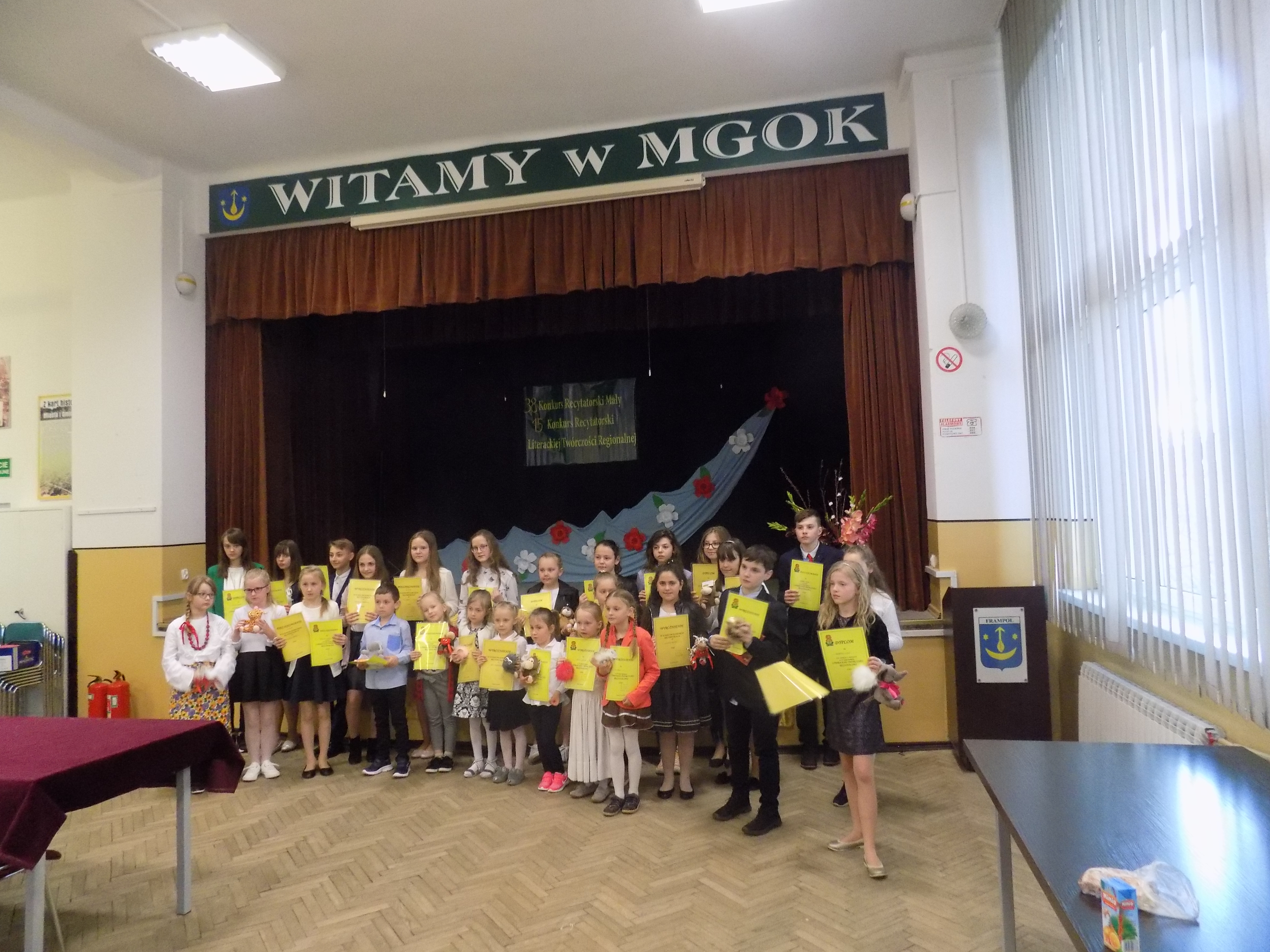 W drugich eliminacjach tj. w XV edycji Konkursu Recytatorskiego Literackiej Twórczości Regionalnej nasza recytatorka Wiktoria Kaziród z klasy VIII zdobyła I nagrodę, Monika Brytan z klasy VII wyróżnienie, podziękowania otrzymały Magdalena Siwek i Wiktoria Badach z klasy I oraz Natalia Kaproń z klasy VI. Pan Dyrektor Kazimierz Oszust wręczył uroczyście wszystkim uczestnikom konkursów dyplomy i podziękowania, szczególne podziękowania kierował do nauczycieli przygotowujących uczniów i do jury za pracę w Komisji. My dziękujemy za smaczny poczęstunek i pamiątkowe nagrody.