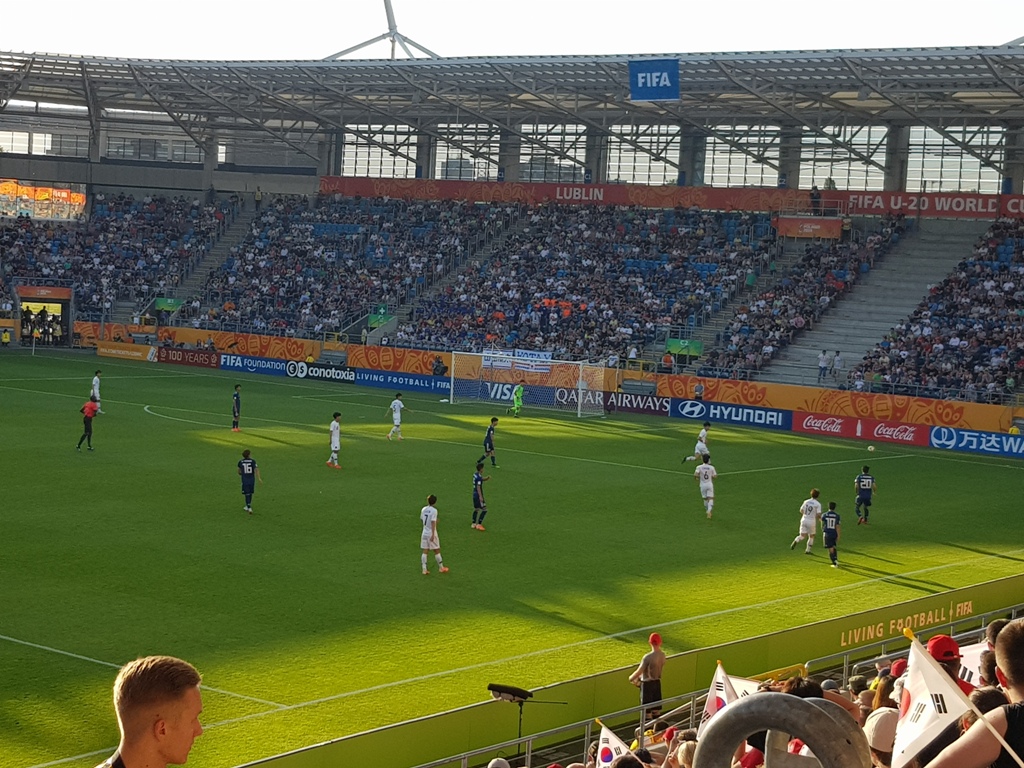 We wtorek 4 czerwca grupka uczniów naszej szkoły wyjechała na mecz piłki nożnej w ramach Mistrzostw Świata U-20 do Lublina. W skwarze słońca obserwowali zmagania dwóch azjatyckich drużyn Japonii i Korei Południowej. Ostatecznie, po wyrównanym spotkaniu, Koreańczycy zeszli z murawy jako zwycięzcy strzelając jedynego gola w 88 minucie. Oglądanie na żywo takich zmagań to wielkie przeżycie, świetna zabawa, ale również nauka kulturalnego kibicowania i przepisów danej dyscypliny sportowej.