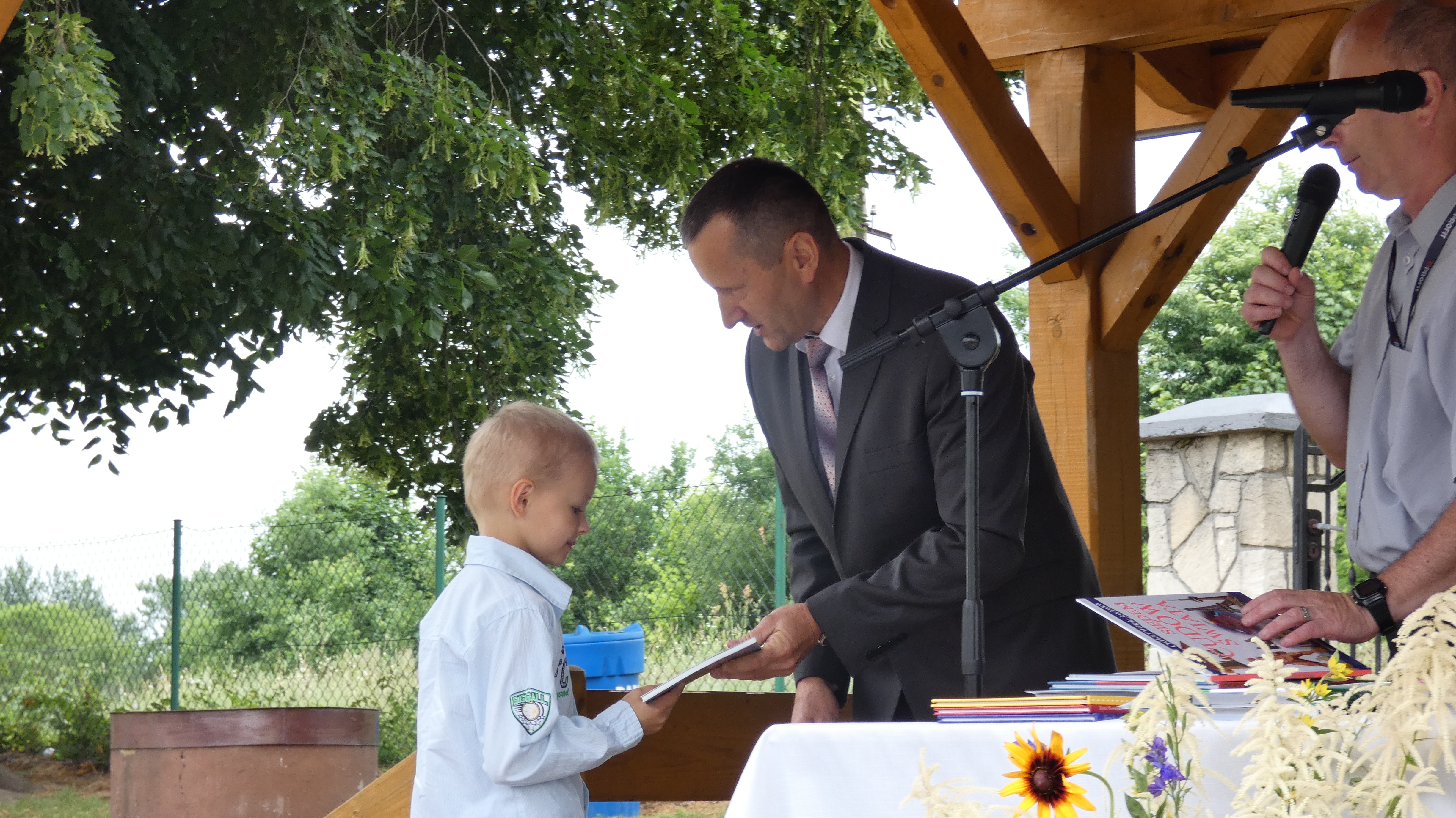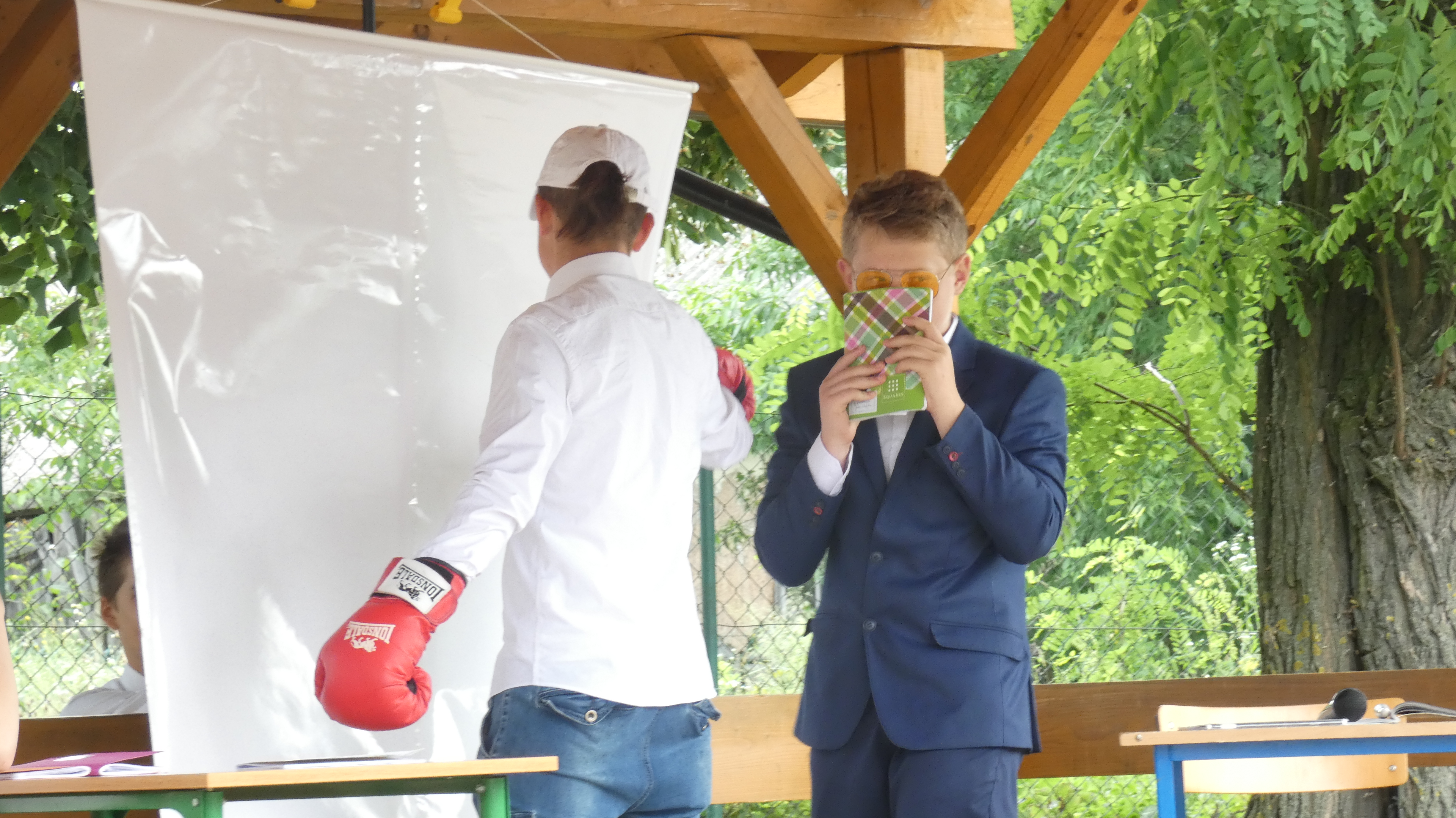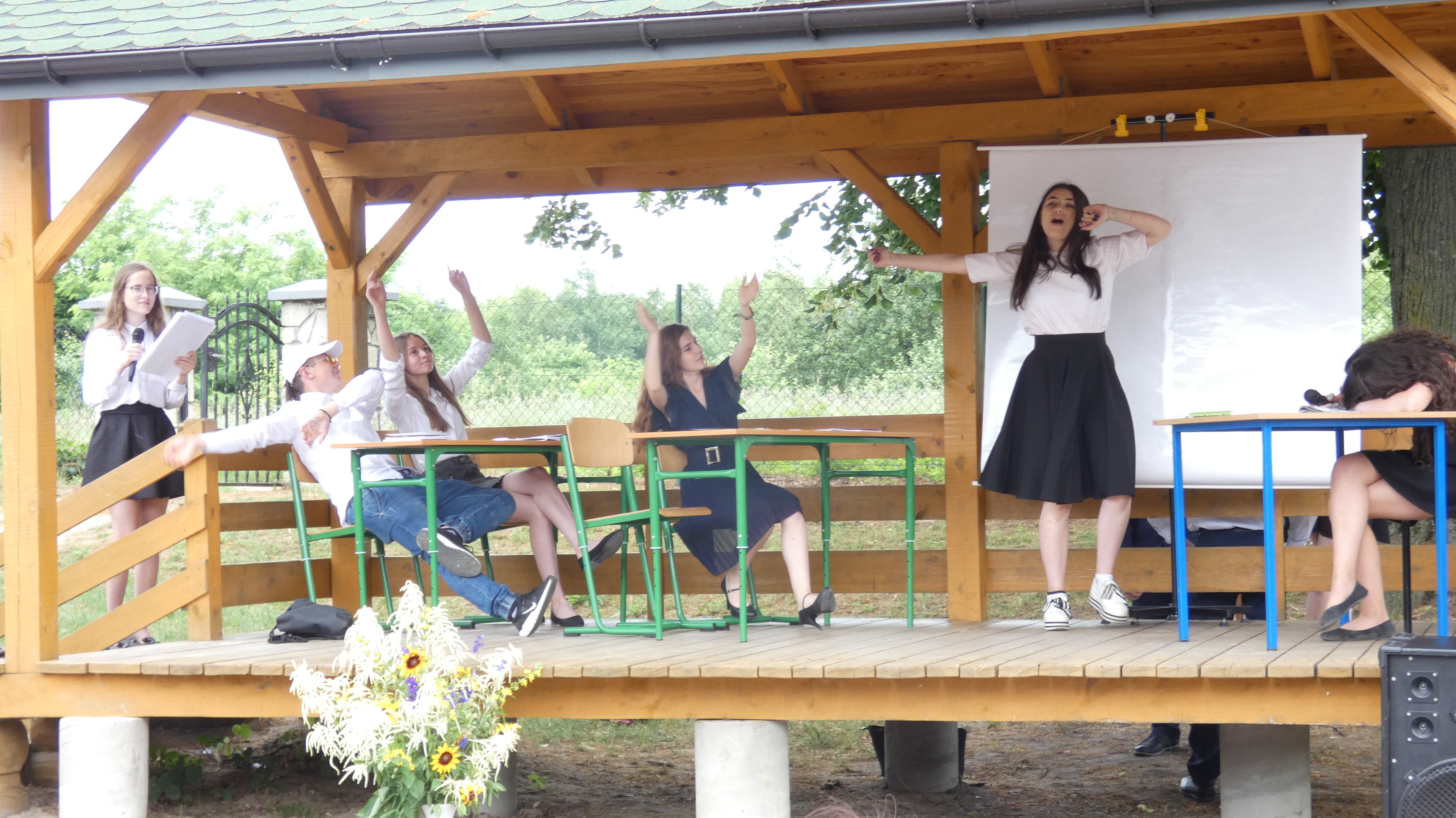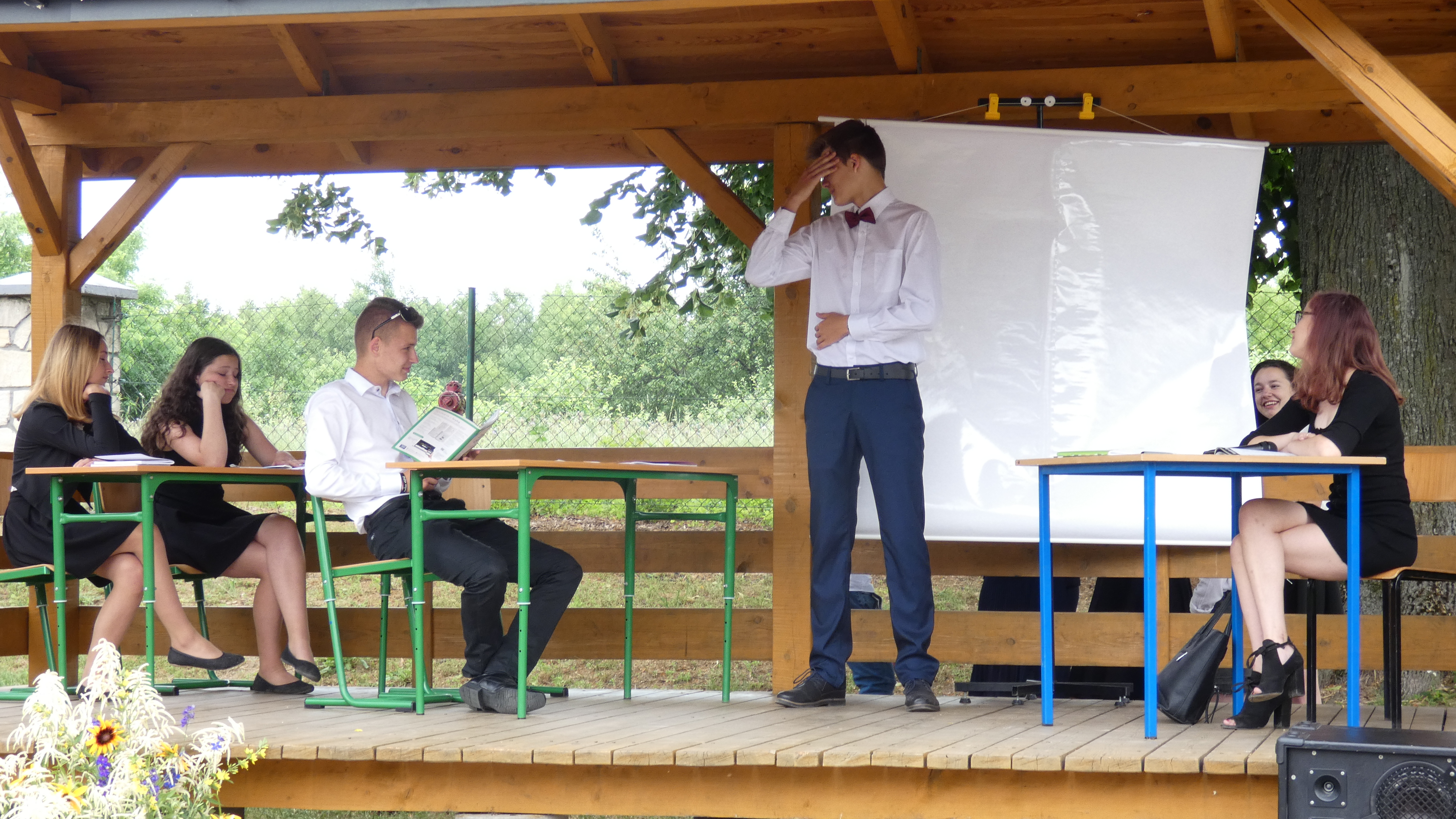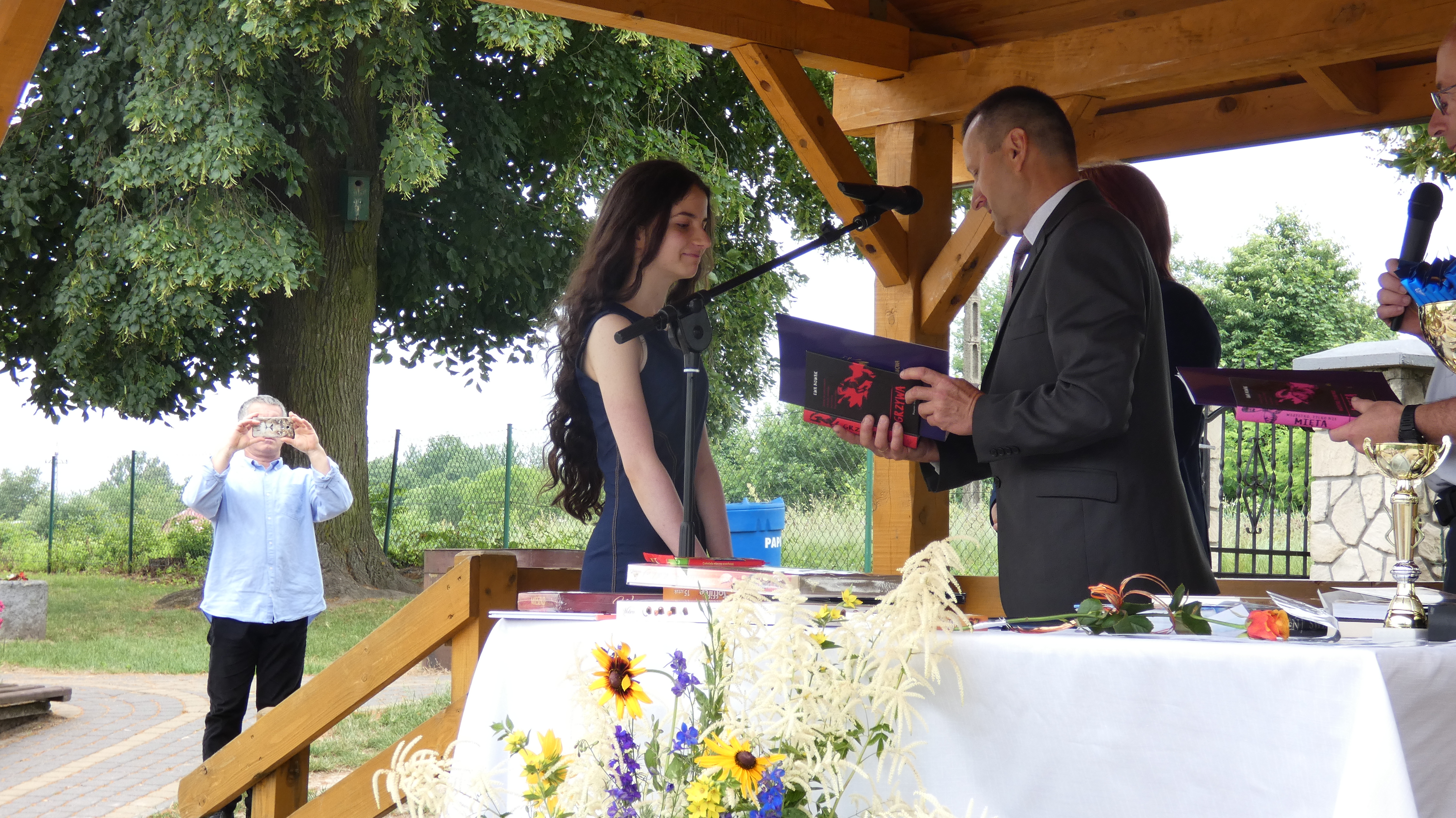 19 czerwca odbyło się w naszej szkole uroczyste zakończenie roku szkolnego. Rozpoczęło się ono wprowadzeniem pocztu sztandarowego, następnie odśpiewany został Mazurek Dąbrowskiego. Kolejnym punktem uroczystości była Msza Święta, którą odprawił Ks. Krzysztof Paluch z Radzięcina. Po jej zakończeniu odbyło się przekazanie sztandaru szkoły przez poczet klasy VIII, pocztowi klasy VII oraz ślubowanie absolwentów naszej szkoły. W dalszej kolejności głos zabrał Dyrektor Szkoły - mgr Stanisław Saj, który powitał zaproszonych gości i rodziców. Władze samorządowe reprezentowała Pani Anna Ruszczak - Sekretarz Gminy Frampol. Następną częścią uroczystości było wręczenie świadectw z wyróżnieniem oraz nagród książkowych i rzeczowych wyróżniającym się uczniom oraz listów gratulacyjnych i podziękowań ich rodzicom. Dokonał tego Dyrektora Szkoły w towarzystwie Pani Sekretarz, która jednocześnie w imieniu władz samorządowych podziękowała wyróżnionym uczniom, życząc udanych wakacji. Słowa podziękowania skierowała również w stronę nauczycieli. Na tym jednak uroczystość się nie zakończyła. Kolejnym jej elementem był okolicznościowy występ artystyczny w wykonaniu ósmoklasistów - "Dzień z życia ucznia w szkole." Pozwolił on nieco humorystycznie spojrzeć na dole i niedole życia ucznia w szkole. Jak stwierdzili wykonawcy, wszelka zbieżność postaci i sytuacji była raczej przypadkowa:) Występ spotkał się z żywiołową, połączoną ze śmiechem, reakcją publiczności i zyskał duże uznanie wśród zebranych. Po jego zakończeniu Dyrektor Szkoły podziękował absolwentom nie tylko za występ, ale też za przygotowywanie i udział w innych uroczystościach, imprezach, konkursach szkolnych i pozaszkolnych. Ostatnim punktem uroczystości było podziękowanie nauczycielom i paniom woźnym złożone przez ósmoklasistów. Zakończył się kolejny etap w życiu szkoły i kolejnego rocznika jej absolwentów, rocznika wyjątkowego. Pożegnaniu towarzyszyła radość, smutek i wzruszenie. W oczach części uczniów, rodziców, nauczycieli pojawiły się kropelki łez.