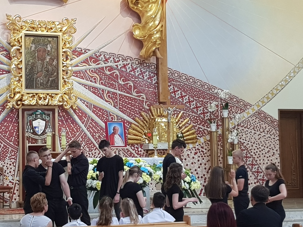 W kościele pw. Matki Bożej Królowej polski odbyły się akademia ku czci św. Jana Pawła II oraz msza św. pod przewodnictwem Jego Ekscelencji Biskupa Mariana Rojka. Na tej uroczystości szkołę reprezentował nasz poczet sztandarowy w składzie Michał Wójcik, Julia Kruszyńska i Julia Czajka.