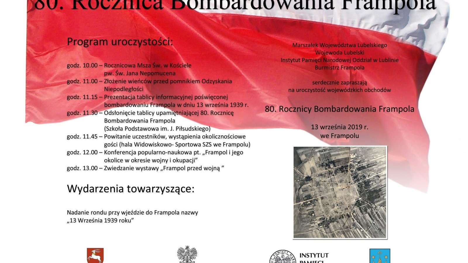 13 września odbędą się gminne uroczystości związane z 80. Rocznicą Bombardowania Frampola. Wezmą w nich udział wszyscy uczniowie klas V-VIII z terenu naszej gminy. Dzieci z klas I-III nie przychodzą w tym dniu do szkoły. Zapraszamy wszystkich chętnych do udziału w tym wydarzeniu. Szczegółowy plan uroczystości znajduje się na stronie gminy Frampol oraz na załączonym plakacie.