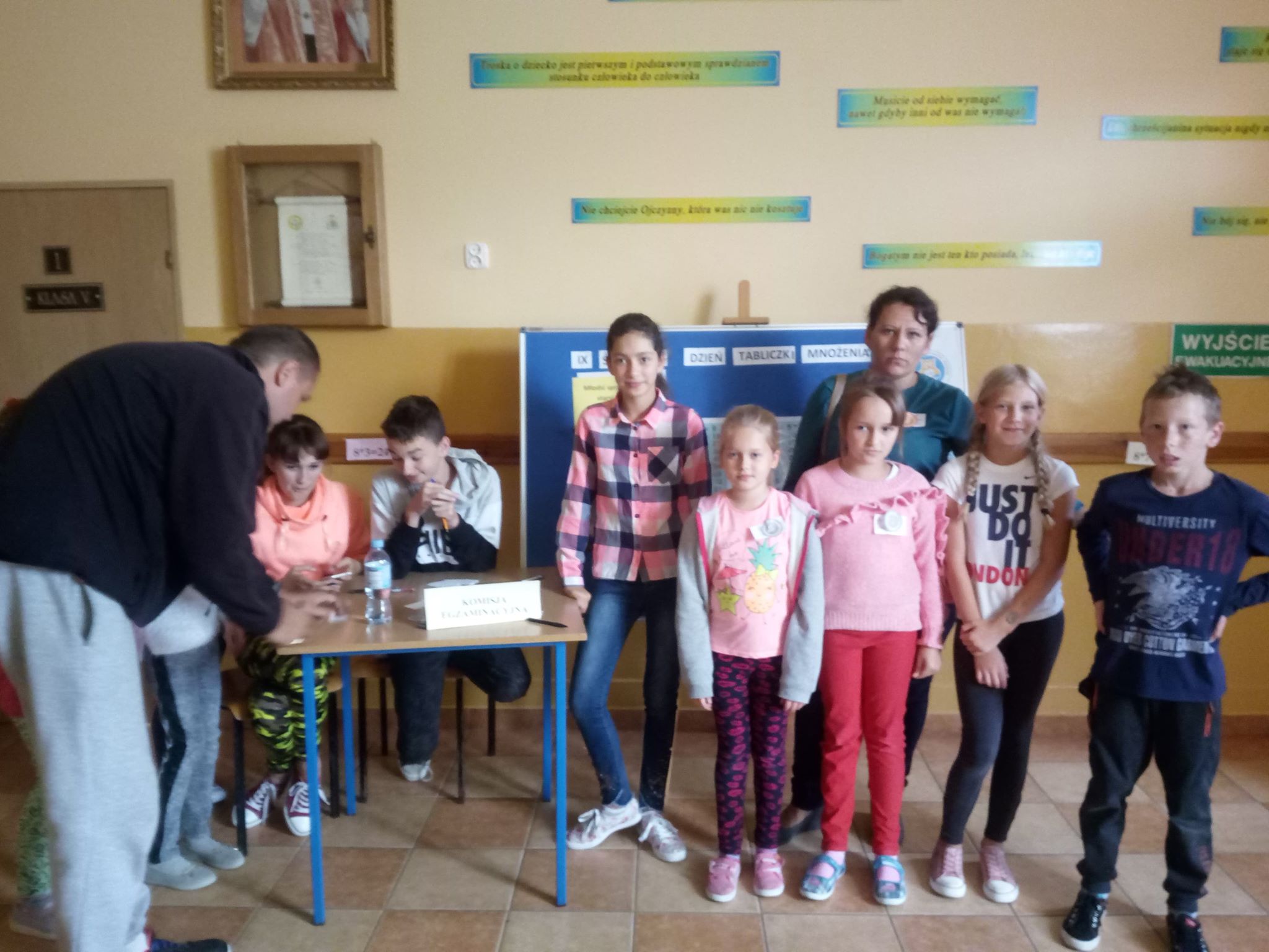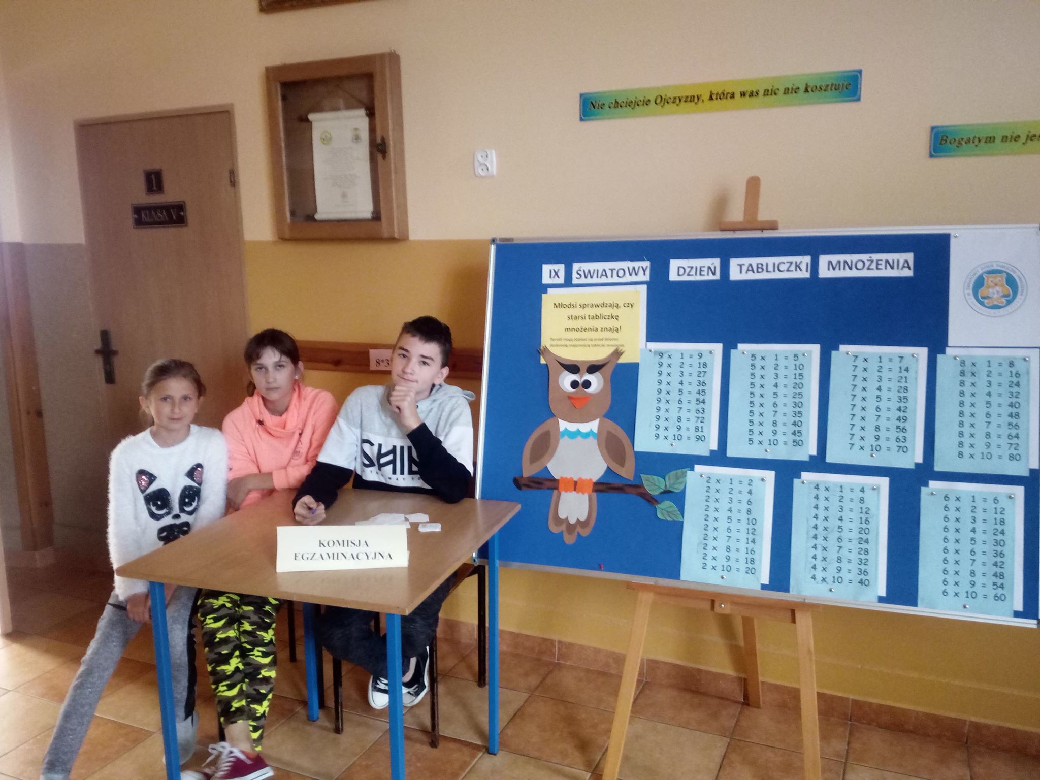W dniu 4 października obchodziliśmy w naszej szkole Światowy Dzień Tabliczki Mnożenia. Jest to międzynarodowa akcja, w którą zaangażowało się wiele szkół. W tym dniu ludzie z całego świata uświadamiają innym, iż znajomość tabliczki mnożenia jest niezbędna w życiu codziennym, udowadniają, że można uczyć się jej z przyjemnością a jej znajomość owocuje. W trakcie przygotowań do tego przedsięwzięcia, spośród wszystkich uczniów została wyłoniona Komisja Egzaminacyjna. Tworzyli ją uczniowie, którzy uzyskali najlepsze wyniki ze znajomości tabliczki mnożenia w poszczególnych klasach. Komisja Egzaminacyjna w szkole sprawdzała znajomość tabliczki mnożenia wśród uczniów, nauczycieli, i chętnych rodziców. Egzamin przeprowadzany był przy stoliku egzaminatorów tuż przy wejściu. Zdający wybierali jedną formę przeprowadzenia egzaminu spośród podanych: - odpytywanie ustne po wylosowaniu pytań, - odpytywanie pisemne po wylosowaniu pytań. Przygotowane zadania były o różnym stopniu trudności. Osobie, która zdała egzamin z tabliczki mnożenia, Egzaminator nadawał tytuł „Eksperta Tabliczki Mnożenia". Dla zainteresowanych przygotowane były "Legitymacje Eksperta Tabliczki Mnożenia". Obchody Światowego Dnia Tabliczki Mnożenia wzbudziły w uczniach wiele pozytywnych emocji, pobudziły chęć zdrowej rywalizacji. Wspólna zabawa zachęciła ich do dalszej nauki, a matematyczne święto na długo zostanie w ich pamięci. Gratulujemy wszystkim „Ekspertom Tabliczki Mnożenia” oraz dziękujemy uczniom, którzy włączyli się w organizację tego dnia!