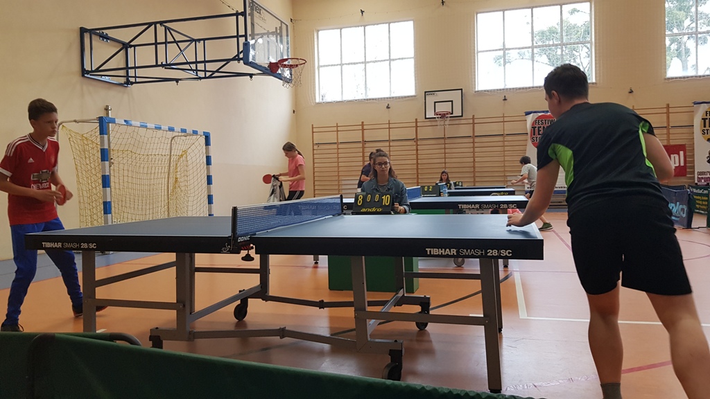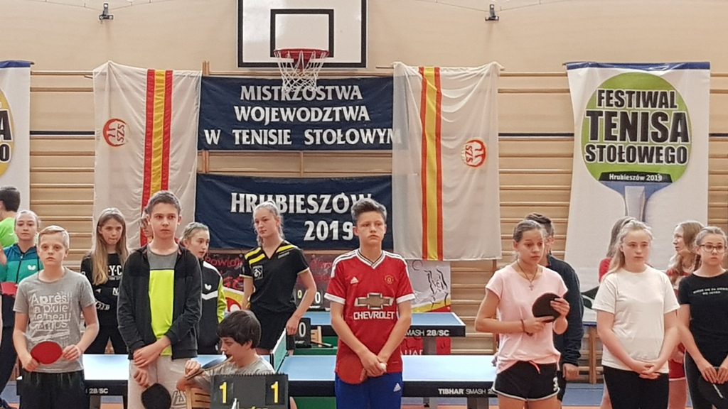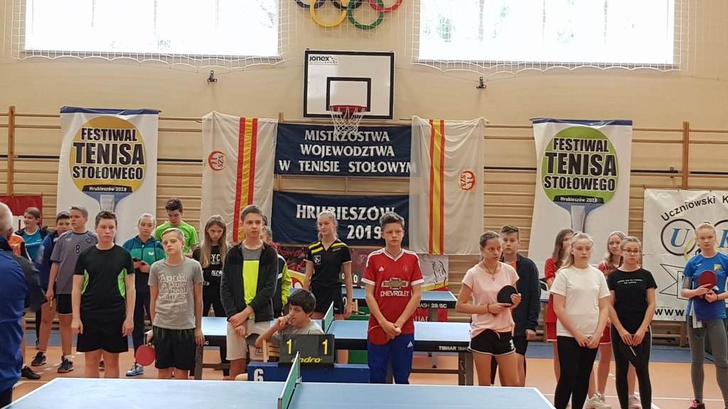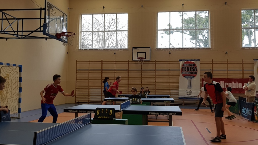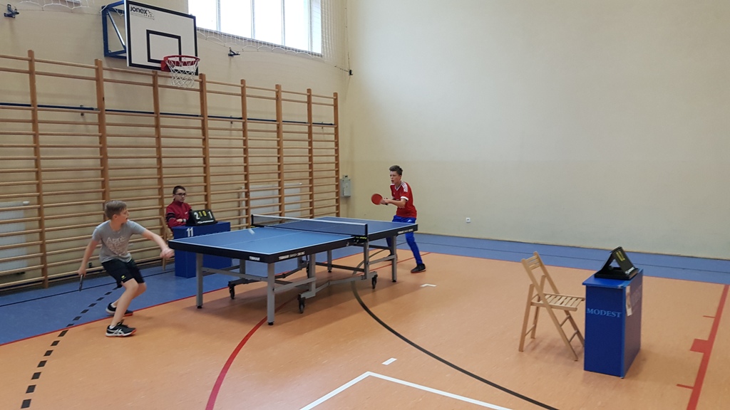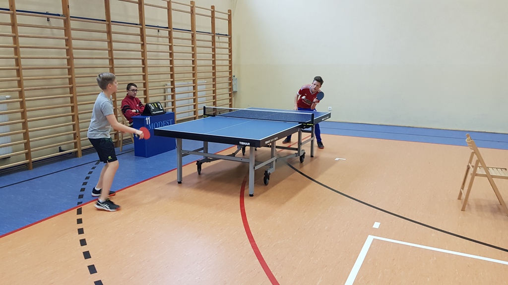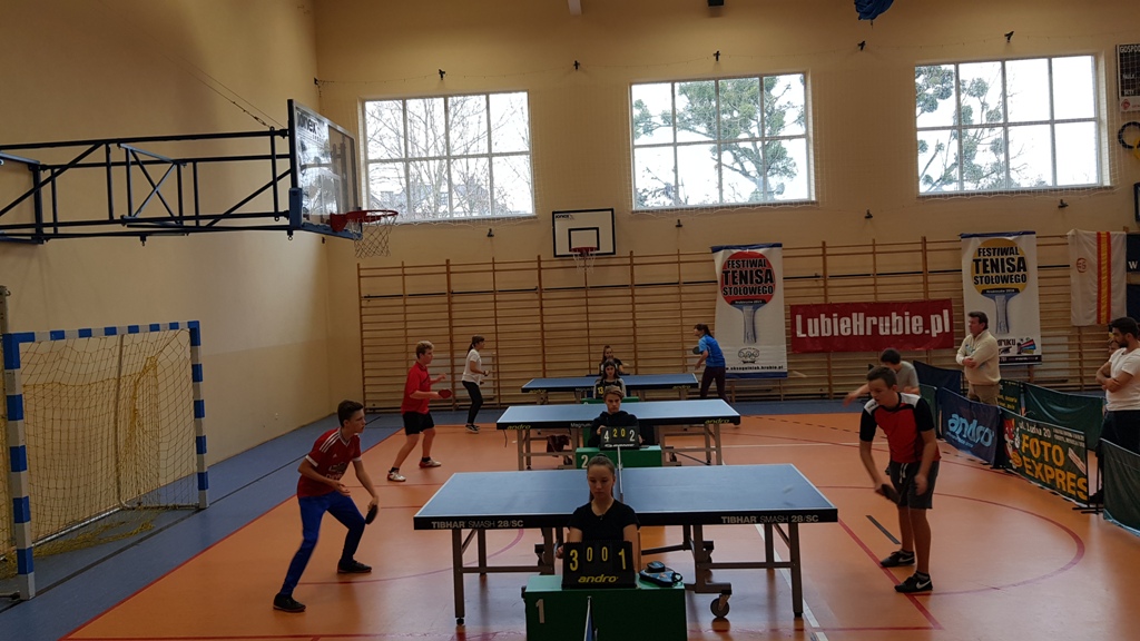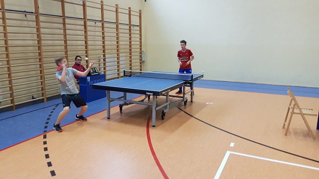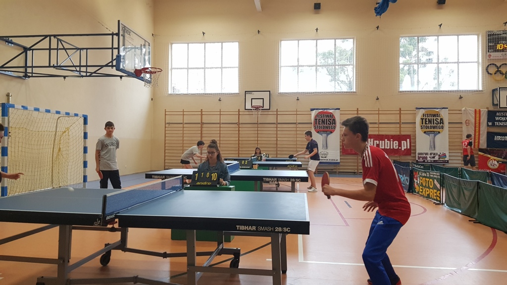 W Hrubieszowie dnia 15 listopada odbyły się zawody wojewódzkie w tenisie stołowym w ramach Igrzysk Młodzieży. W gronie najlepszych zawodników był nasz uczeń Rafał Czajka. Sam awans do takiego grona to sukces, ale Rafał nie zamierzał poddawać się bez walki. Pierwszy mecz, był jak zawsze najważniejszy. Od niego zależy, jak zawodnik wejdzie w turniej. Tremę u naszego ucznia było widać a efektem tego był przegrany pierwszy set. Kiedy stres już troszkę „zszedł” było tylko lepiej. W drugim secie pewna wygrana 11-1 i trzecia partia dopełniła formalności. Pierwszy pojedynek wygrany. W kolejnej rundzie już tak łatwo się nie zapowiadało. Rywal z górnej półki. Było u niego widać ogranie na poziomie klubowym, co skutkowało efektownymi atakami i doskonałą obroną. Pomimo walki przyszła porażka. W trzeciej rundzie przeciwnik został pokonany. Kolejna (druga) wygrana w turnieju i kolejny awans w klasyfikacji końcowej. Czwarty mecz niezwykle wyrównany. Przeciwnik bronił wszystkie ataki Rafała i dobrze kończył swoje kontry. Niestety w pojedynku tym okazał się lepszy a Rafał zakończył ostatecznie turniej wojewódzki na miejscu od 13 do 16. Przypomnijmy, iż w turnieju wzięło udział 24 najlepszych zawodników najlepszych w województwie. Większość z nich gra na co dzień w klubach reprezentując ich barwy na arenie ogólnopolskiej. Niewątpliwie jest to największy sukces sportowy Rafała i miejmy nadzieję, że nie ostatni. Serdecznie gratulujemy.