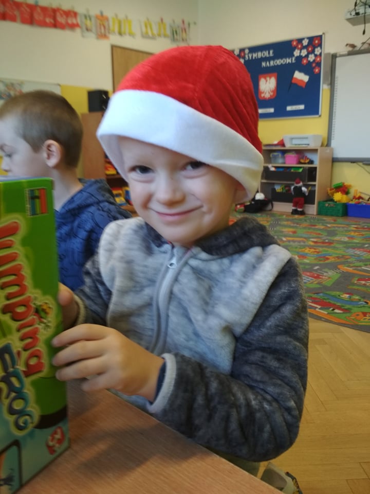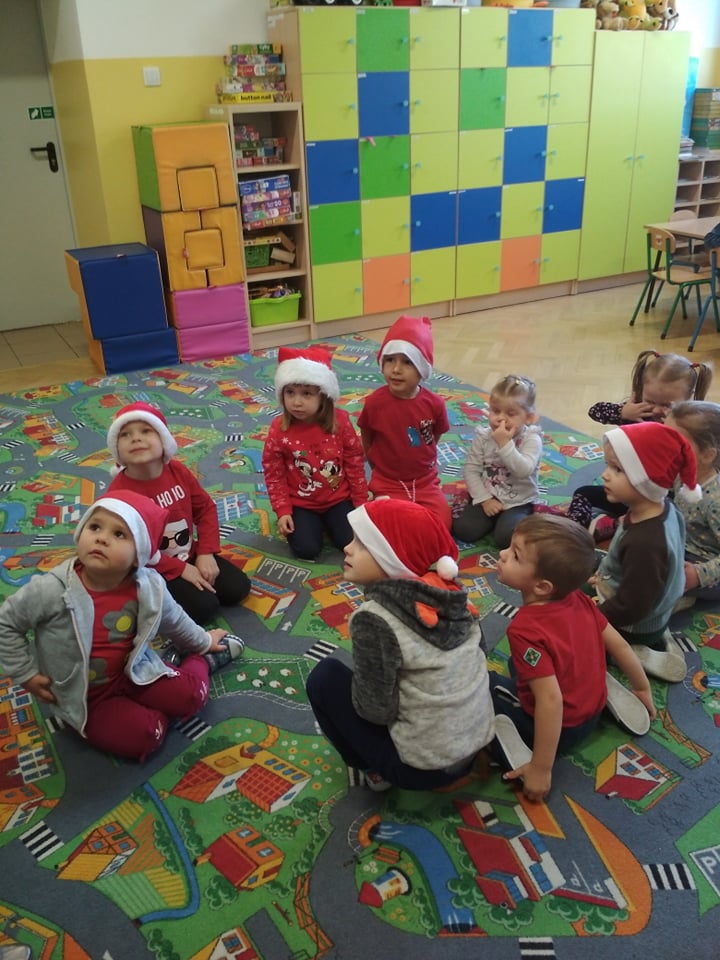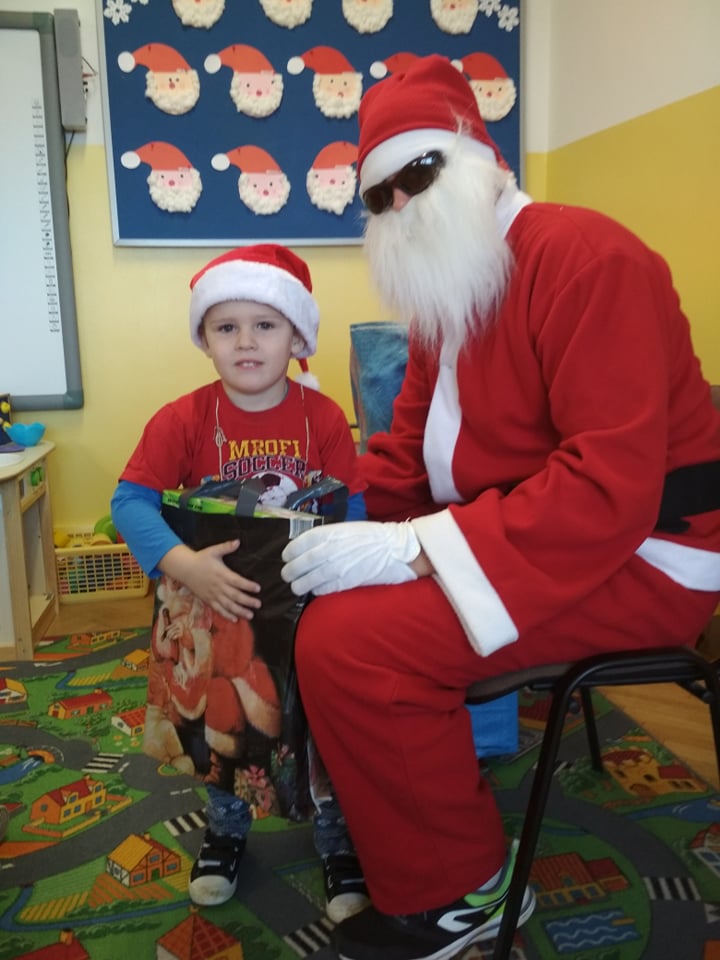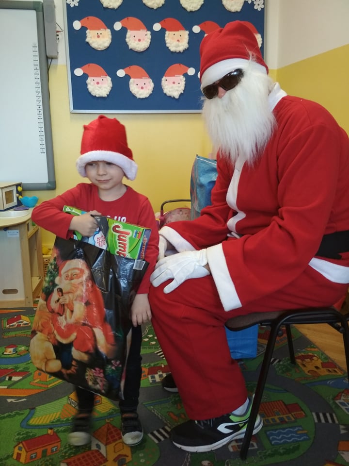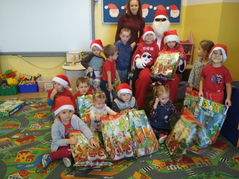 Święty Mikołaj lubi odwiedzać dzieci w każdym miejscu na całym świecie. 6 grudnia z workiem pełnym prezentów przyjechał również do naszego przedszkola. Po śniadaniu dzieci nadsłuchiwały dźwięku dzwoneczków, które słychać było już z daleka. Był to znak, że do przedszkola zbliża się Święty Mikołaj. Przedszkolaki były bardzo szczęśliwe, rozpromienione, a kiedy znalazły się blisko św. Mikołaja – troszkę zawstydzone. Oprócz pełnego prezentów worka św. Mikołaj przywiózł ze sobą dużo uśmiechu. Rozmawiał z dziećmi, zachęcał ich, aby były grzeczne, słuchały rodziców i pań w przedszkolu. Na zakończenie Święty Mikołaj wszystkim przedszkolakom wręczył duże paczki, a w nich – dla każdego coś dobrego! Za prezenty dzieciaki odwdzięczyły się pięknie zaśpiewaną piosenką „To Mikołaj Święty”. Oczekiwana cały rok wizyta św. Mikołaja minęła w bardzo miłej atmosferze i przyniosła naszym kochanym przedszkolakom wiele radości. Ten wyjątkowy dzień uatrakcyjniły również zajęcia o Świętym Mikołaju. Dzieci na początku grzecznie wysłuchały listu od Św. Mikołaja, następnie brały udział w mikołajowych zabawach. Na koniec wykonały piękne prace plastyczne. Do zobaczenia za rok Święty Mikołaju :)
