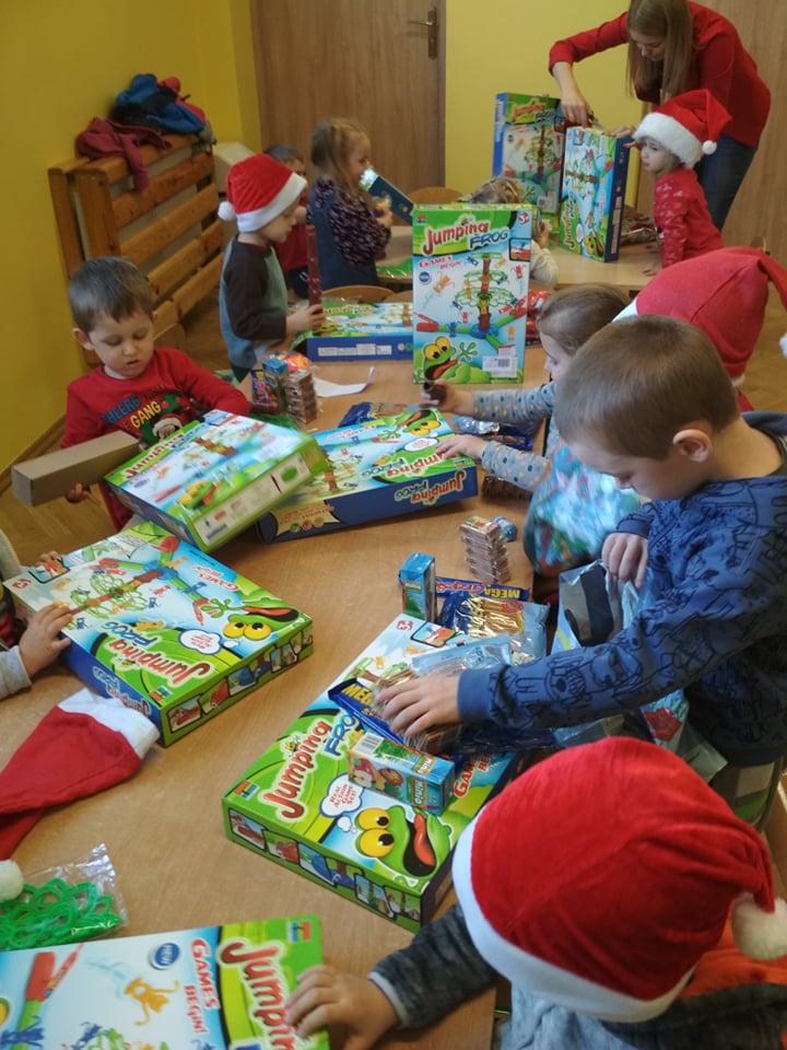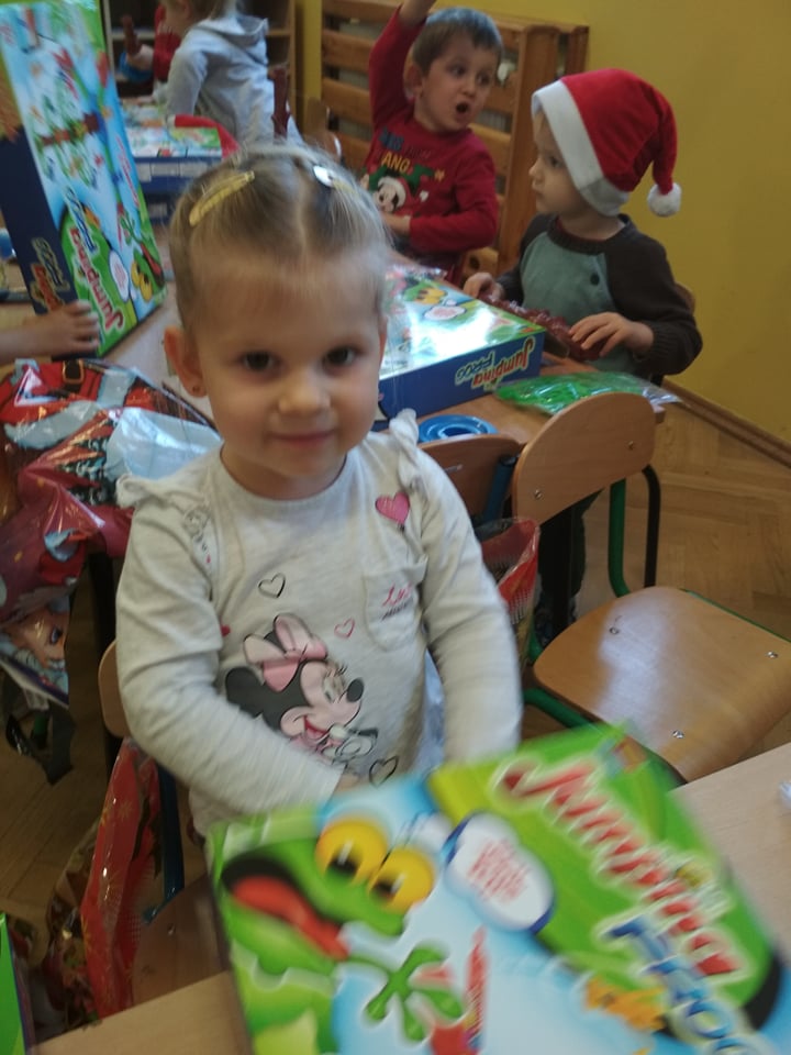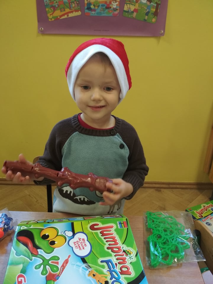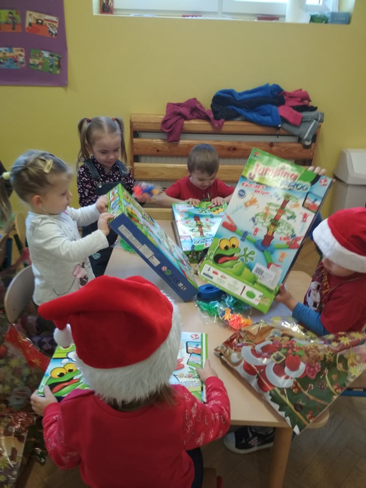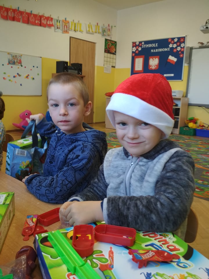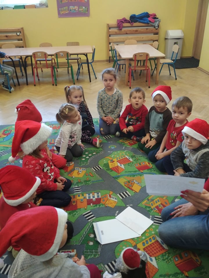 Święty Mikołaj lubi odwiedzać dzieci w każdym miejscu na całym świecie. 6 grudnia z workiem pełnym prezentów przyjechał również do naszego przedszkola. Po śniadaniu dzieci nadsłuchiwały dźwięku dzwoneczków, które słychać było już z daleka. Był to znak, że do przedszkola zbliża się Święty Mikołaj. Przedszkolaki były bardzo szczęśliwe, rozpromienione, a kiedy znalazły się blisko św. Mikołaja – troszkę zawstydzone. Oprócz pełnego prezentów worka św. Mikołaj przywiózł ze sobą dużo uśmiechu. Rozmawiał z dziećmi, zachęcał ich, aby były grzeczne, słuchały rodziców i pań w przedszkolu. Na zakończenie Święty Mikołaj wszystkim przedszkolakom wręczył duże paczki, a w nich – dla każdego coś dobrego! Za prezenty dzieciaki odwdzięczyły się pięknie zaśpiewaną piosenką „To Mikołaj Święty”. Oczekiwana cały rok wizyta św. Mikołaja minęła w bardzo miłej atmosferze i przyniosła naszym kochanym przedszkolakom wiele radości. Ten wyjątkowy dzień uatrakcyjniły również zajęcia o Świętym Mikołaju. Dzieci na początku grzecznie wysłuchały listu od Św. Mikołaja, następnie brały udział w mikołajowych zabawach. Na koniec wykonały piękne prace plastyczne. Do zobaczenia za rok Święty Mikołaju :)