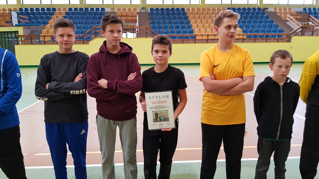 W Zespole Szkół Budowlanych i Ogólnokształcących 10 grudnia toczyła się rywalizacja w piłce nożnej halowej o puchar Dyrektora ZSBiO w Biłgoraju. W zawodach zmagali się uczniowie szkół podstawowych z terenu powiatu biłgorajskiego. Była tam również nasza reprezentacja w składzie: Rafał Czajka, Paweł Rapa, Kacper Rapa, Paweł Kwiatkowski i Mateusz Spólnik. W wyniku losowania drużyny zostały podzielone na grupy. Naszej drużynie przypadło grać z Księżpolem i Łukową. Pierwszy pojedynek z Łukową wygrywamy 3:0, a drugi remisujemy 0:0 i zajmujemy pierwsze miejsce w grupie awansując do półfinału. Niestety z powodu braku rezerwowych zawodników gramy cały turniej jednym składem, co przekłada się na dalsze wyniki. Już w półfinale było widać brak sił i zmęczenie. Niedokładne zagrania i brak powrotu do obrony zadecydowały o porażce i grze o 3 miejsce. W pojedynku o najniższy stopień podium było już tylko gorzej. Pomimo wielkiego zmęczenia, naszym chłopakom nie można odmówić zaangażowania i woli walki. Każdy na boisku dał z siebie wszystko a w bramce świetne zawody rozegrał Mateusz, który swoimi interwencjami pokazał, że zna się na tym fachu. Ostatecznie przegrywamy i zajmujemy 4 miejsce. Jednak naszej drużynie należą się wielkie słowa uznania za ten turniej. Rozegrali cztery mecze 2x10 min w jednym składzie a każdy z opiekunów innych drużyn był dla nich pełen podziwu.