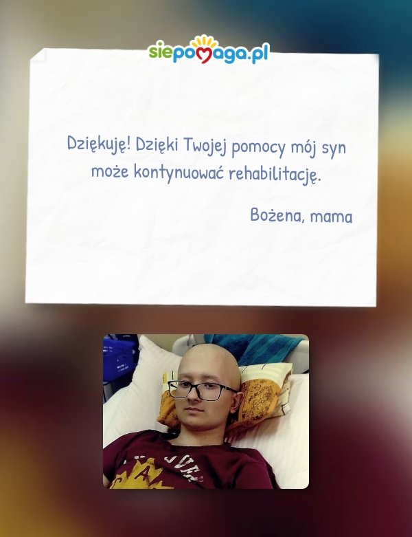 W minionym miesiącu społeczność naszej szkoły włączyła się w zbiórkę pieniędzy dla Piotra Kozaka. Piotrek jest uczniem ZSBiO w Biłgoraju i od ponad roku zmaga się ze złośliwym nowotworem - chłoniakiem B-komórkowym. Choroba zaatakowała centralny układ nerwowy, przykuwając Piotrka na długie miesiące do łóżka, jednak poprawa stanu zdrowia umożliwiła rekonwalescencję. Widoczne są pierwsze efekty poprawy, ponieważ chłopiec porusza się na wózku inwalidzkim. Rodzina Piotrka została poddana ciężkiej próbie, ale się nie poddają, choć walka z tym przeciwnikiem jest nierówna. Każda złotówka zwiększa szansę na powrót chłopca do zdrowia i umożliwia mu skorzystanie ze specjalistycznej rehabilitacji. Udało nam się zebrać 465 złotych 70 groszy. Pieniądze trafiły już na konto Fundacji Siepomaga. Jest nam niezmiernie miło, że chociaż w taki symboliczny sposób mogliśmy włączyć się w pomoc Piotrkowi.