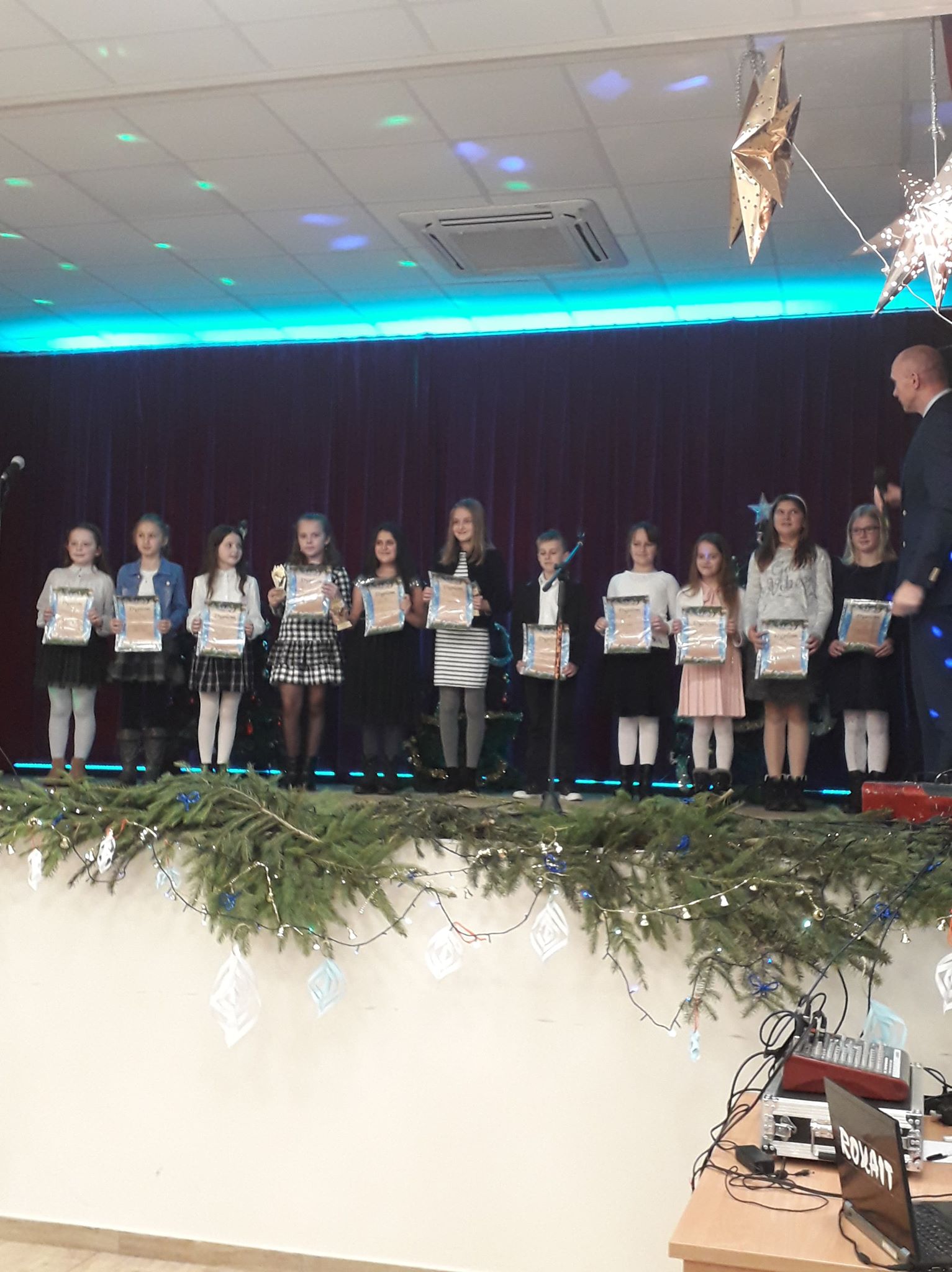 W konkursie wystąpiły ponadto: Leśniewska Lena - kl.I, Kamińska - Kamila - kl.III i Spólnik Natalia - kl.VI, które otrzymały dyplomy. Wszystkim solistkom składamy serdeczne gratulacje.