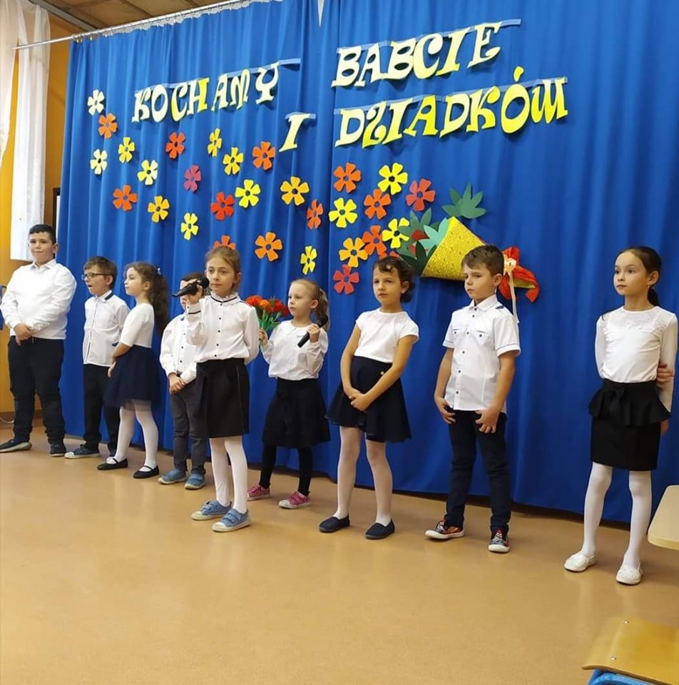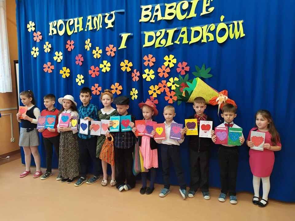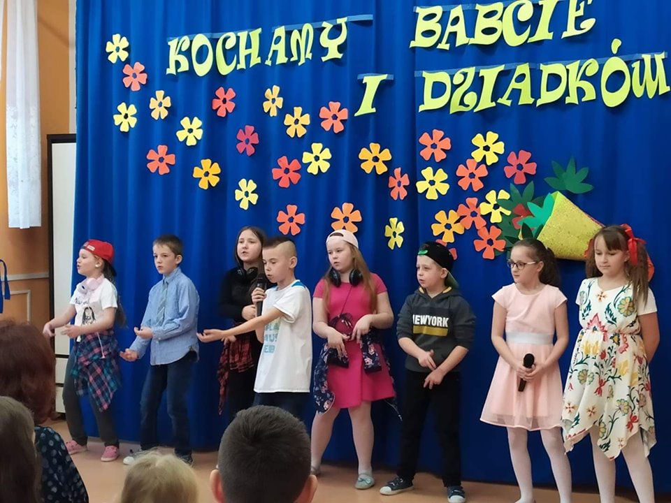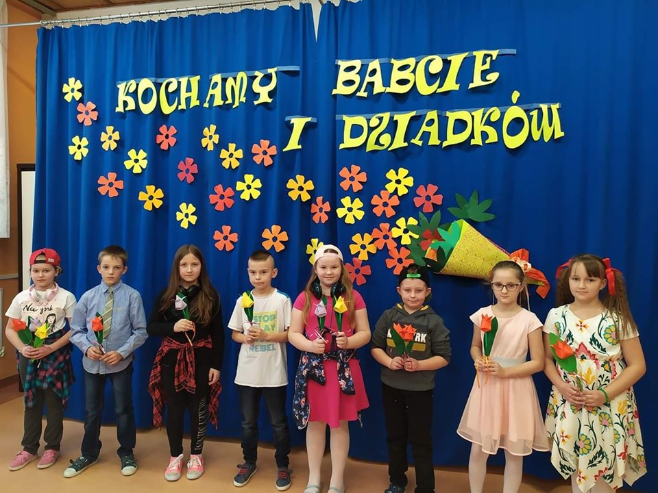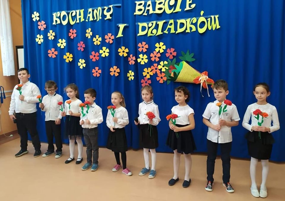 Dzień Babci i Dzień Dziadka to wyjątkowe daty w kalendarzu, jedne z najsympatyczniejszych i najmilszych dni w roku. Uczniowie z klas I - III upamiętnili to wydarzenie 6 lutego, goszcząc bardzo wielu najmilszych gości. Sala wypełniła się po brzegi. Dzieci z najmłodszych klas przygotowały wspaniałe występy artystyczne przepełnione radością, śpiewem, tańcem i muzyką. Nasi wychowankowie chcieli wyrazić swoją miłość, wdzięczność i szacunek kochanym babciom i dziadkom. To przecież od nich dzieci otrzymują wiele ciepła i dobra, za które warto i trzeba dziękować. Uroczystość wypadła pięknie, uczniowie otrzymali gromkie brawa, a babcie i dziadkowie byli dumni ze swych wnuków. Na zakończenie uroczystości wnuczęta zaprosiły swoich Dziadków na słodki poczęstunek. Był to wspaniały dzień, pełen wzruszeń, serdeczności, radości, uśmiechu i wspólnej zabawy. Kochanym Babciom i drogim Dziadkom jeszcze raz życzymy samych pięknych chwil w życiu i tego, aby zawsze byli dumni ze swych wnuków.
