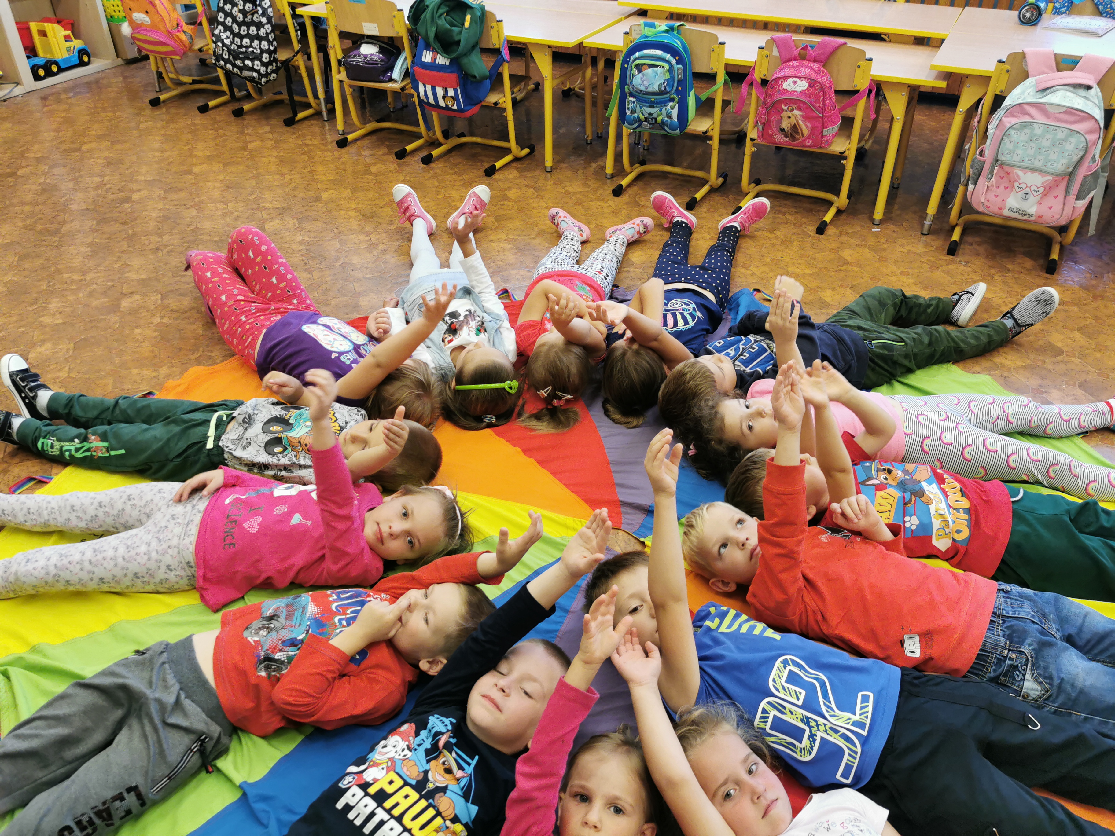 Dnia 21 września w grupie 5-6–latków obchodziliśmy Dzień Przedszkolaka. Był to wyjątkowy dzień. Na przedszkolaków czekało wiele niespodzianek. Pan Dyrektor wręczył dzieciom pamiątkowe dyplomy i baloniki. Było mnóstwo atrakcji. Były zabawy z chustą, zabawy ruchowe oraz tańce. Dzieci były uśmiechnięte i radosne. Idąc za słowami Janusza Korczaka „Kiedy śmieje się dziecko, śmieje się cały świat” życzymy wszystkim dzieciom, aby uśmiech gościł na ich twarzach każdego dnia, nie tylko od święta.